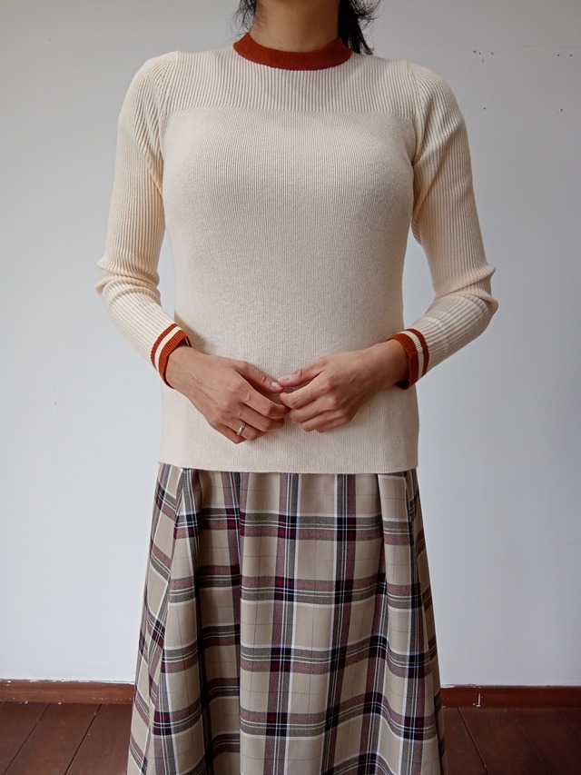 プレーティングリブ生地クルーネックロンT ベージュ ayane