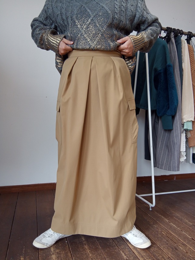 サイズ38 表地 ウール65% ポリエステル35% 裏地 ポリエステル100% ウエスト(最大)70(98) ヒップ96 総丈91 イタリア製のスライバー生地を使用。ウール混の暖かくて軽い素材です。柄も迷彩で、カジュアルなのに高級感のある誰とも被らない個性的な印象のスカートです。数量限定ですので無くなり次第終了です。