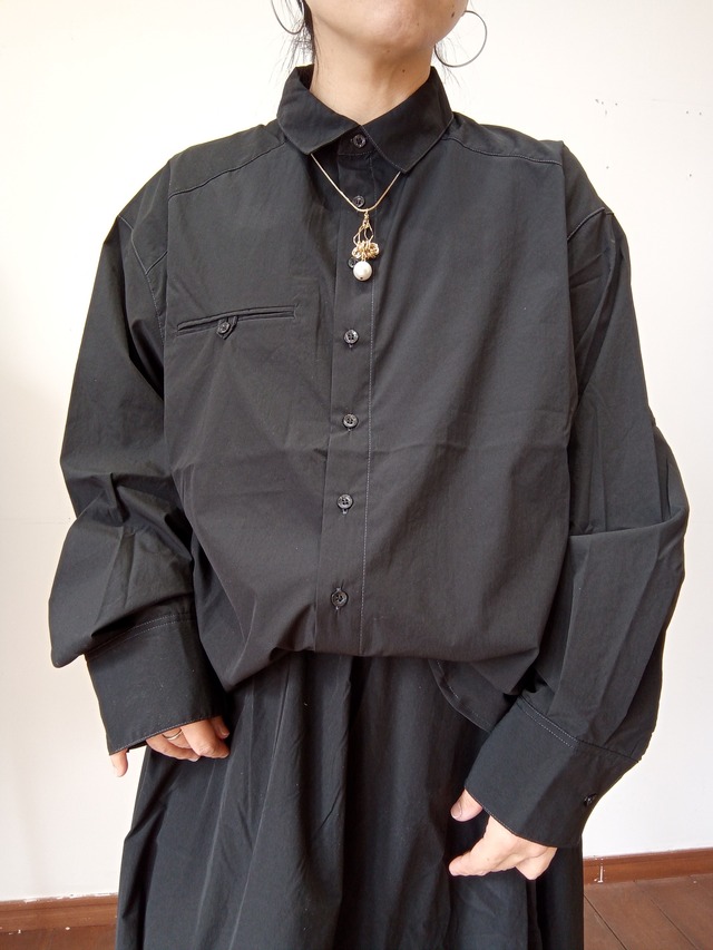 フリーサイズ ソフトな肌触りと、軽くしなやかなストレッチ性が心地いい、ジョーゼット素材。大き目の胸ポケットがアクセントに。程よいバルーン袖もお洒落です。 <生地感> マットな表面感が上品な印象を与えるソフトストレッチジョーゼット生地。 <洗濯方法> 手洗い可 ※詳しくは洗濯表示に従ってください。 <生産国> 日本 ■サイズ 前総丈平置き:62 後総丈平置き:67 身幅平置き:55 (モデル身長:154㎝) ■素材 ポリエステル:100% ■裏地 なし ■透け感 あり