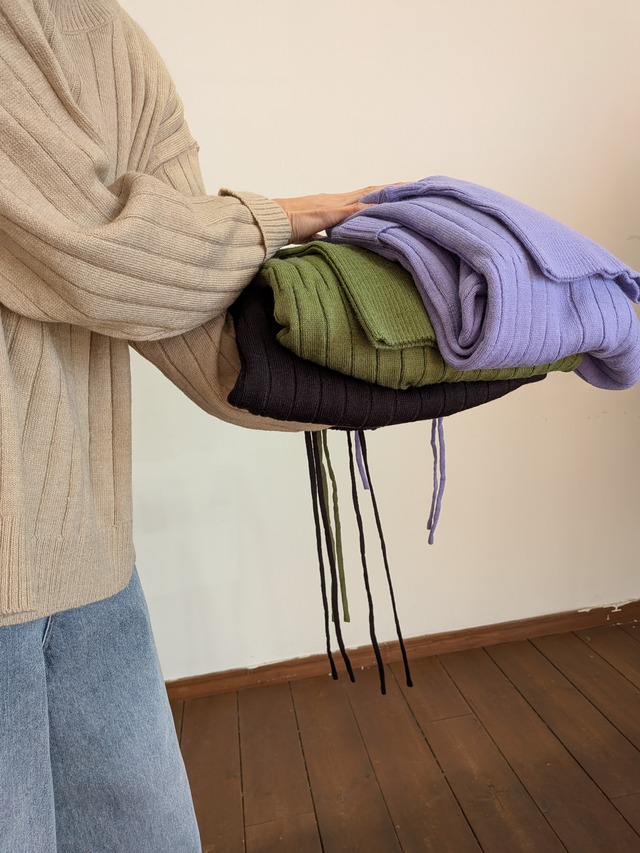 プレーティングリブ生地ハイネックロンT オフ ayane