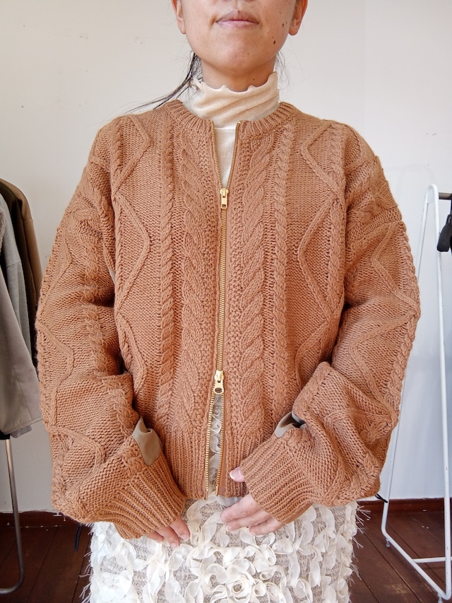 ケーブル編み箔プリントジレカーディガン エクリュ trois