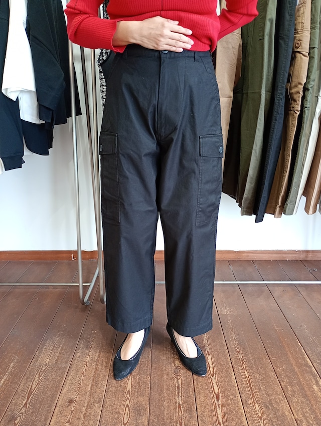 フリーサイズ 綿97% ポリウレタン3% ウエスト35 股下64 総丈96 ■デザイン ゆったりとしたシルエットのカーゴパンツ。 ポケットが多く、デザイン性も抜群です。 ワークな印象を残しつつ、カジュアルに仕上げた1枚です。 ■素材 バックサテンの微起毛感のある肌触りを生かし、よりよい履き心地を実現しました。 ストレッチも兼ね備えている素材なのでおすすめです。 ■スタイリング シャツやニットやカットソー、どんな組み合わせでも相性がよくスタイリングの幅が広がります。