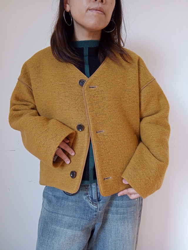 フリーサイズ ポリエステル100% 裏地 ポリエステル100% 前総丈57 後総丈62 身幅86 裄丈83.5 裾幅73 袖口幅10 モデル身長154 ポンチョとMA-1を合体させた様な裏キルティングのショートブルゾン。 羽織るだけで存在感を増す1枚です。 カジュアルに軽く羽織ってください。
