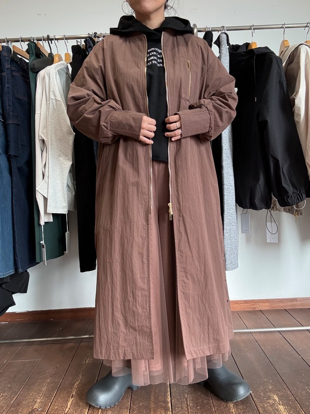 サイズ38 レーヨン63% ポリエステル24% ナイロン10% ポリウレタン3% フード レーヨン72% ポリエステル28% 着丈54 バスト108 裄丈78