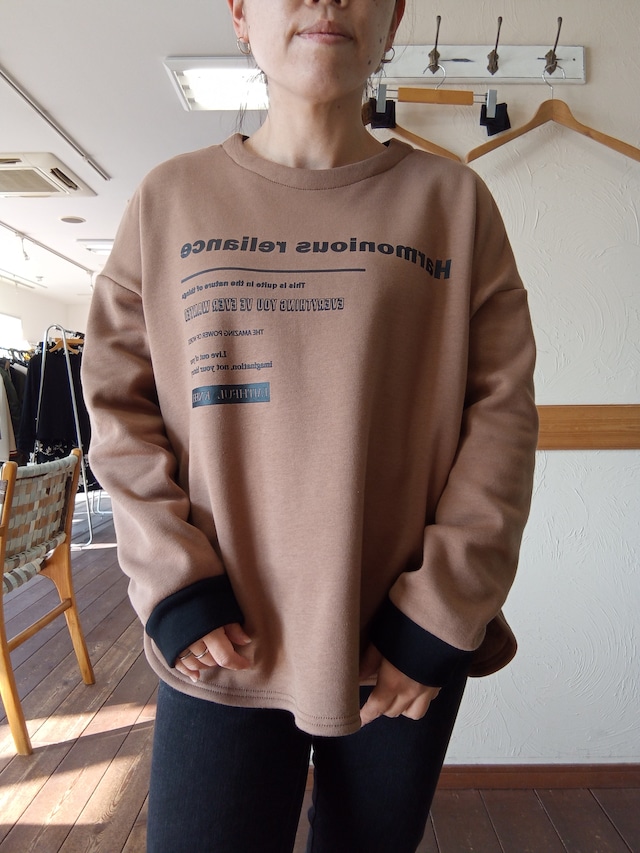 LINOTECH×シルケット天竺ビスチェレイヤードプルオーバー キャメル trois