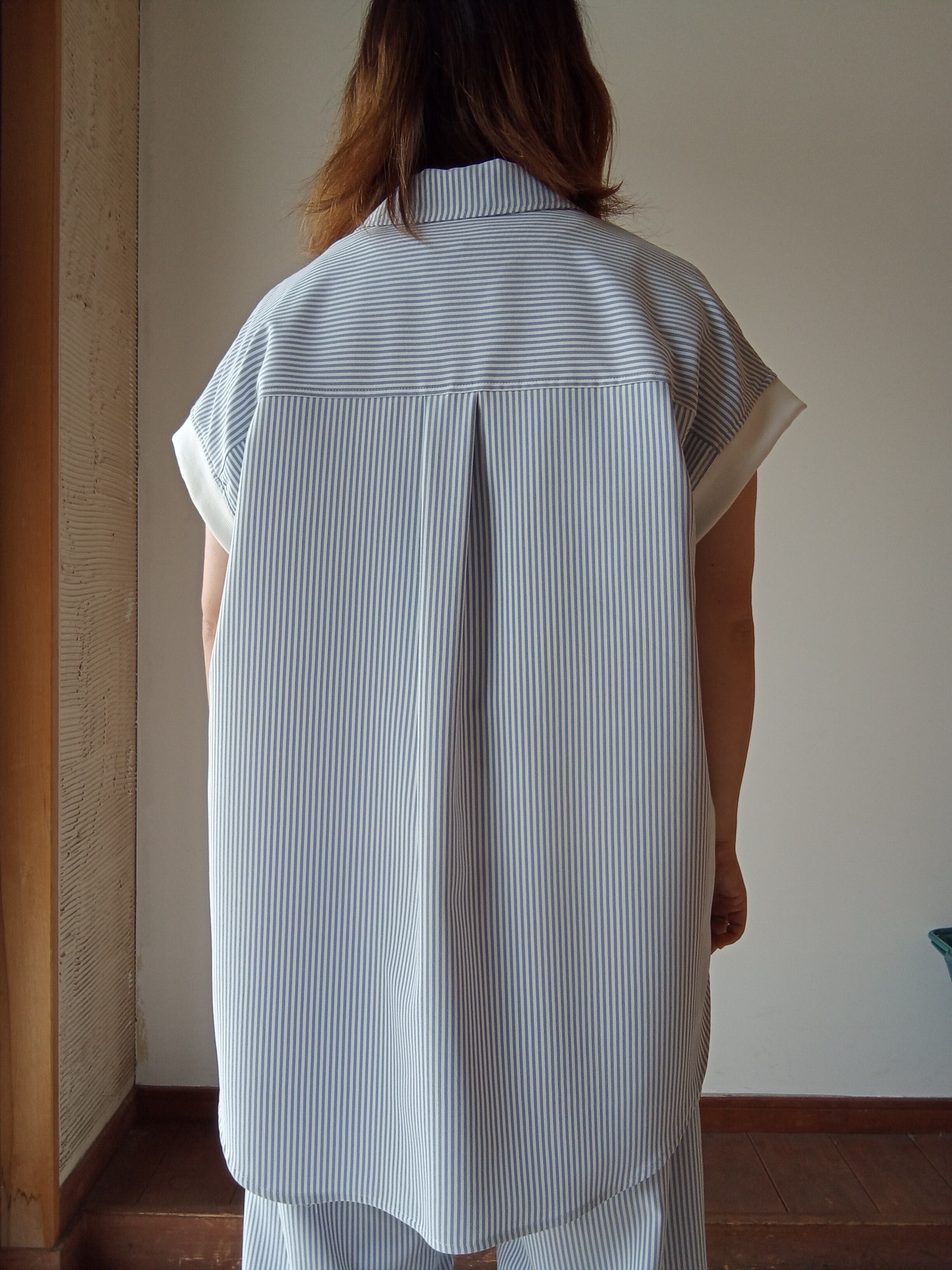 フレンチスリーブテーラードジャケット ストライプ オフ×ブルー fosi.