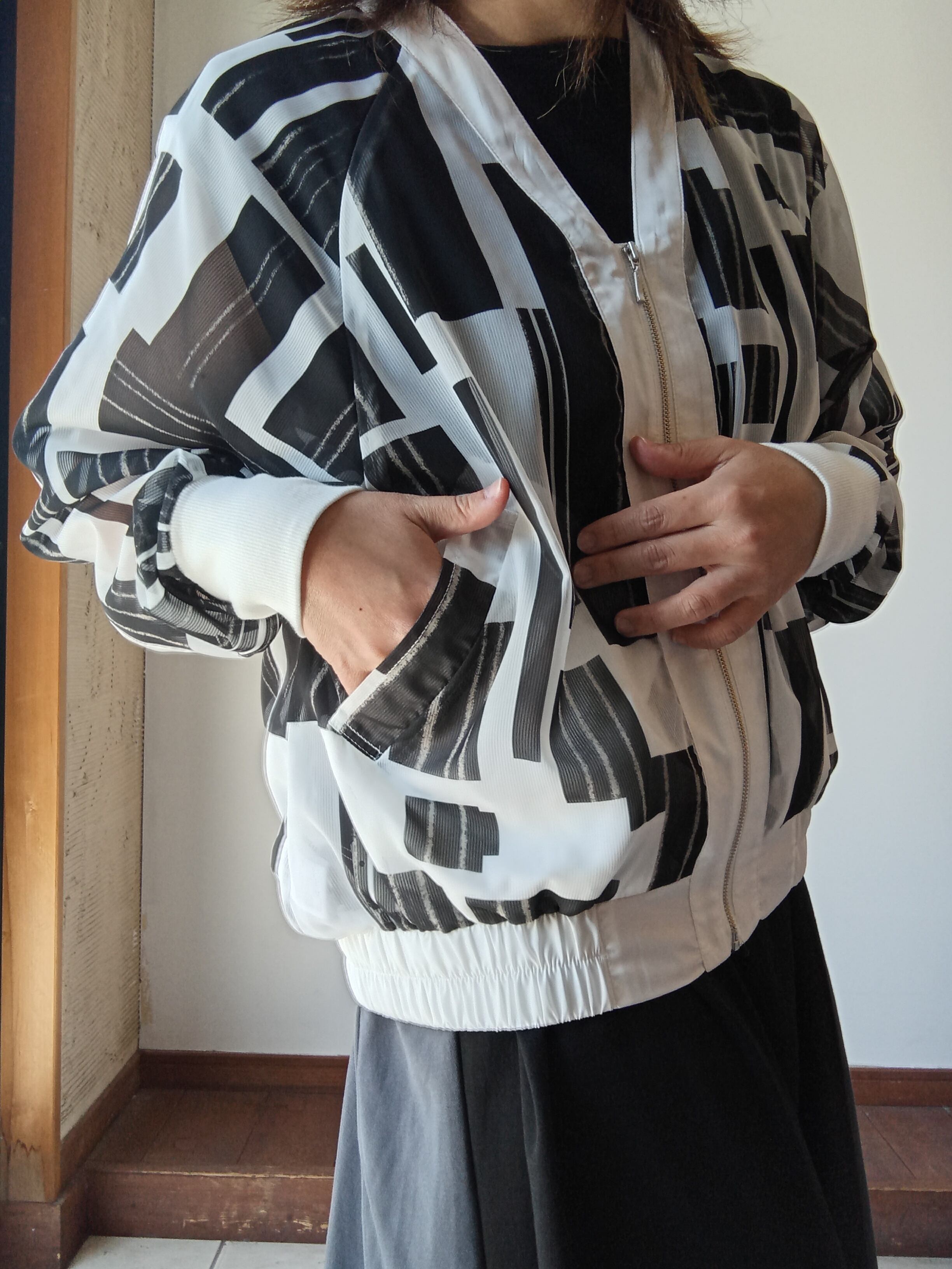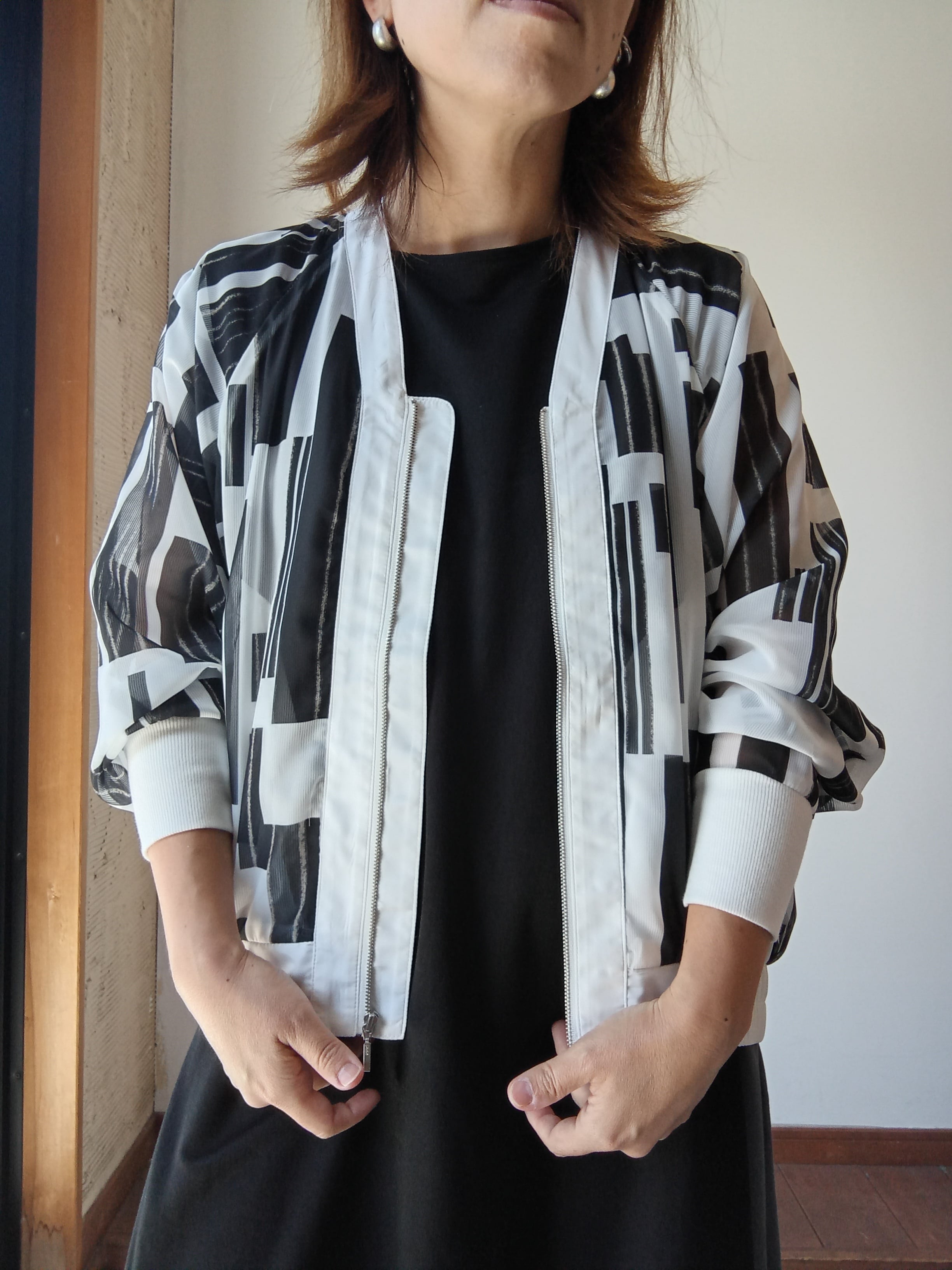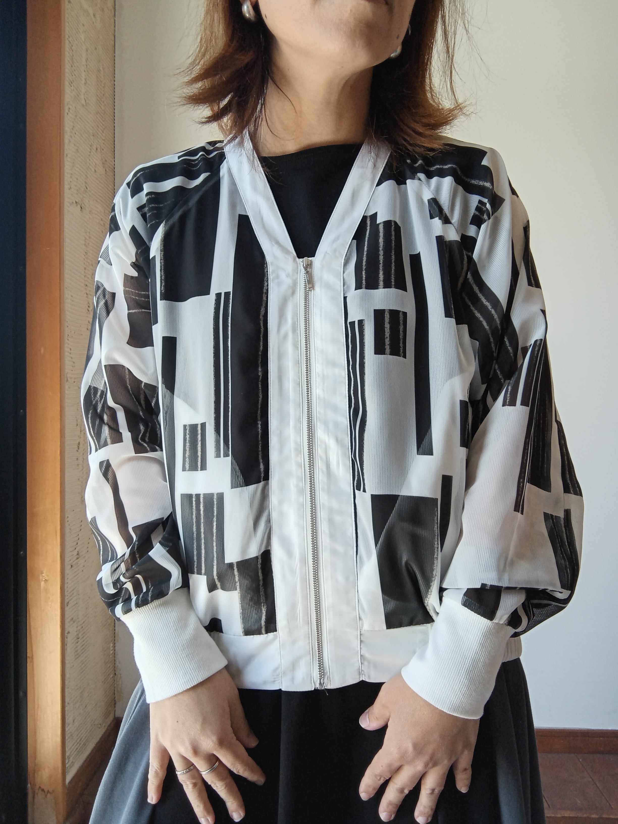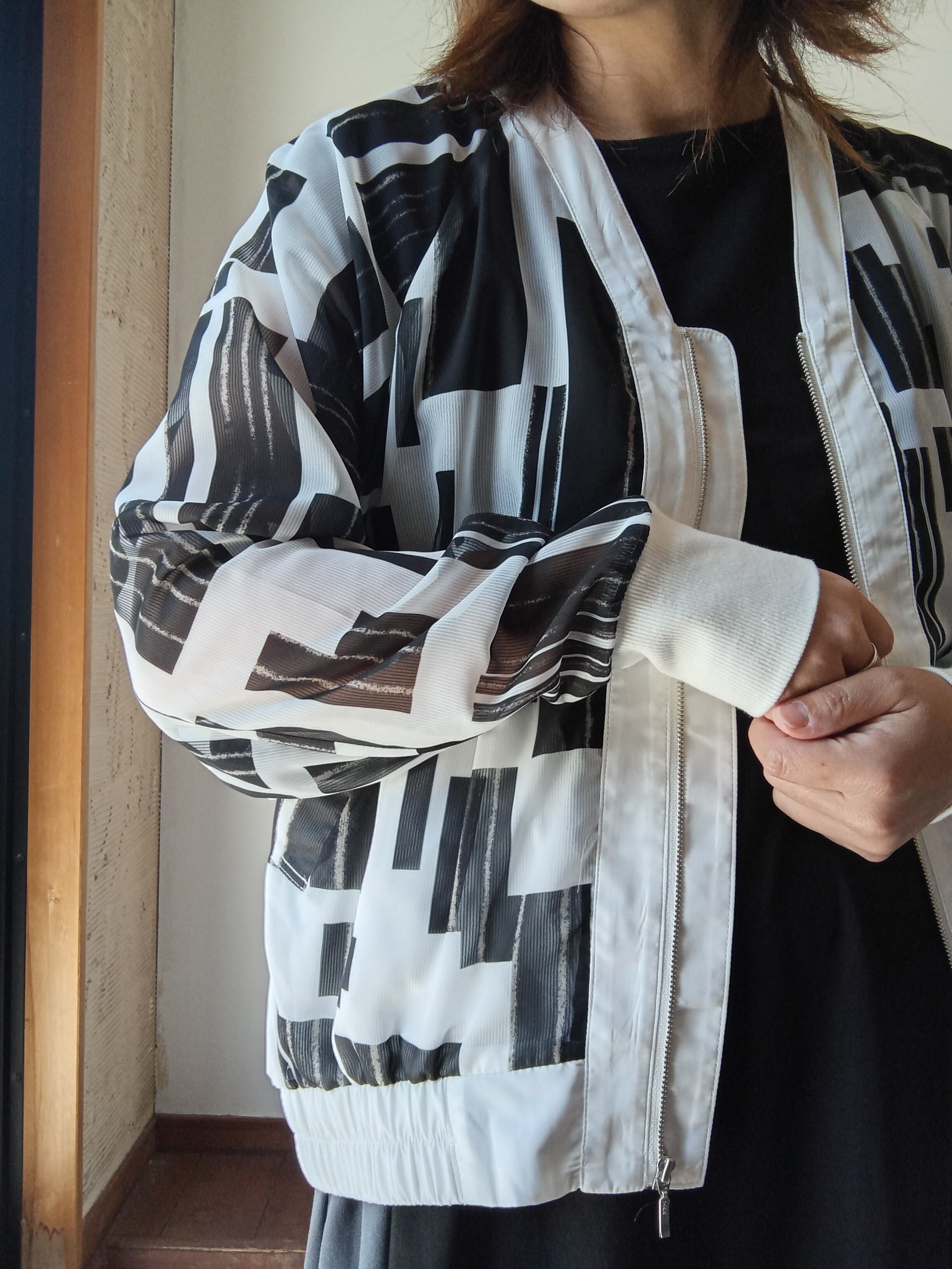 プリントブルゾン ホワイト×ブラック ドナマリー