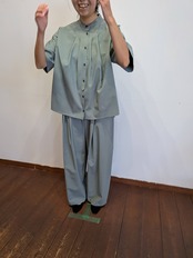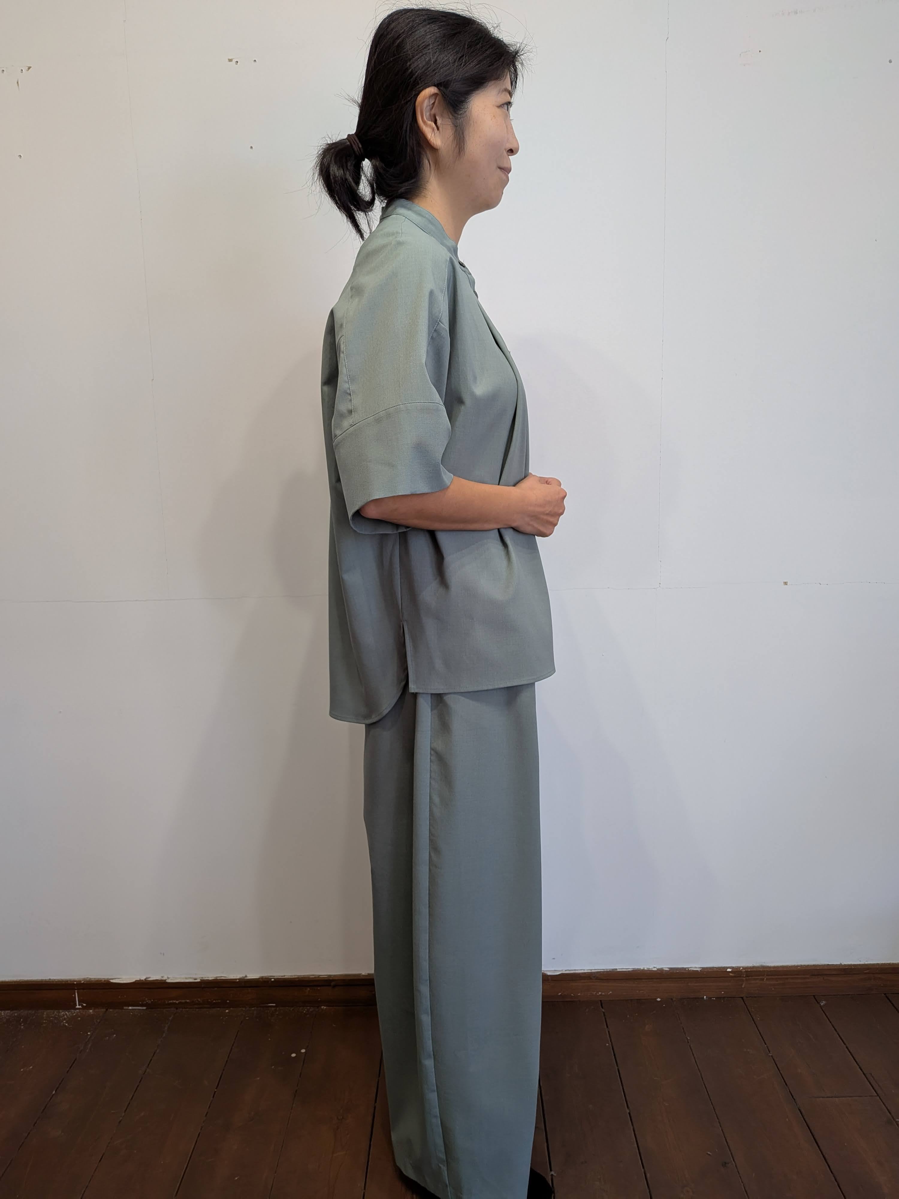 【10/4(土)10:00まで特別限定価格】ウェザーストレッチタックブラウス セージ trois