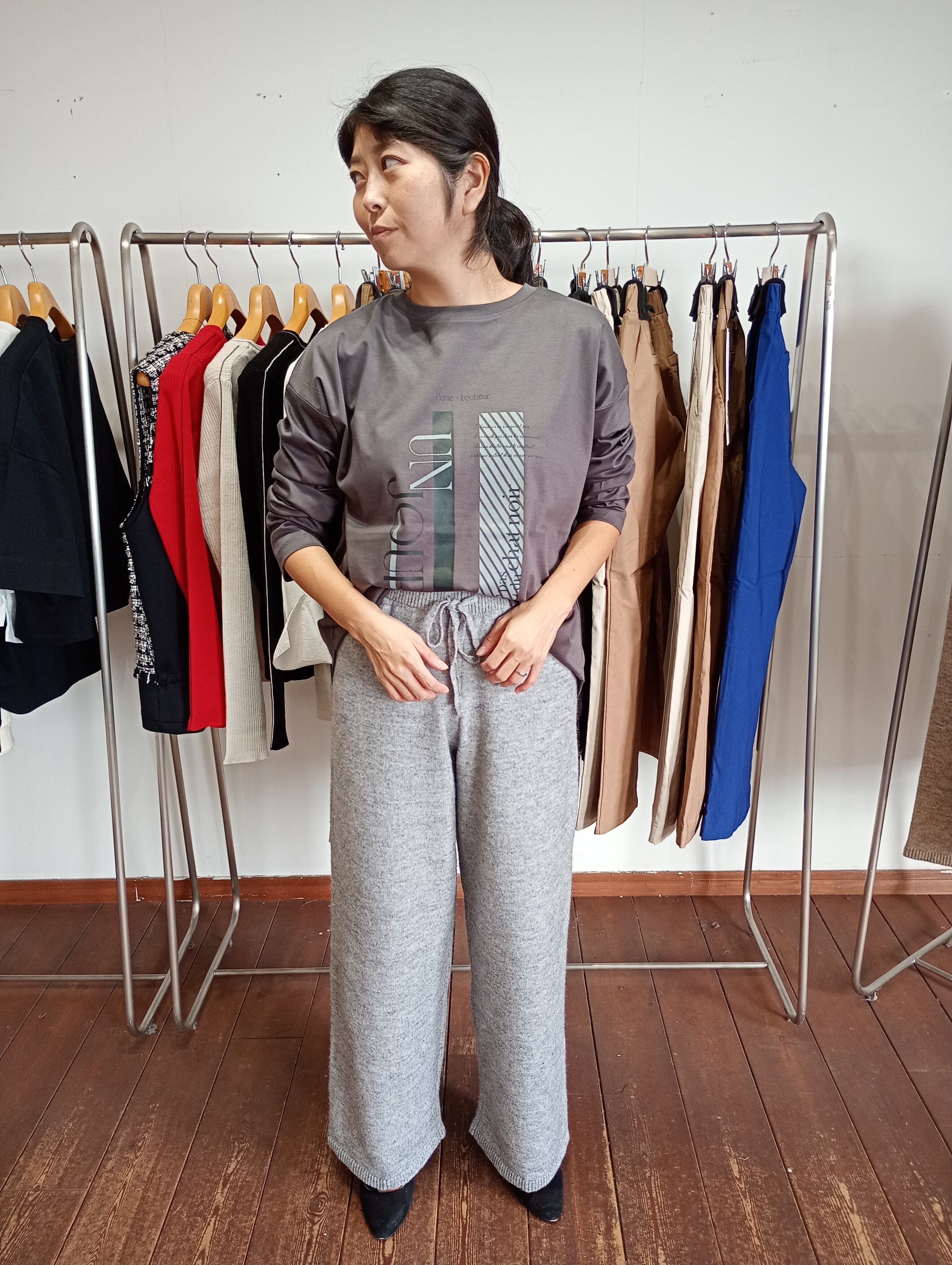 柔らかくチクチクしないニット素材です。MIX感のある色が今年らしく◎