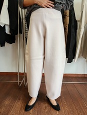 緩やかなカーブラインが上半身をすっきりと見せてくれるスタイルアップ効果が嬉しいカーブパンツ。