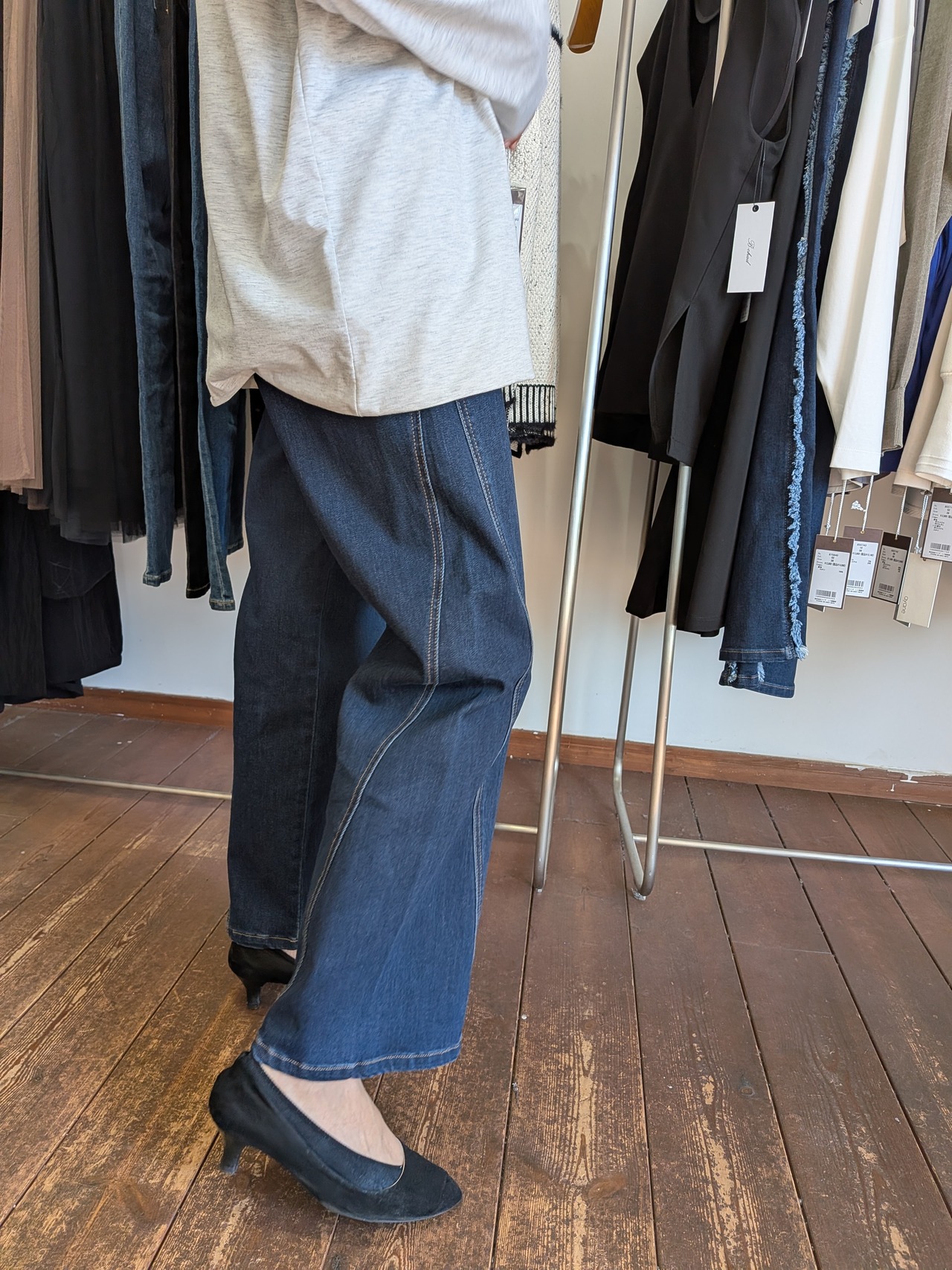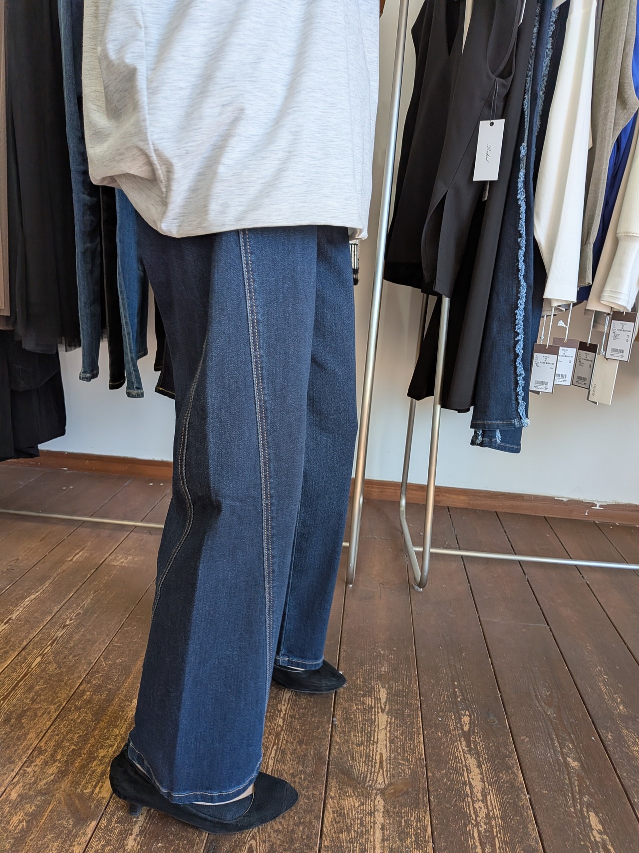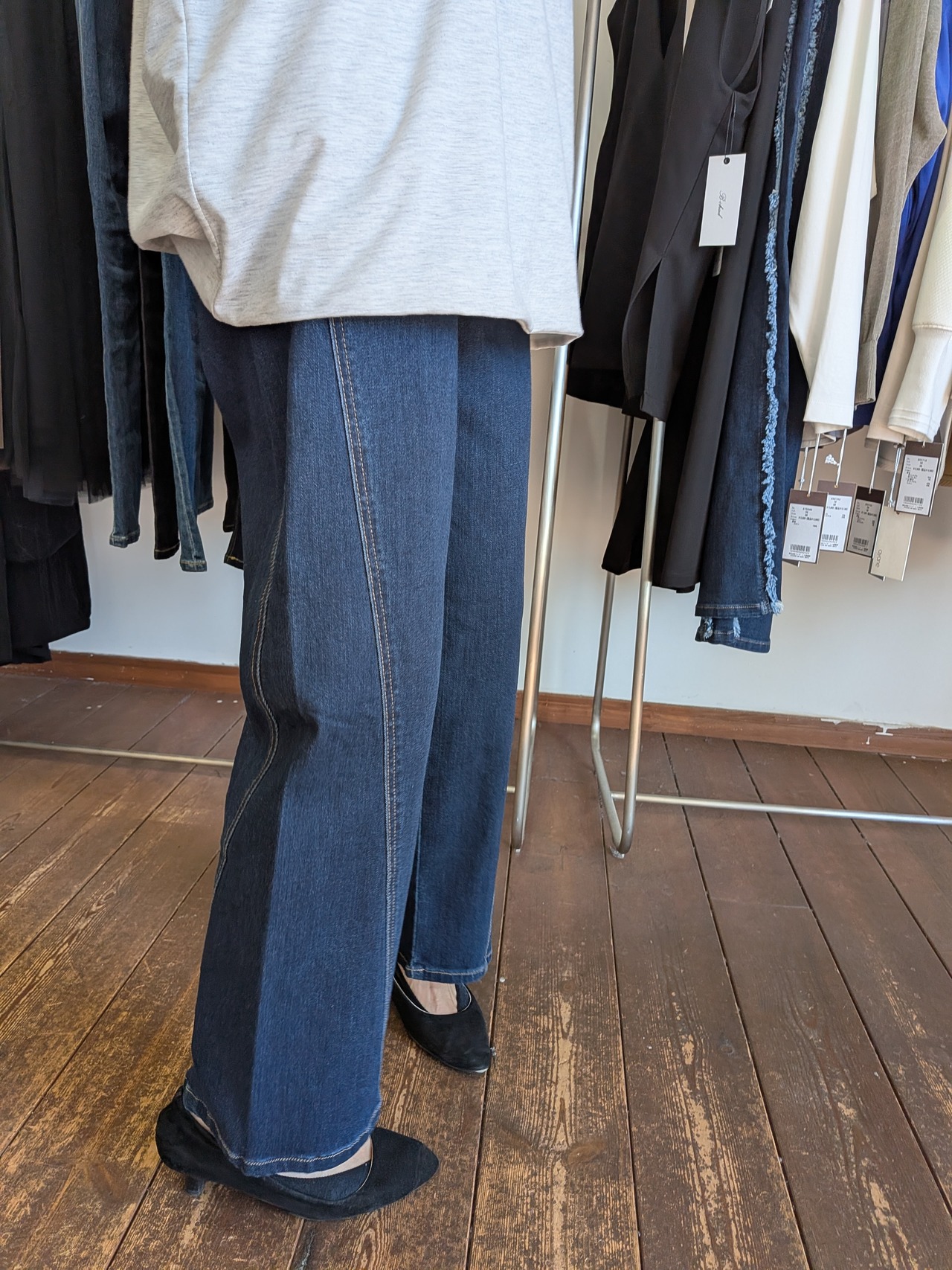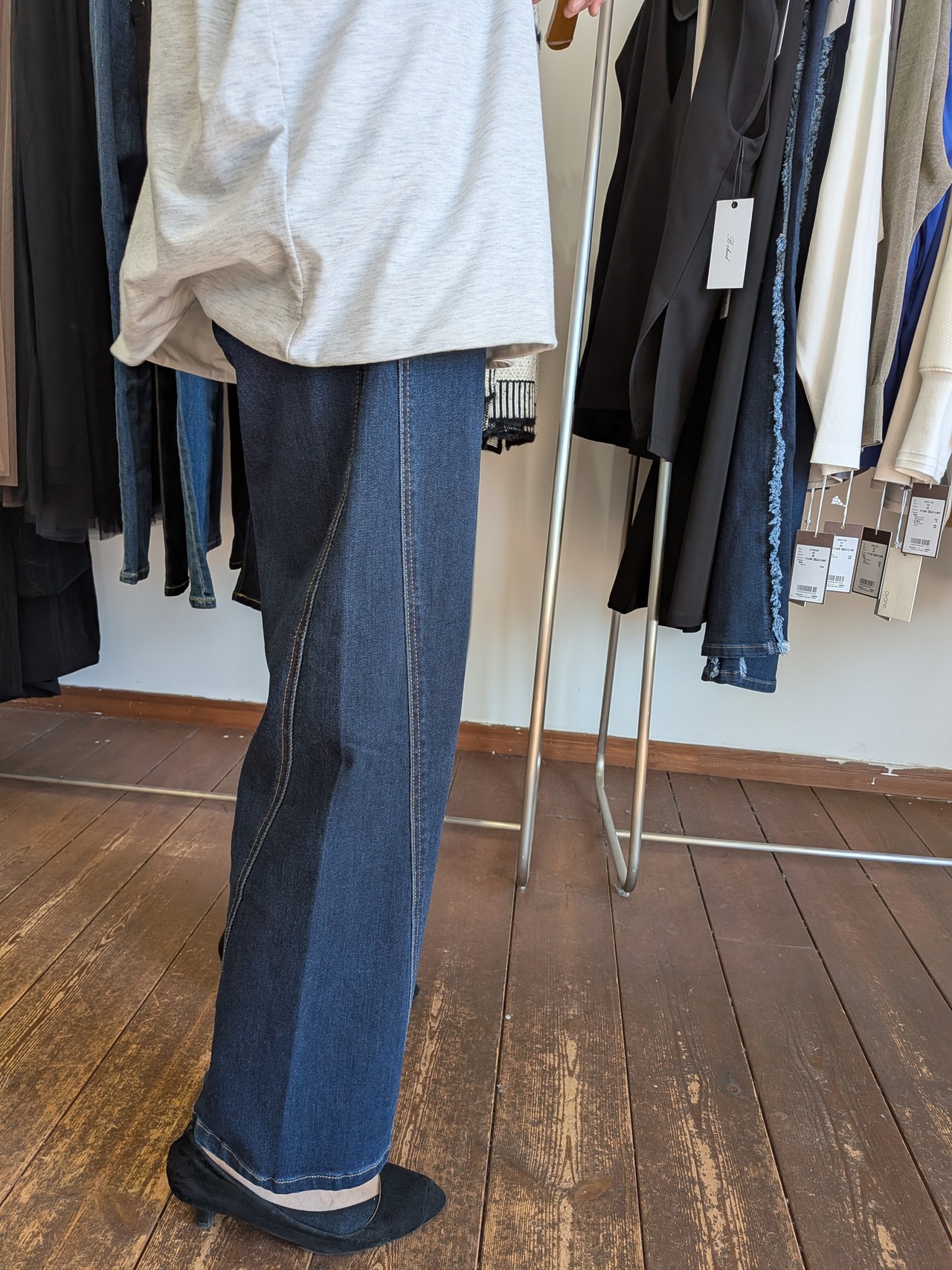 CTRデニム斜め切替ワイドパンツ インディゴ b-chad