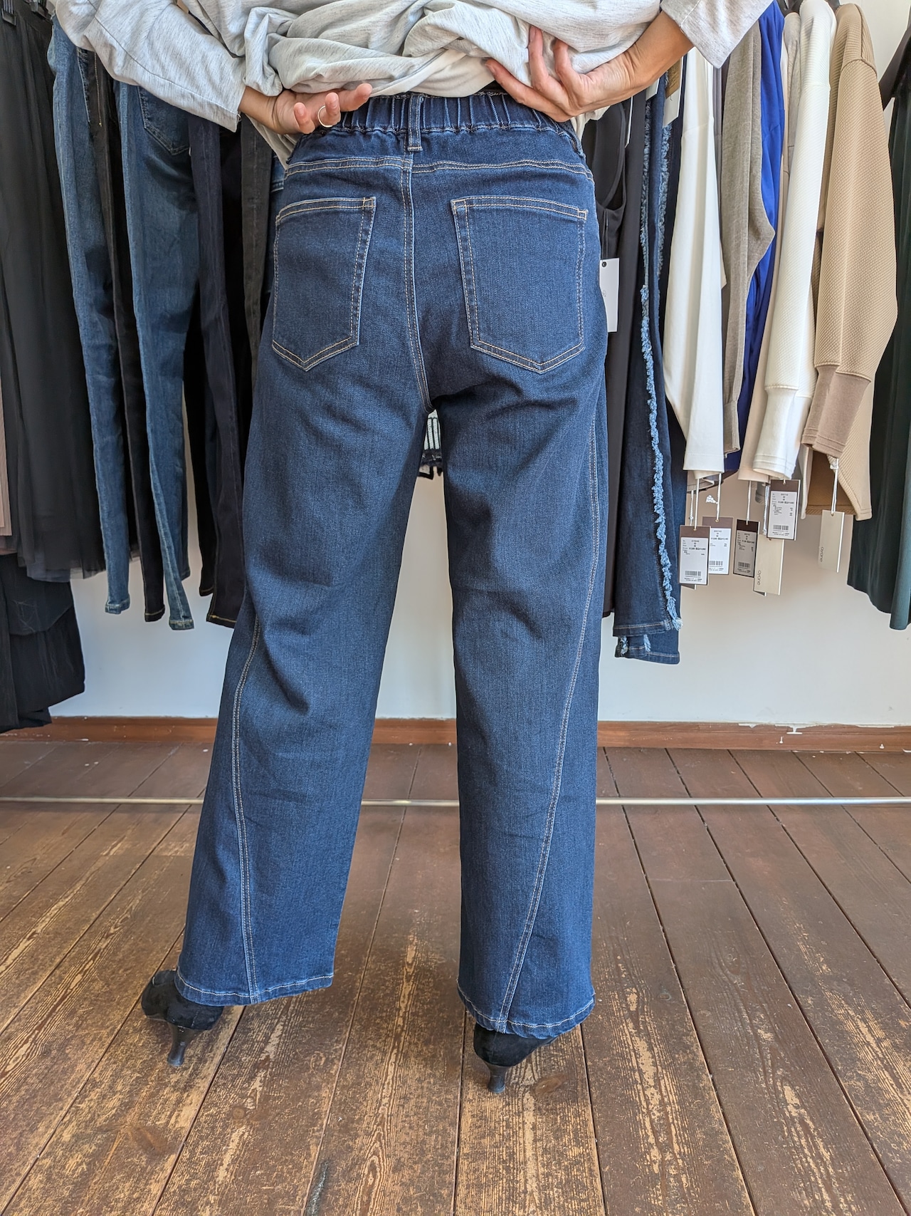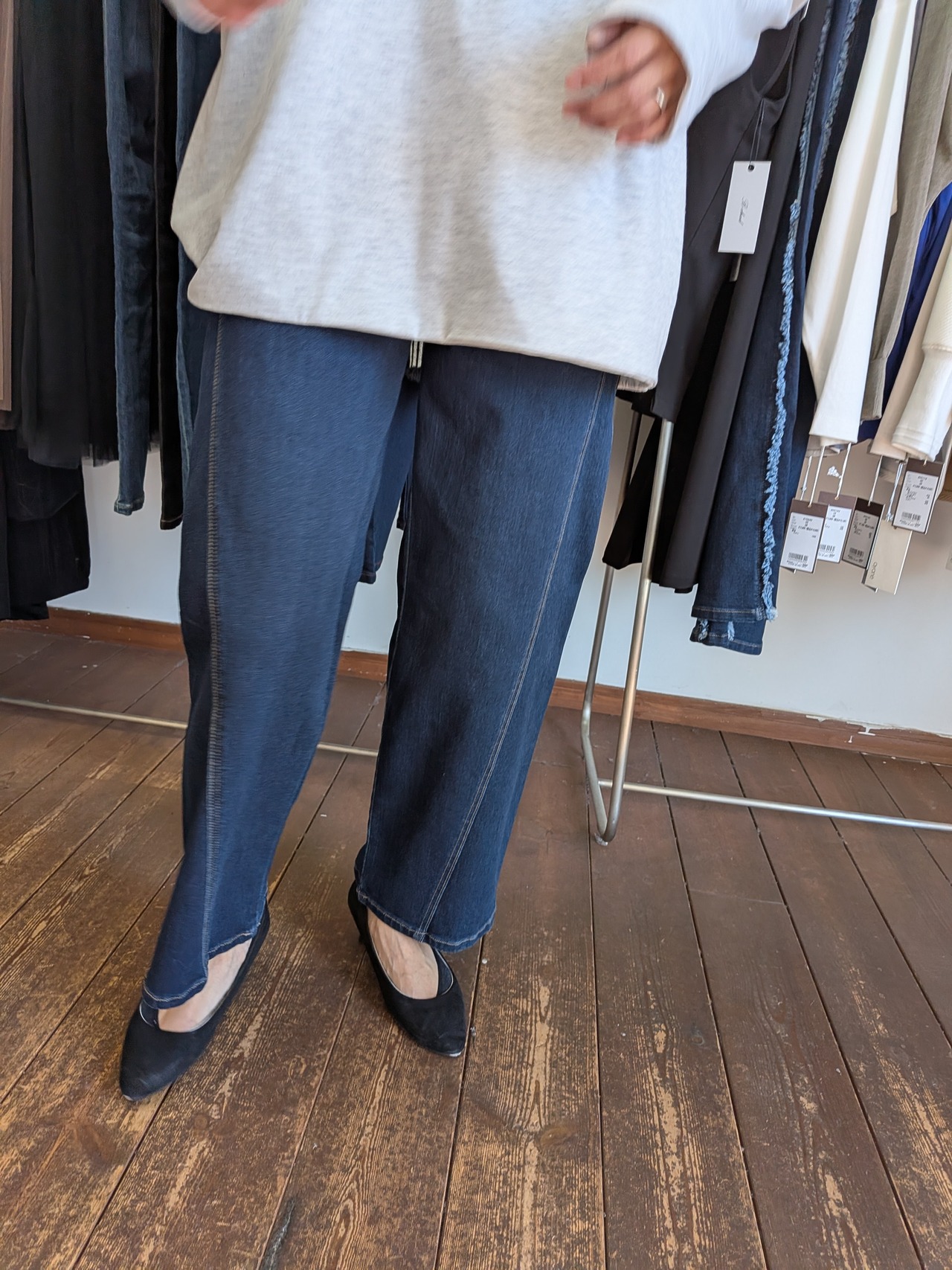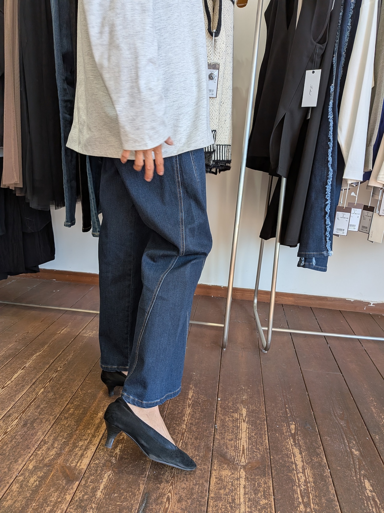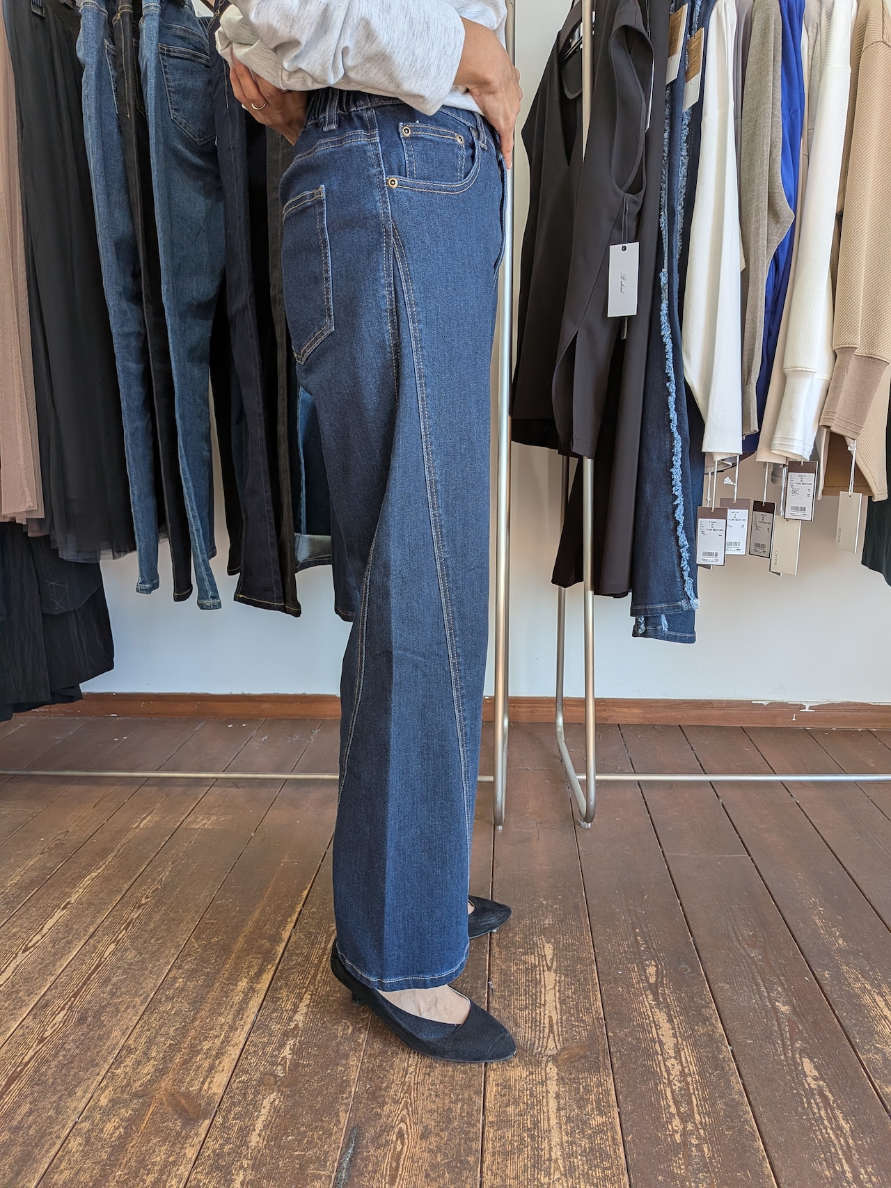 CTRデニム斜め切替ワイドパンツ インディゴ b-chad