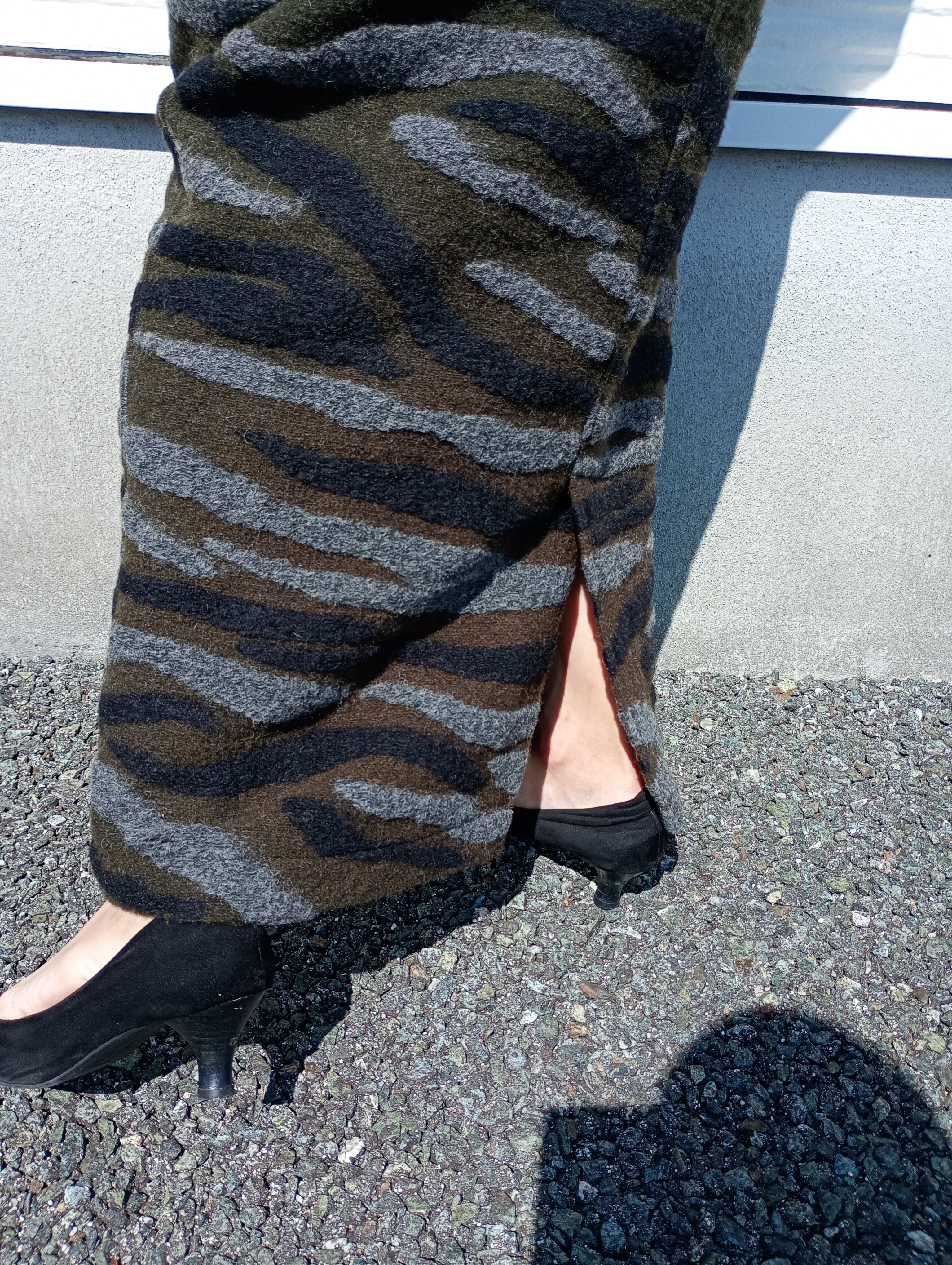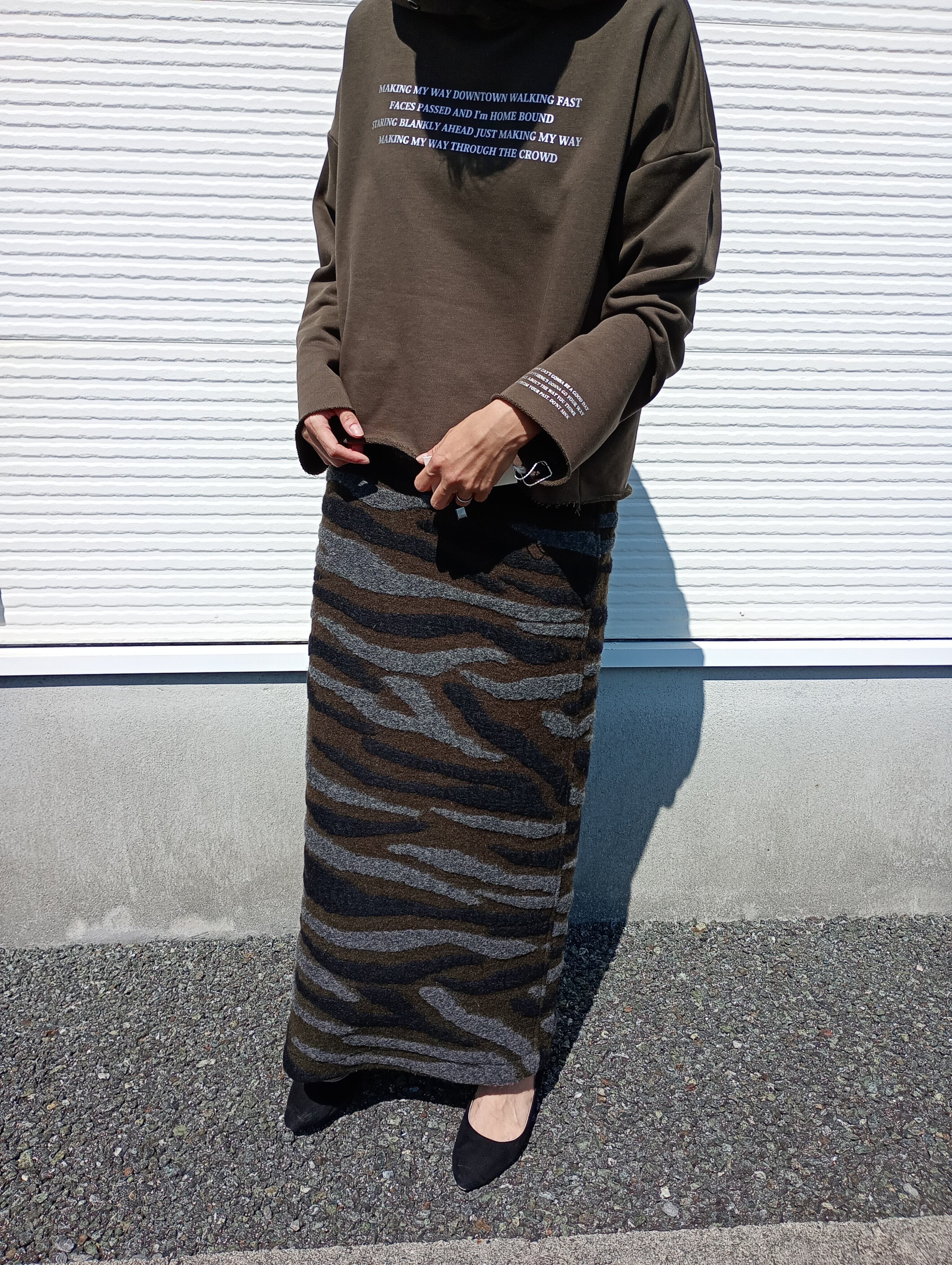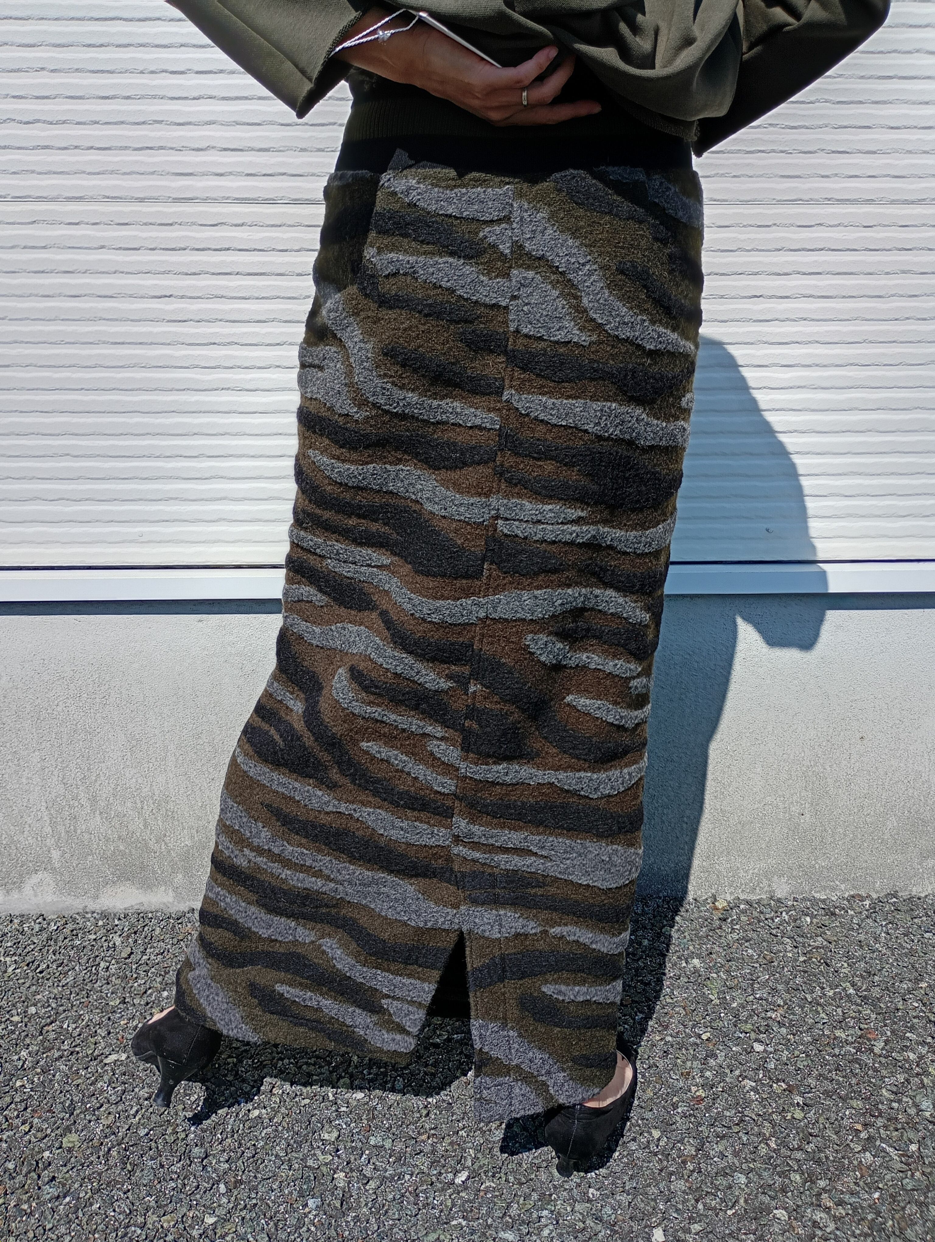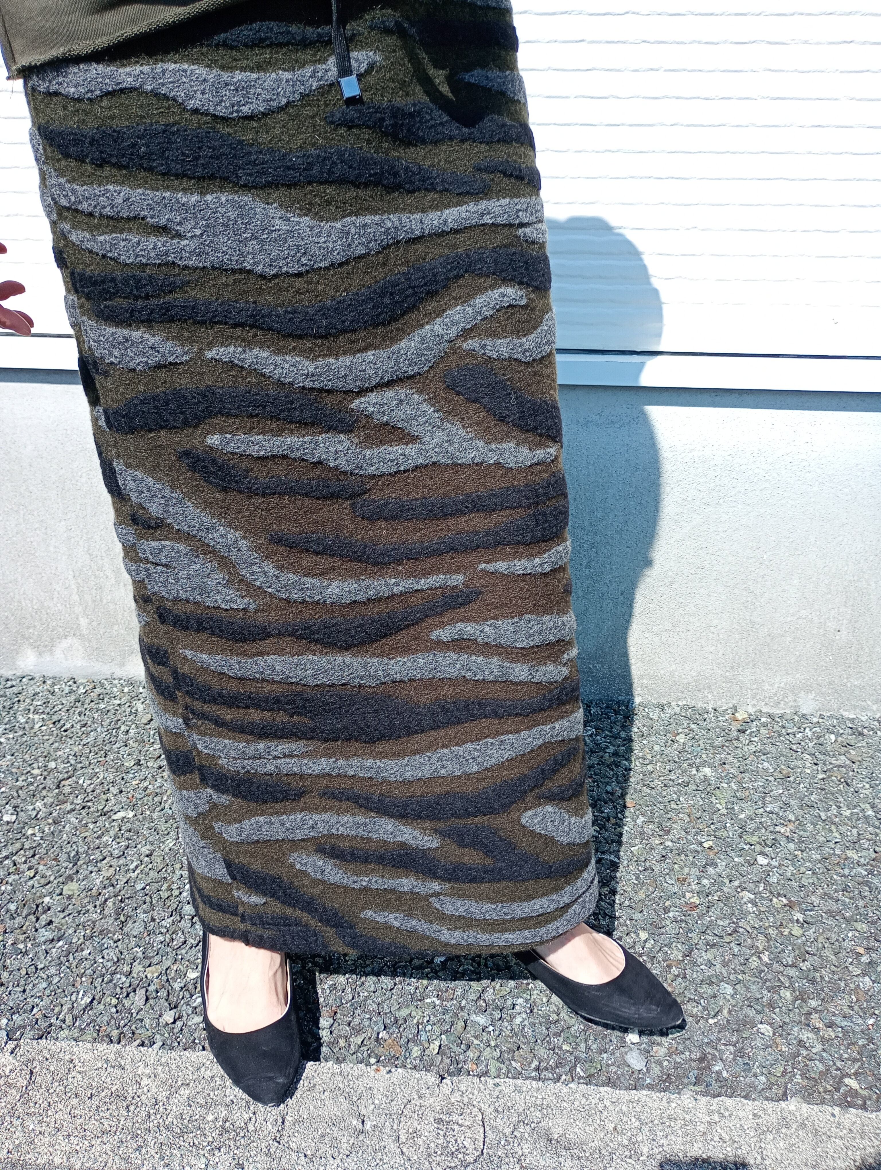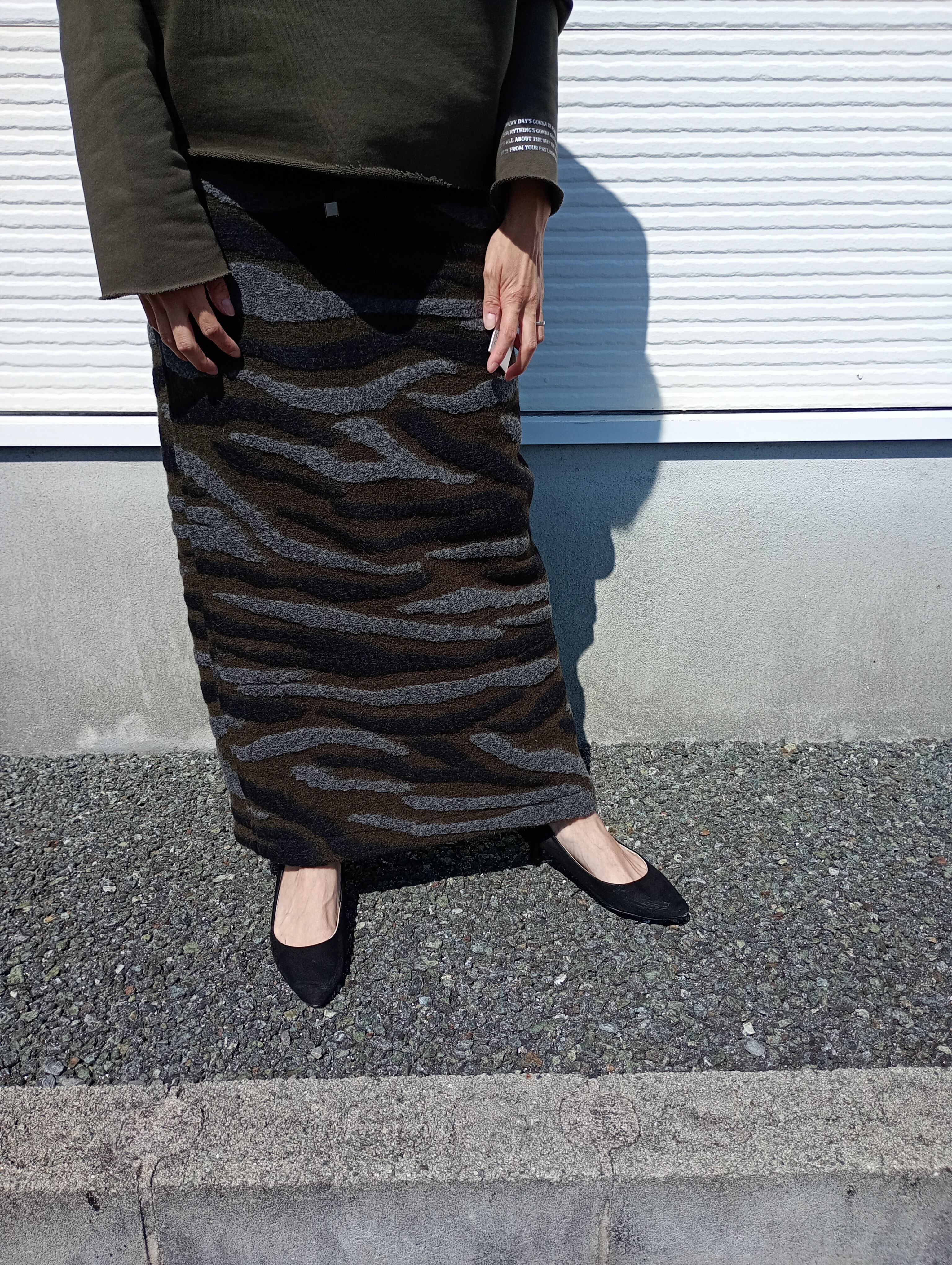 カモフラ柄スライバーペンシルスカート カーキ系 ayane