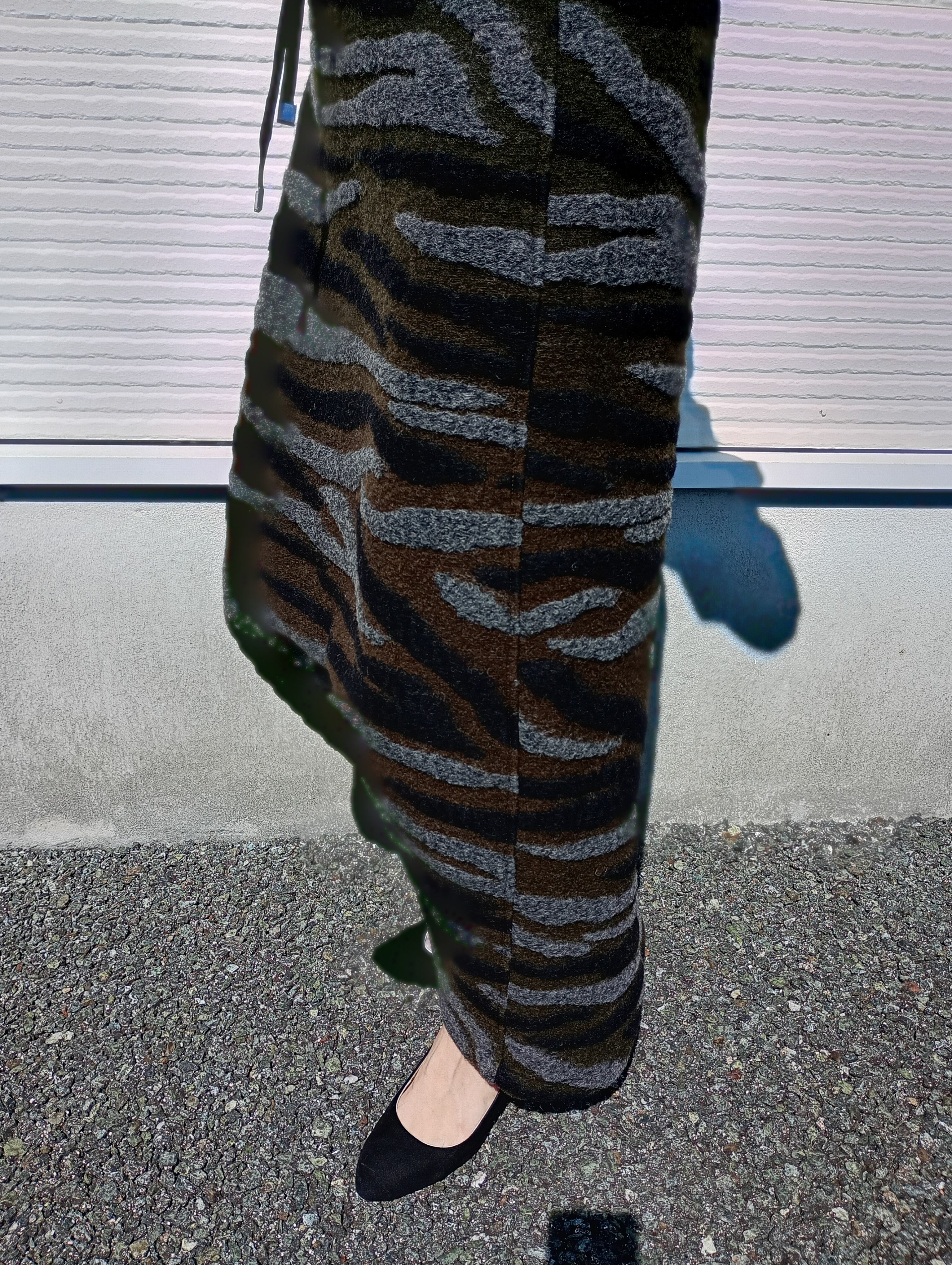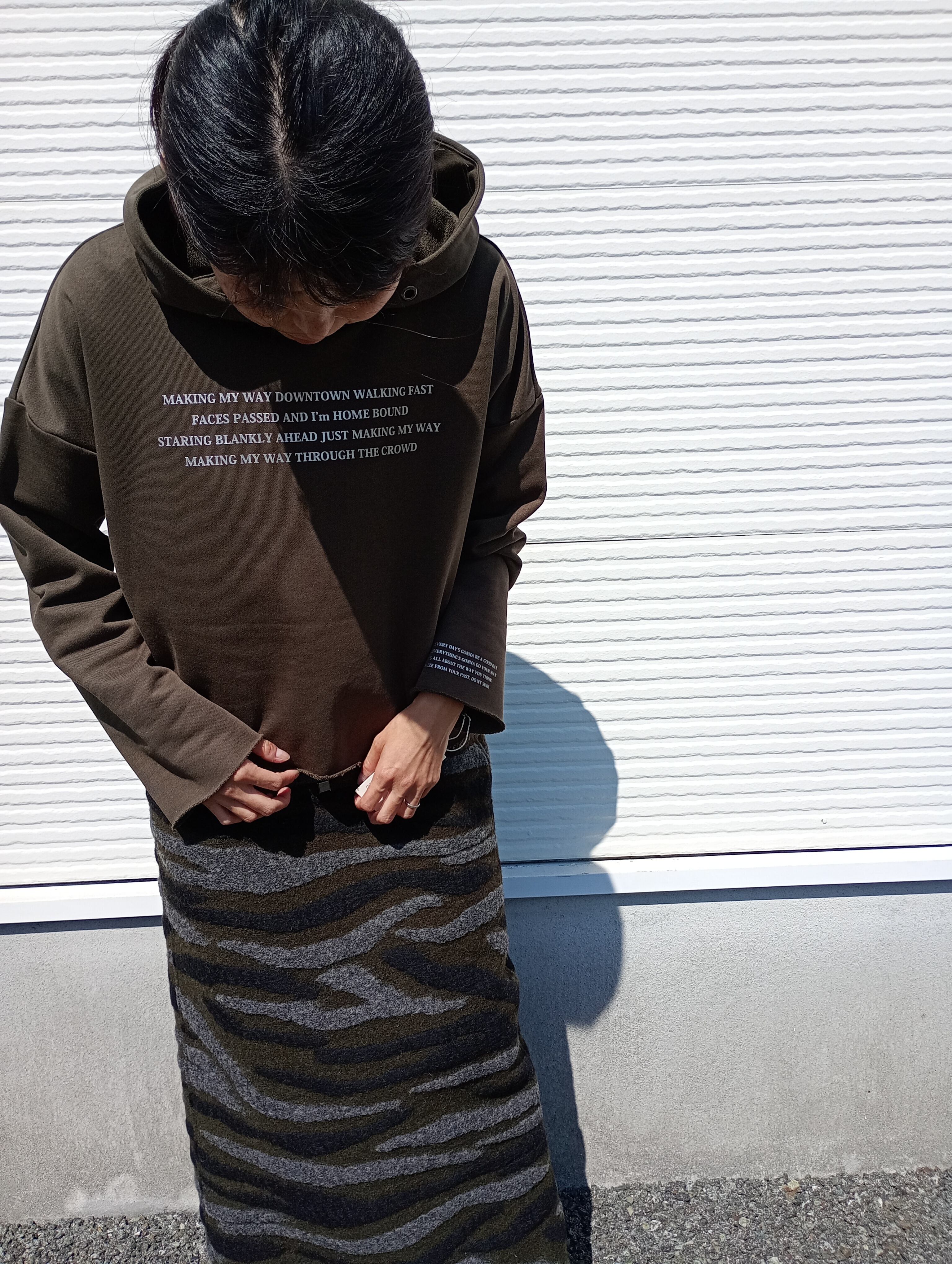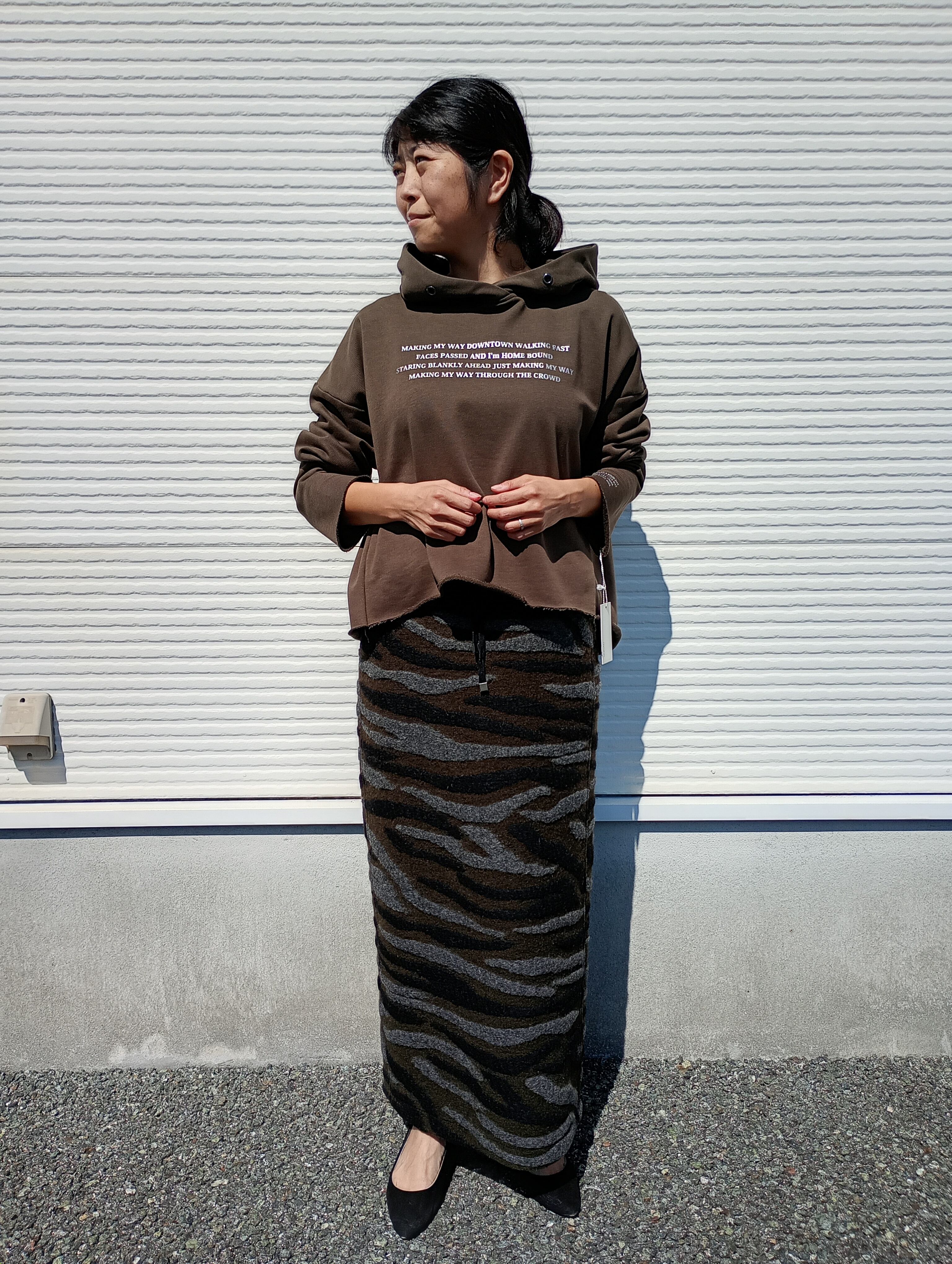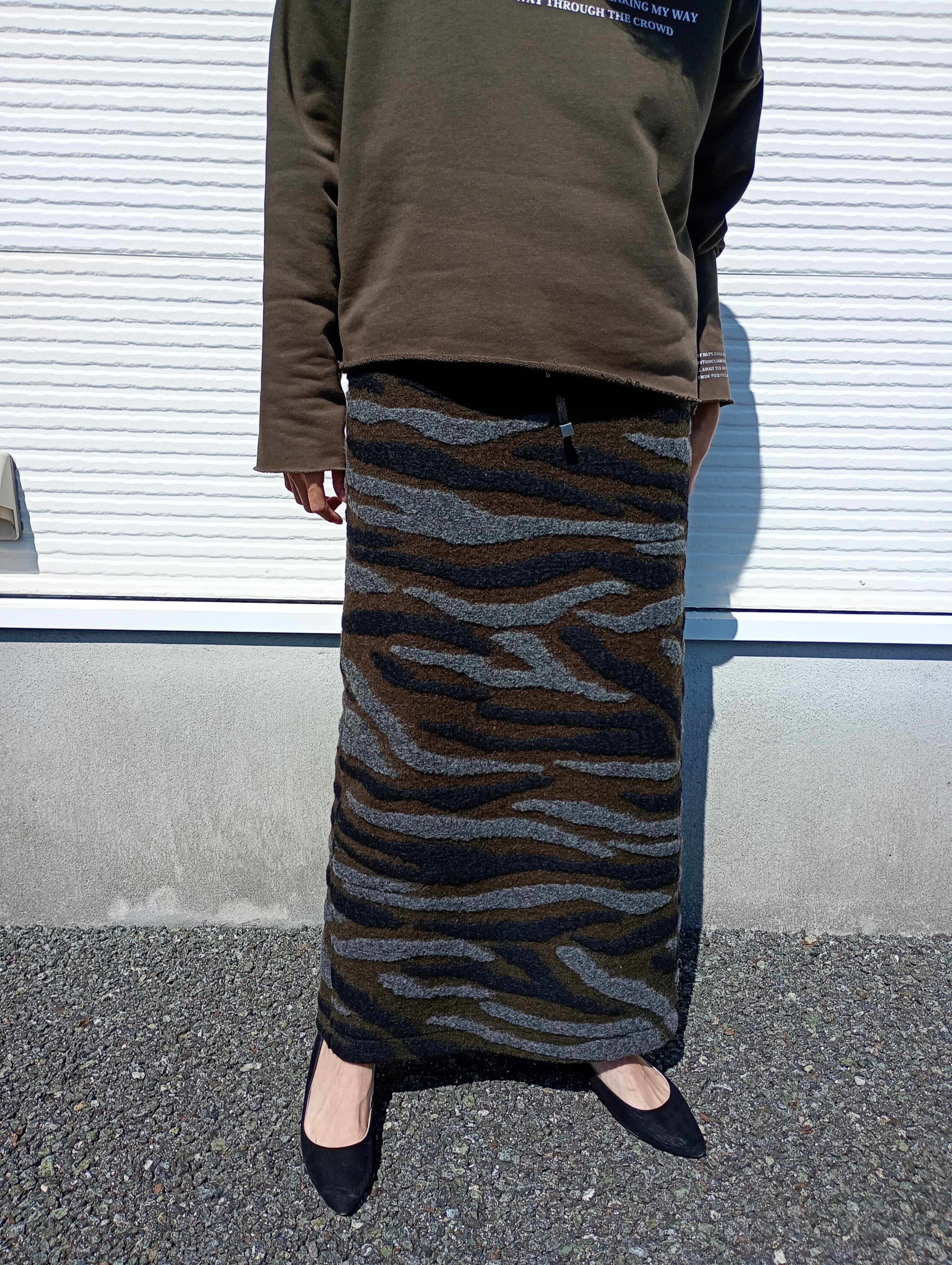 イタリア製のスライバー生地を使用。ウール混の暖かくて軽い素材です。柄も迷彩で、カジュアルなのに高級感のある誰とも被らない個性的な印象のスカートです。数量限定ですので無くなり次第終了です。
