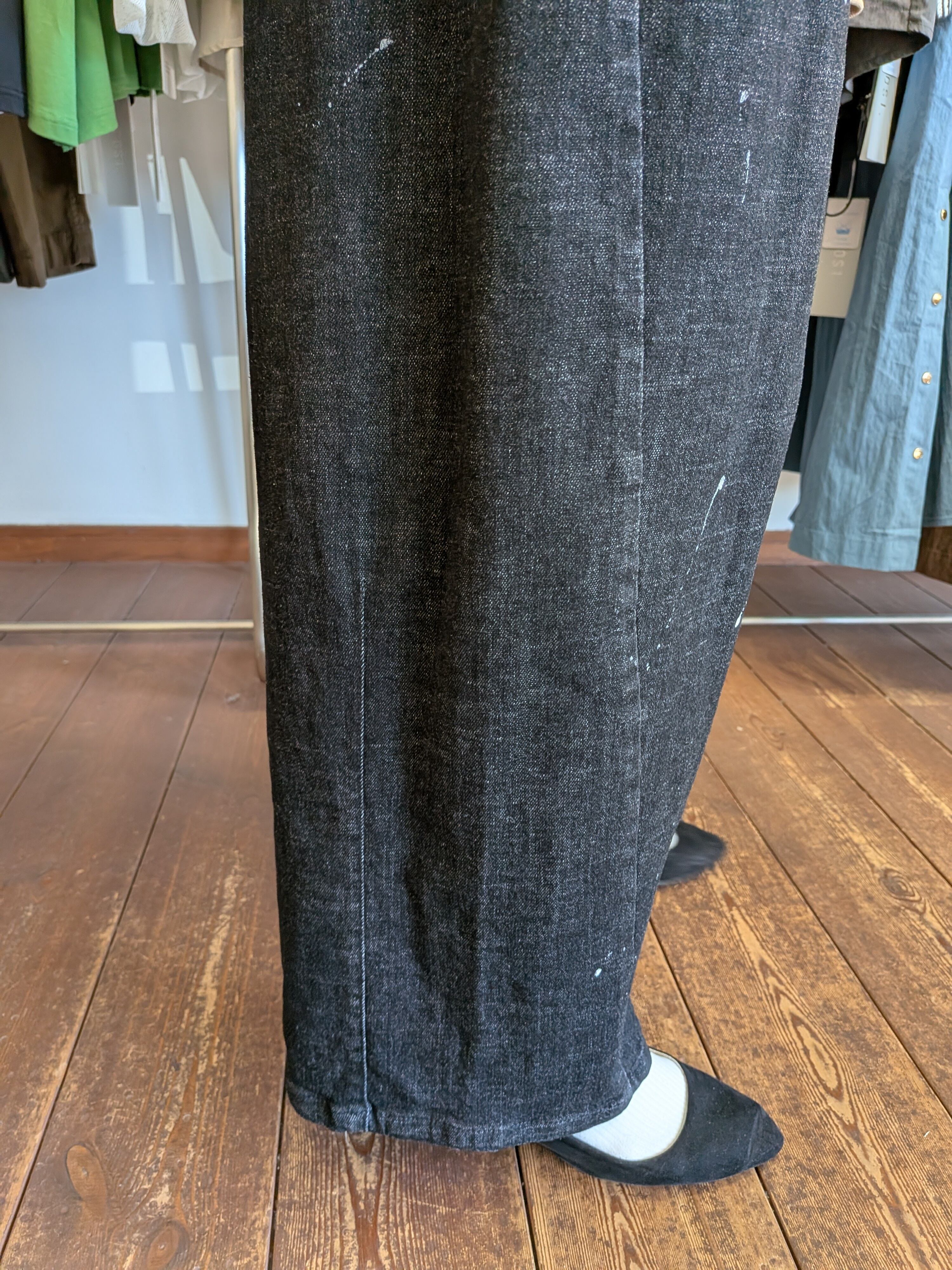 ペイント加工バレルレッグデニムパンツ ブラック ayane