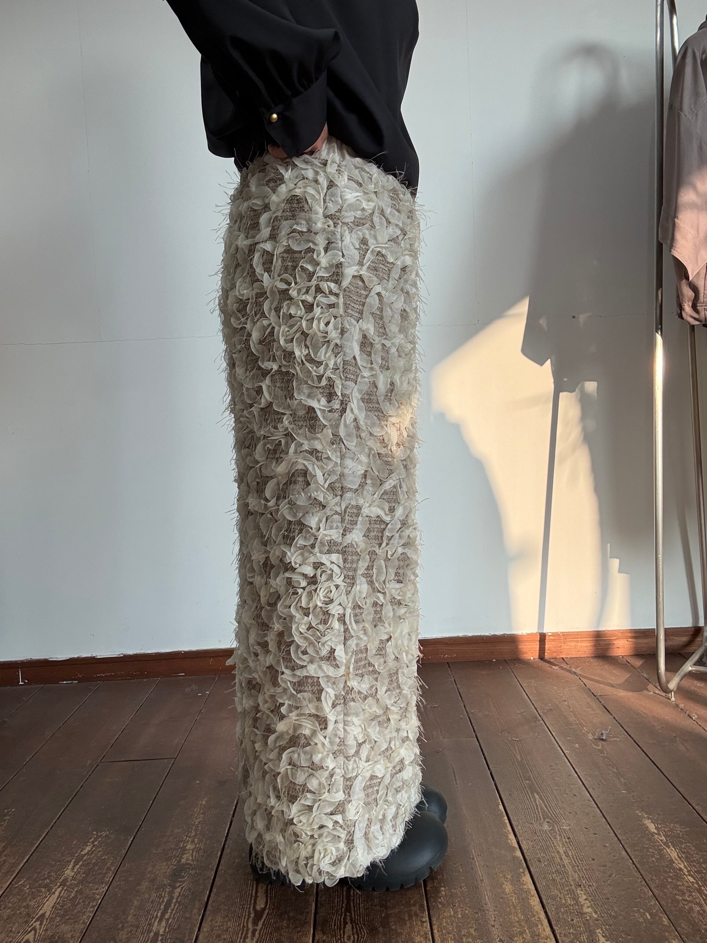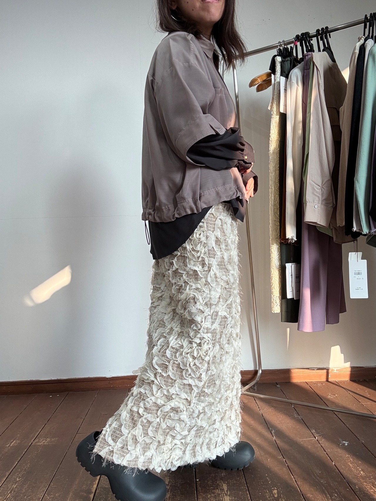 ソフトオーガンジー×ニットツイードタイトスカート ライトベージュ trois