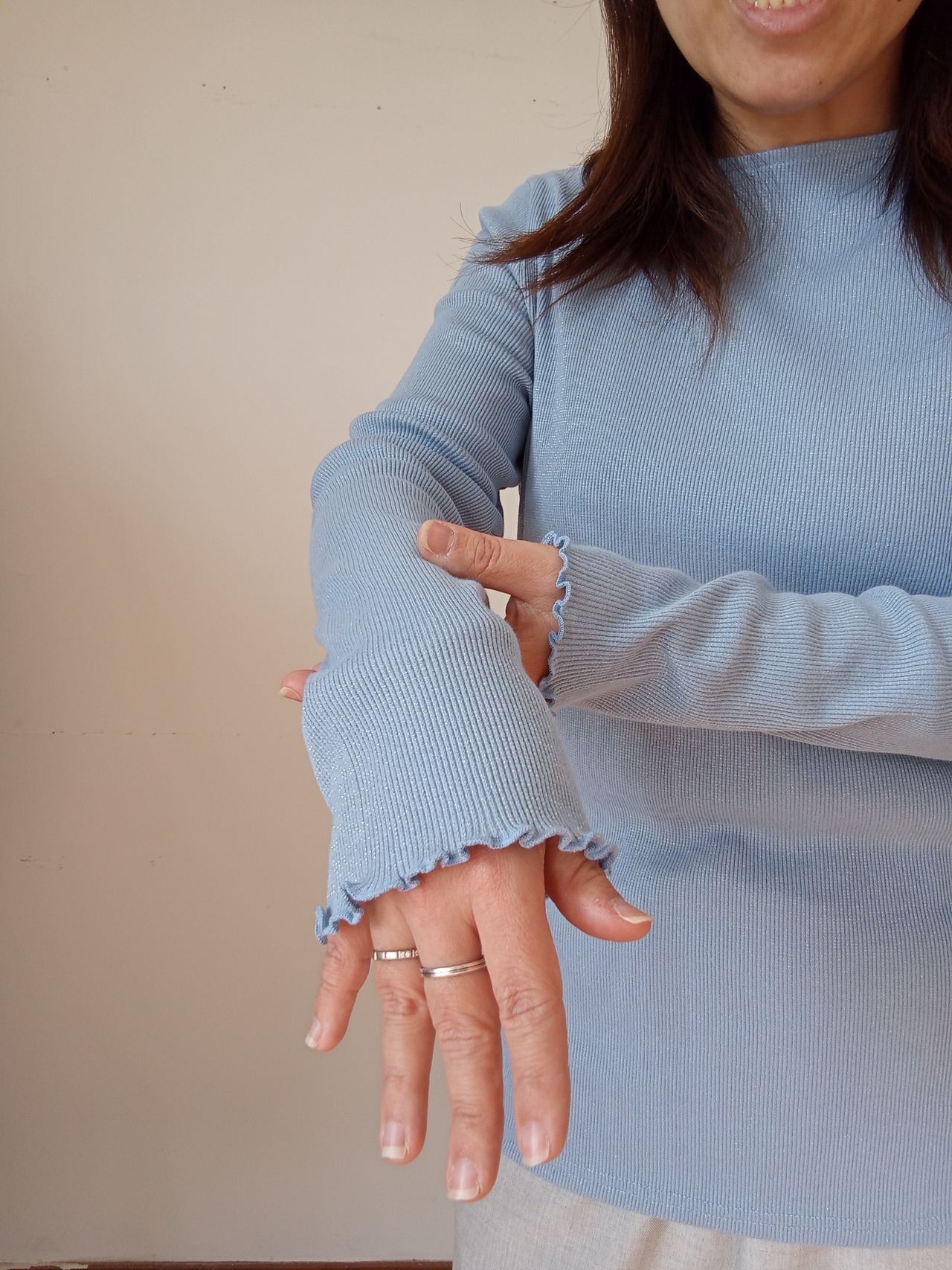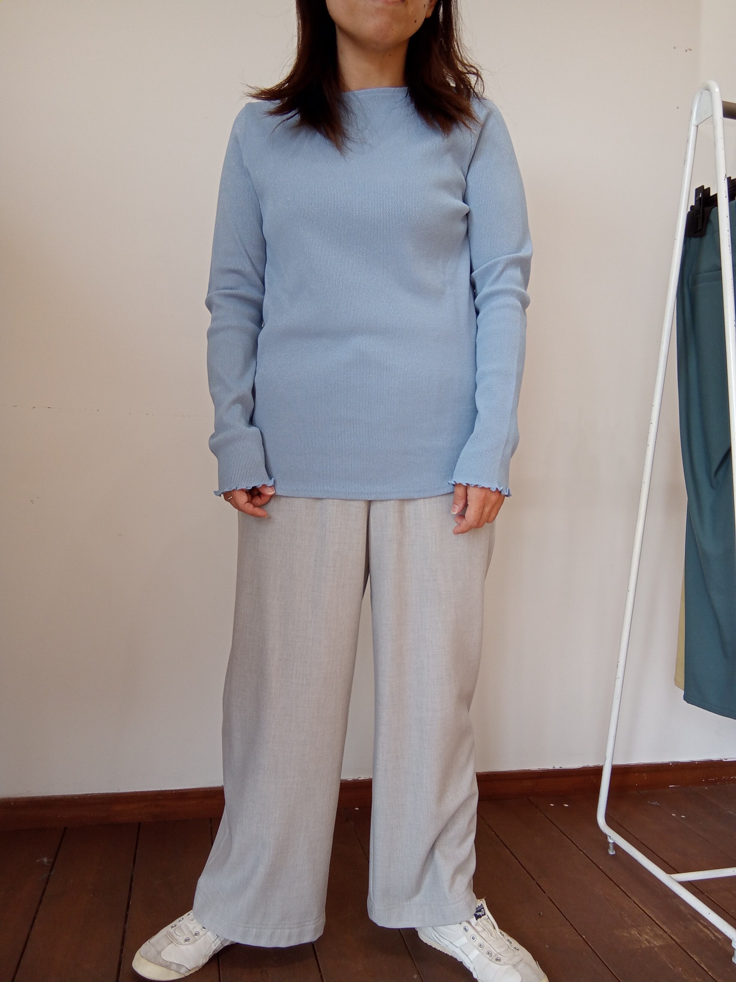 伸縮性に優れたリブ素材にキラキラのラメを配色。ゆったりとしたサイズ感と長めのシルエットが着回し力抜群です。