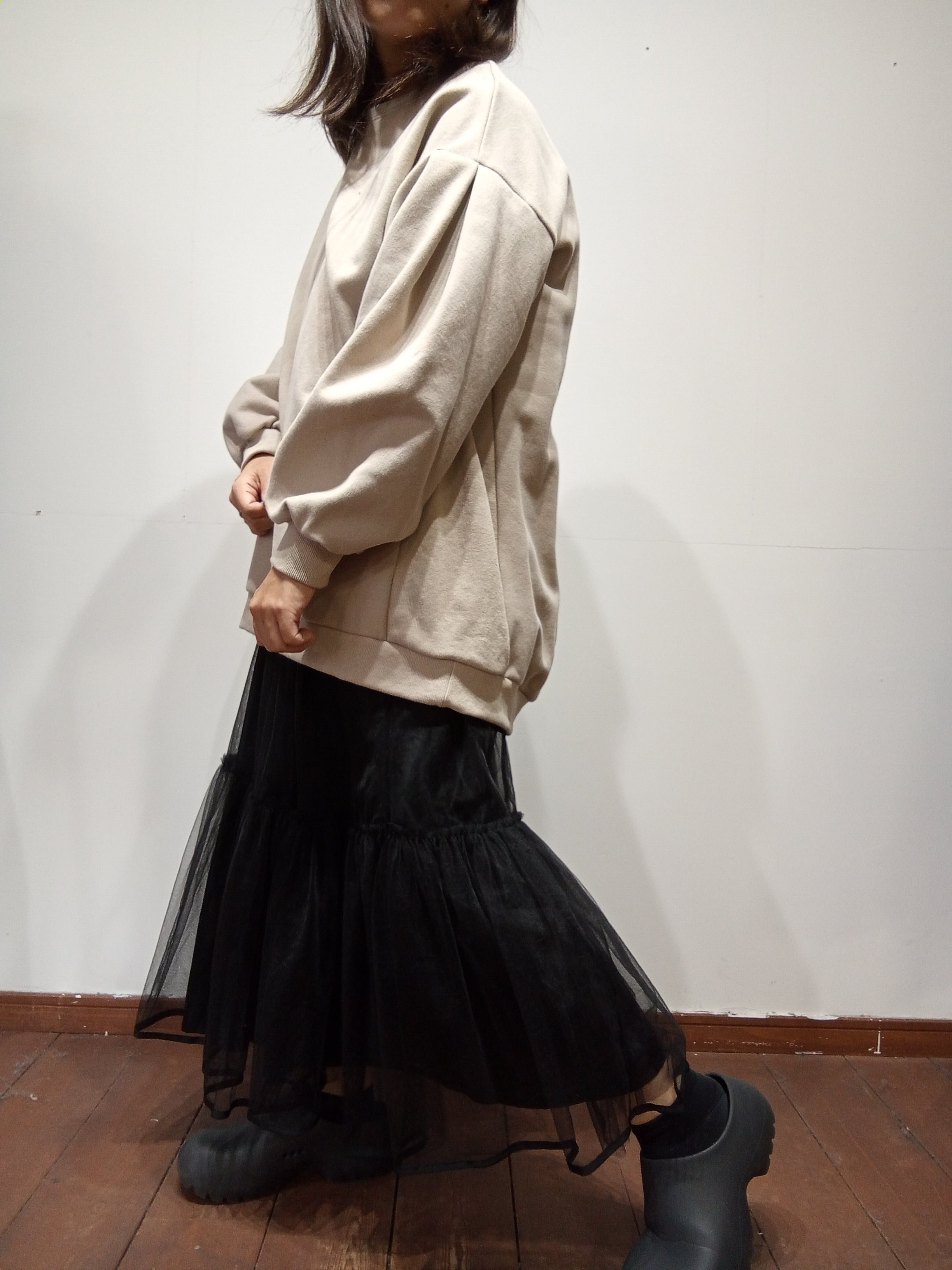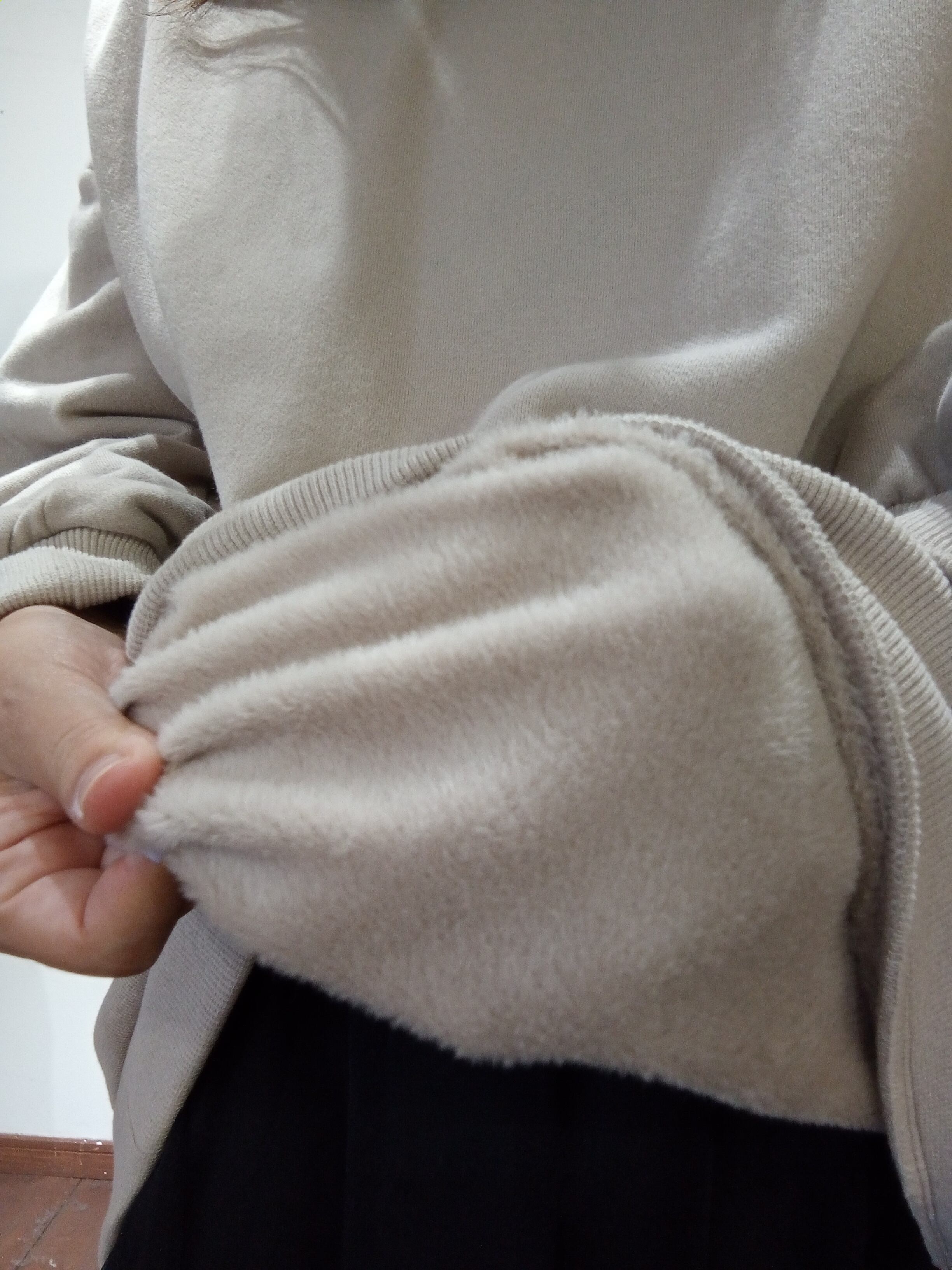 裏起毛プルオーバー付きワンピース ベージュ×ブラック trois