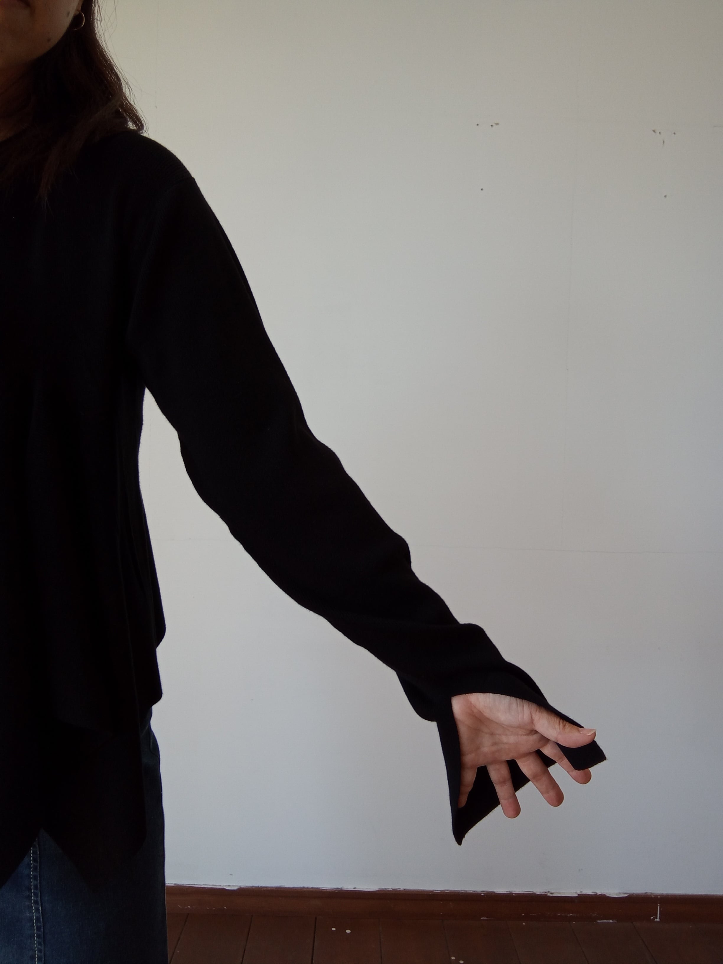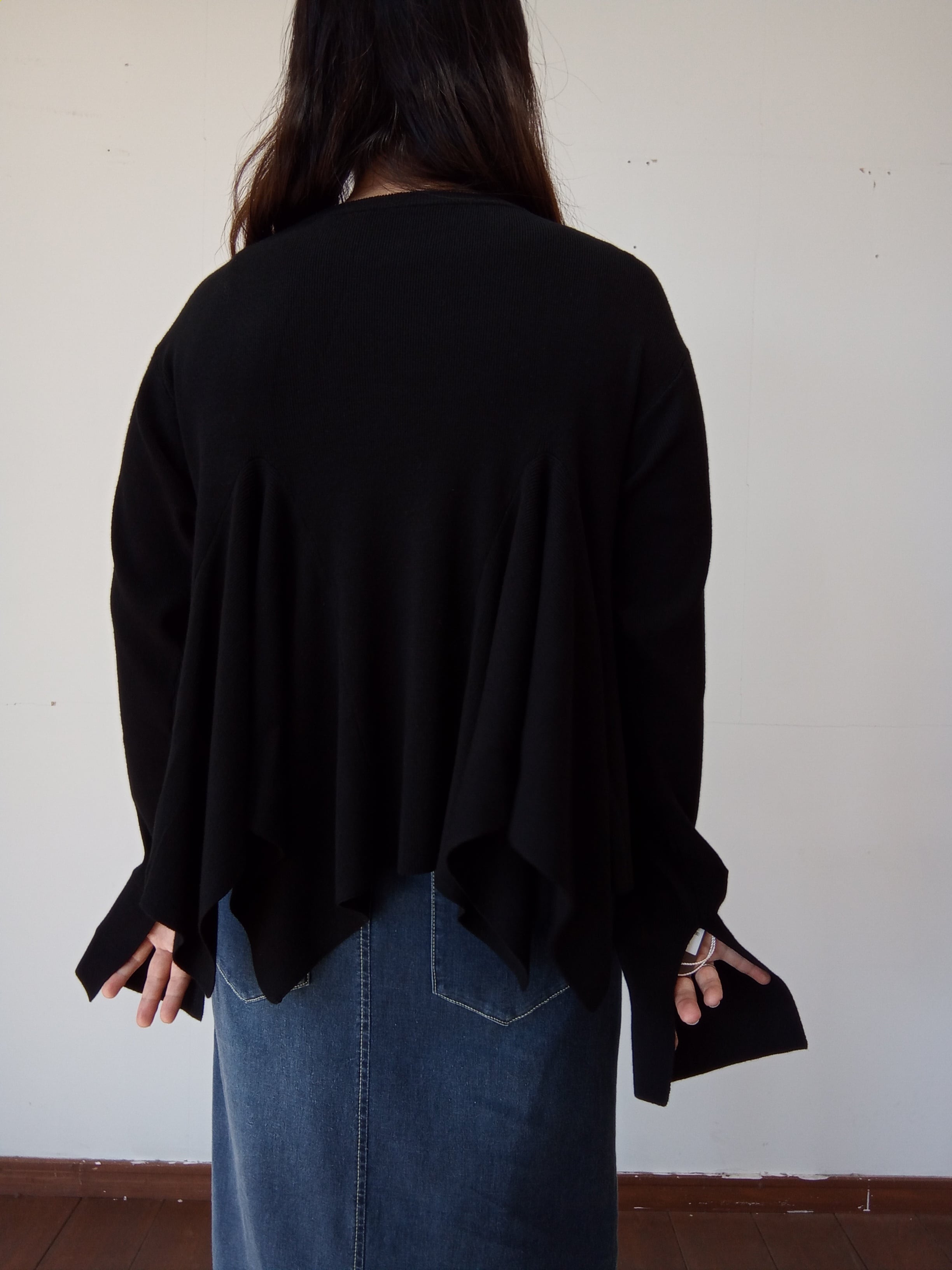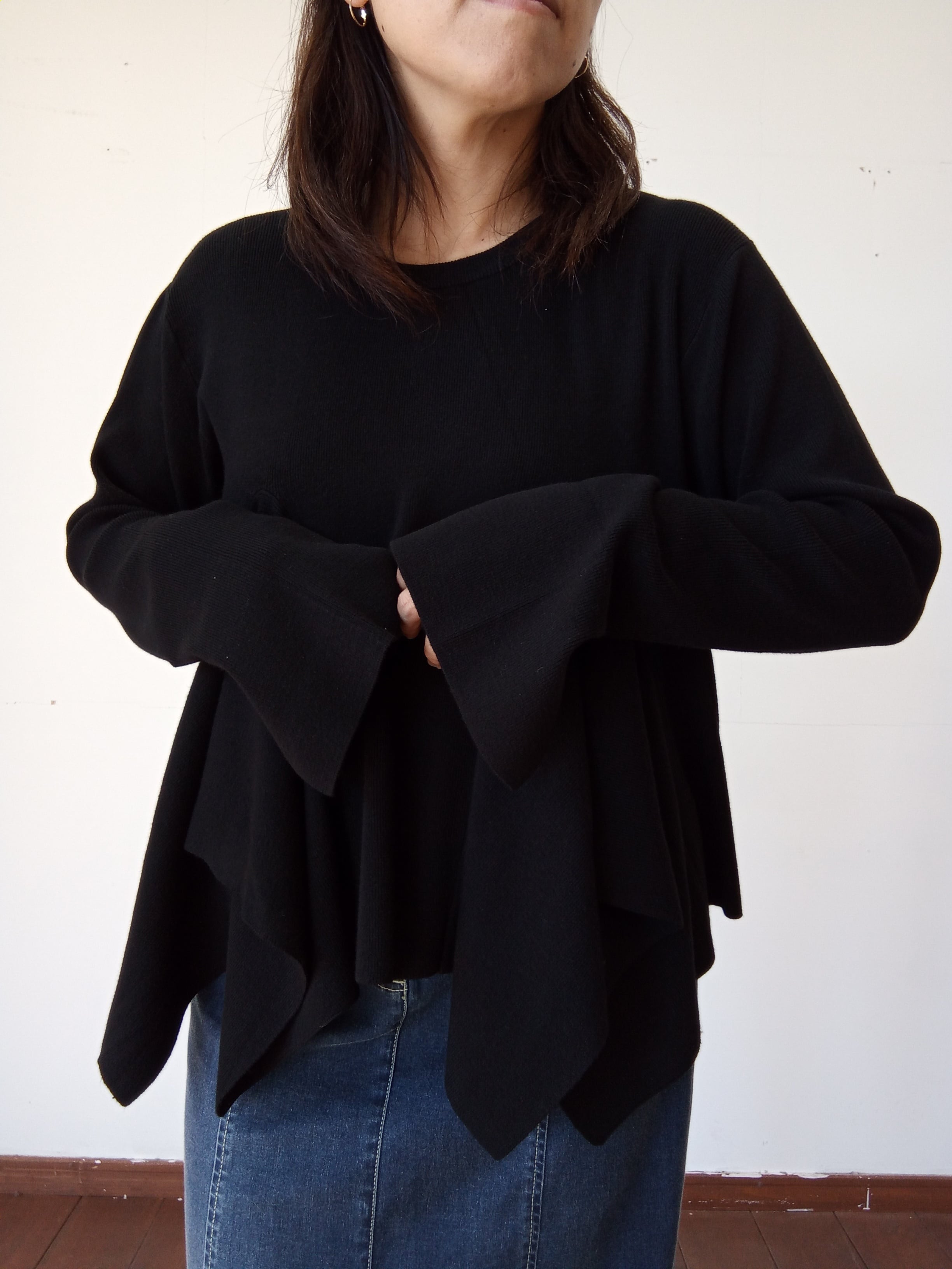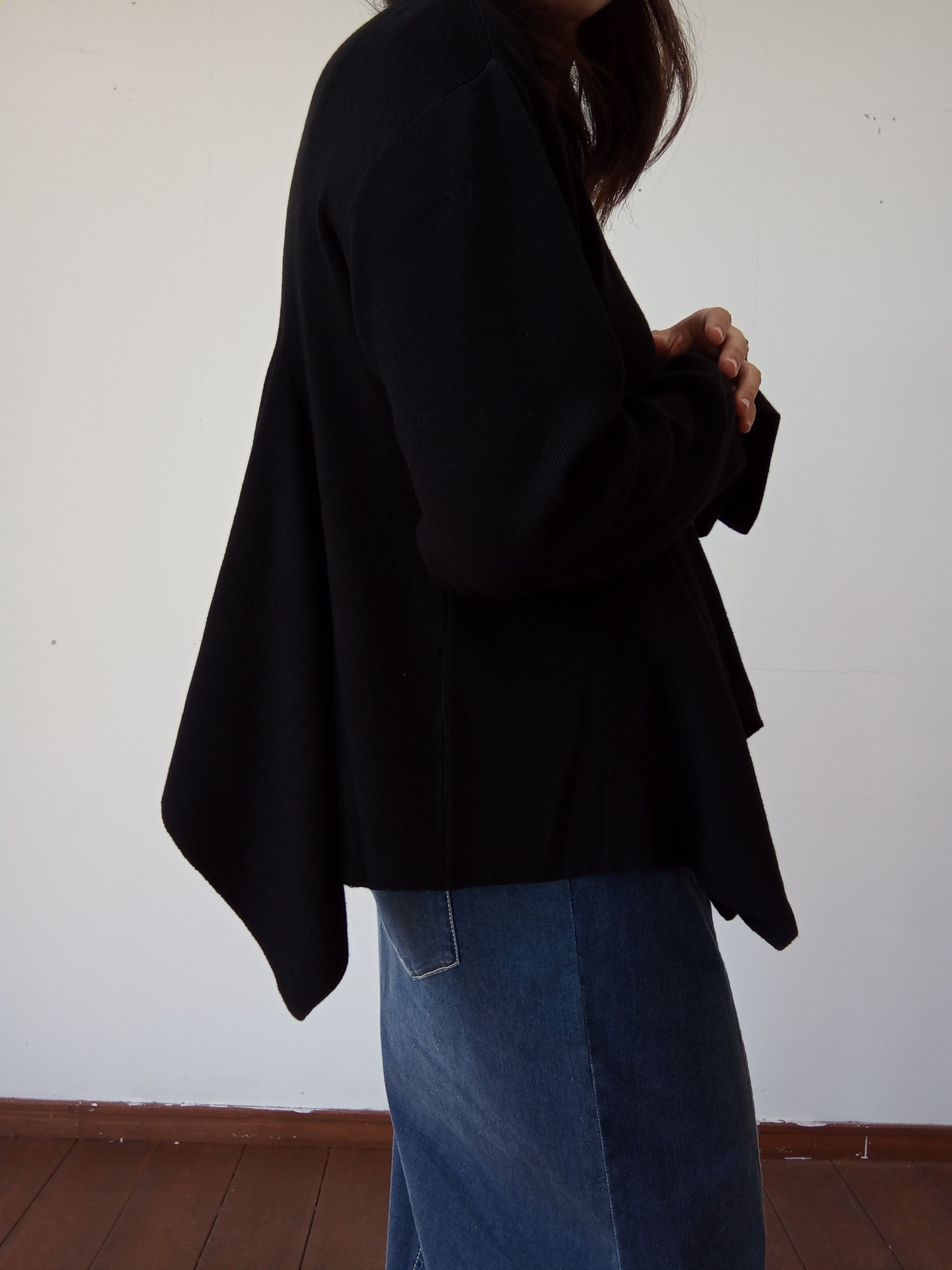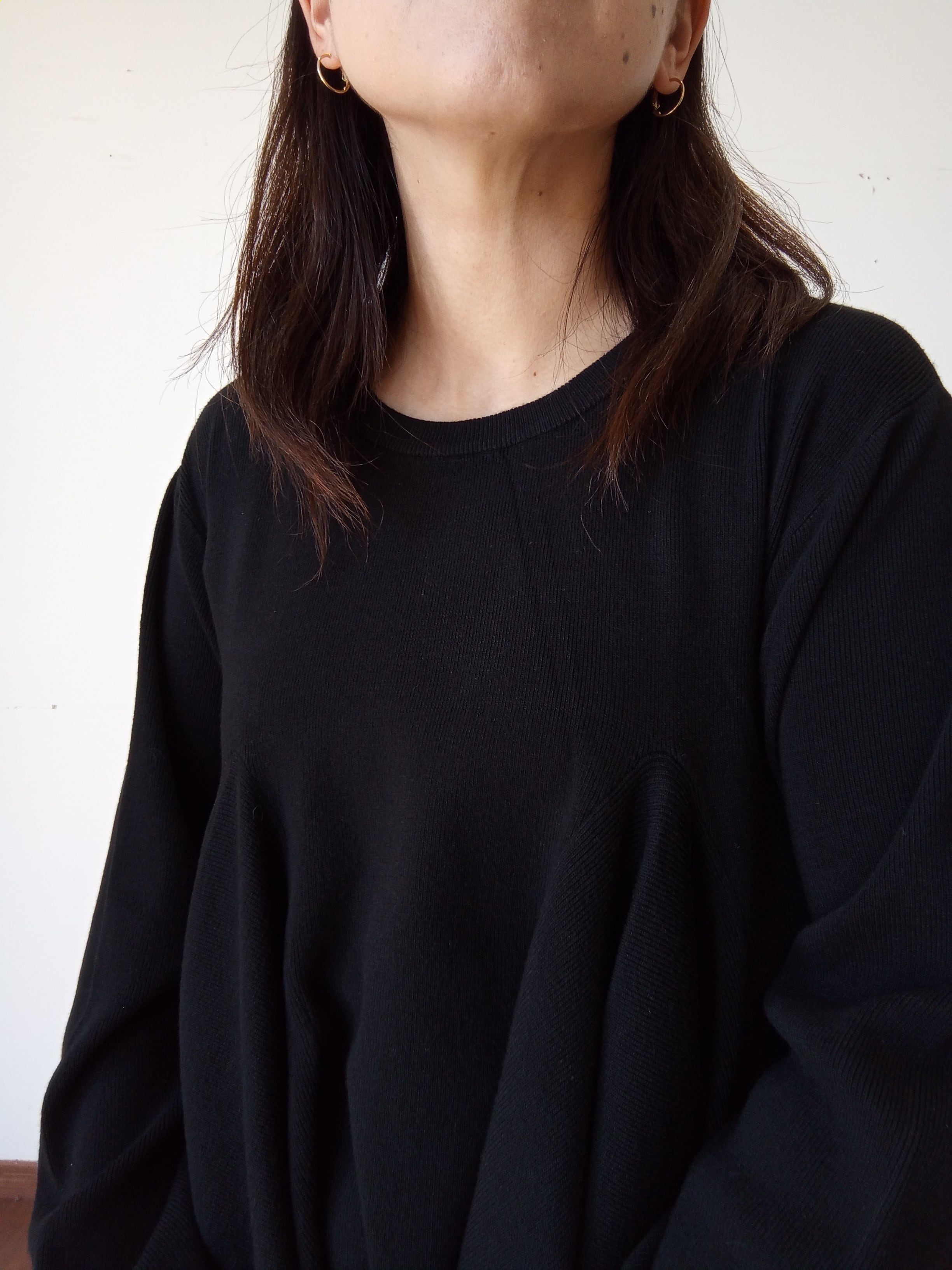 ペタルとはフランス語で花びらという意味で、マチのように三角形ではなく長方形のパーツを挟み込むことで花びらのようなボリューム感のあるディテールを表現しています。落ち感のある素材なので横に膨らまない安心感がありますね。