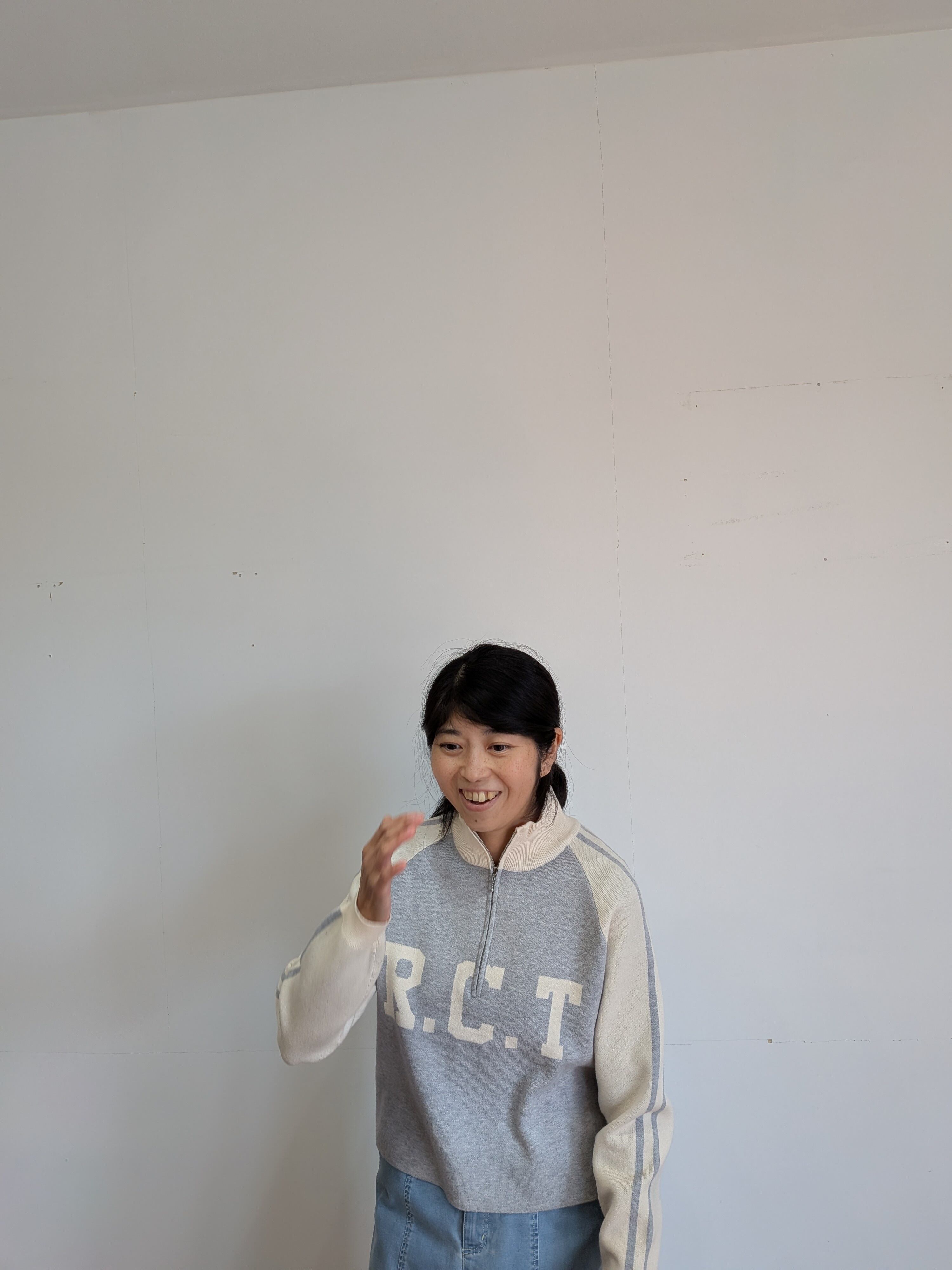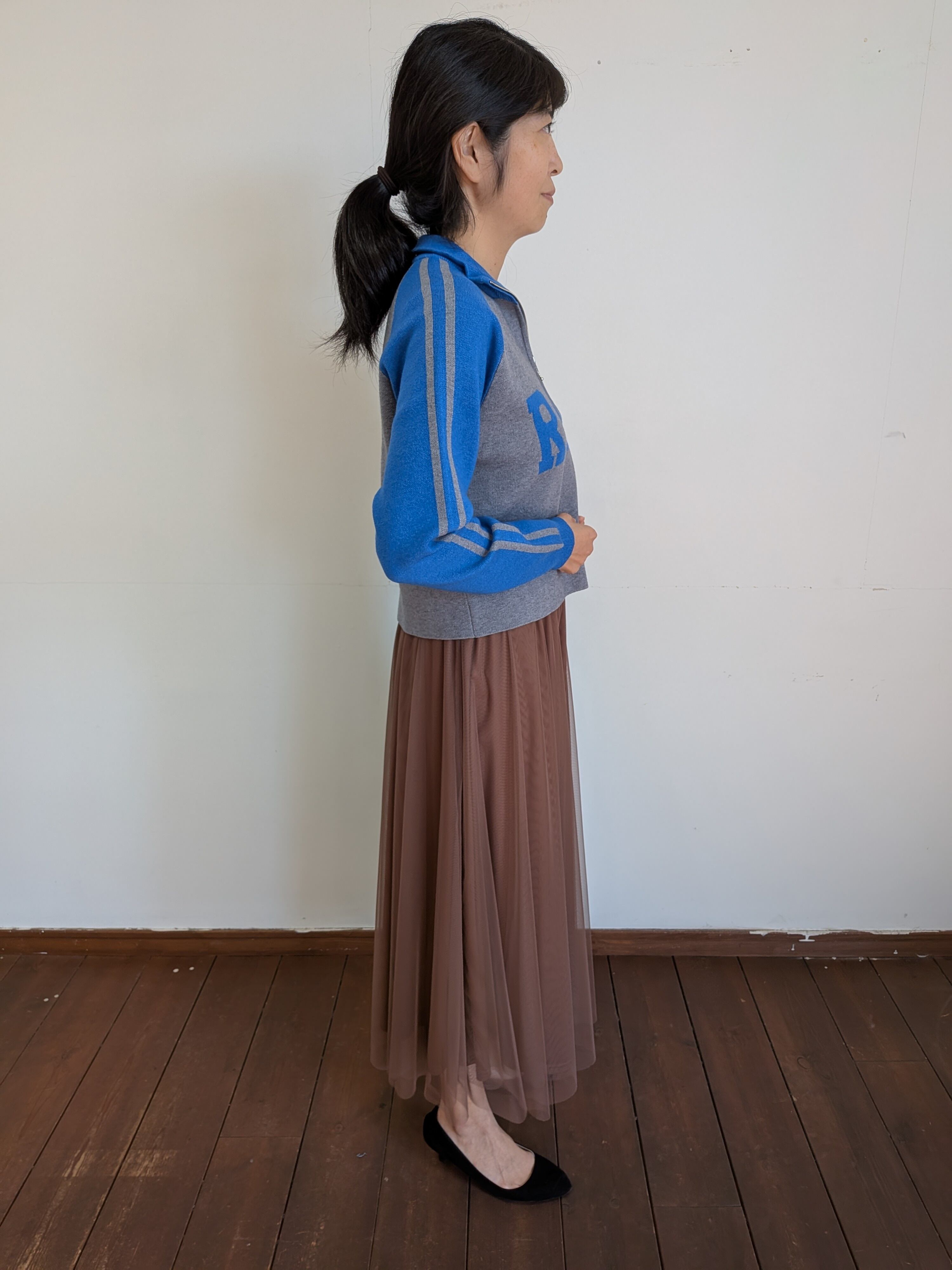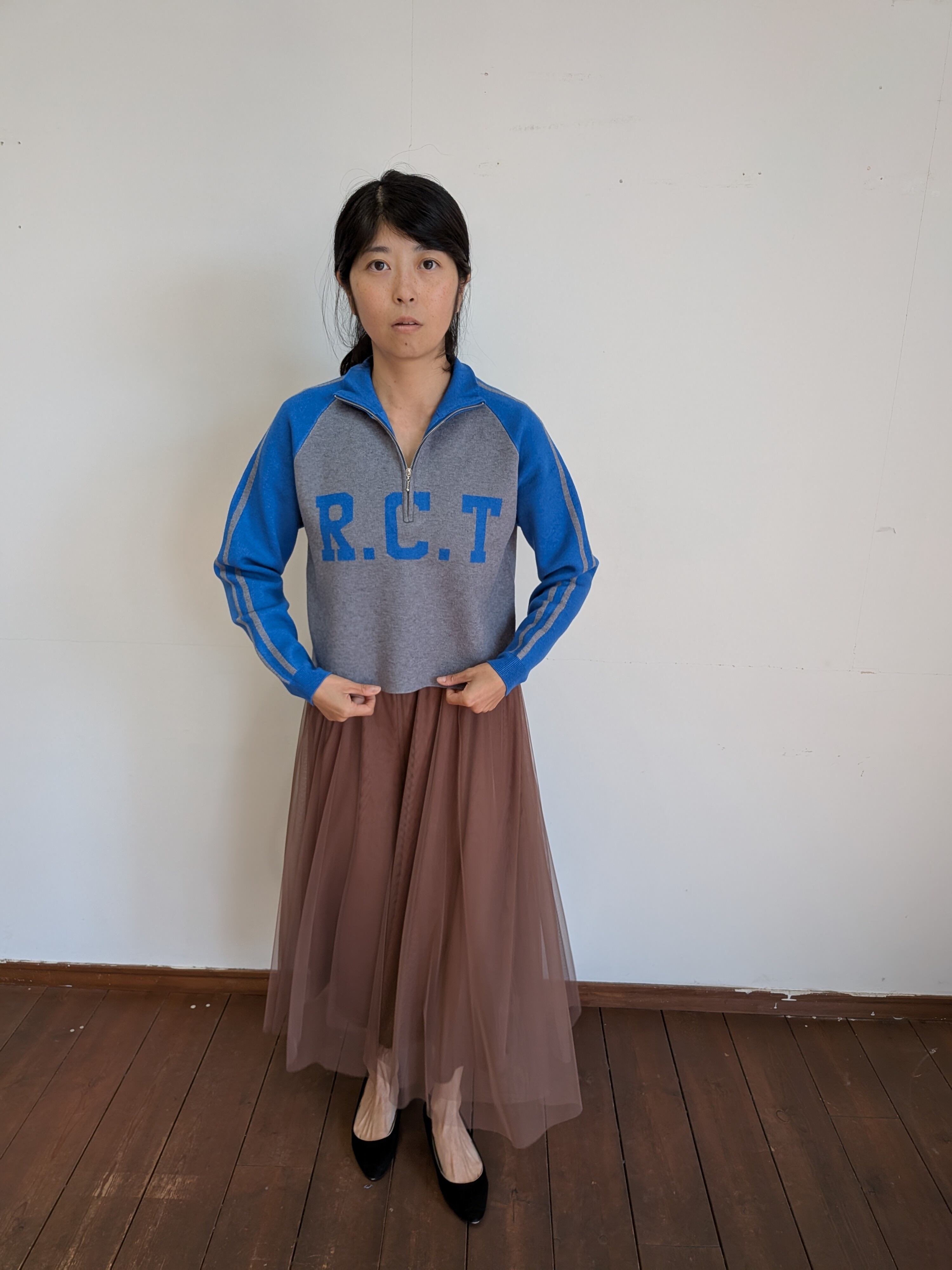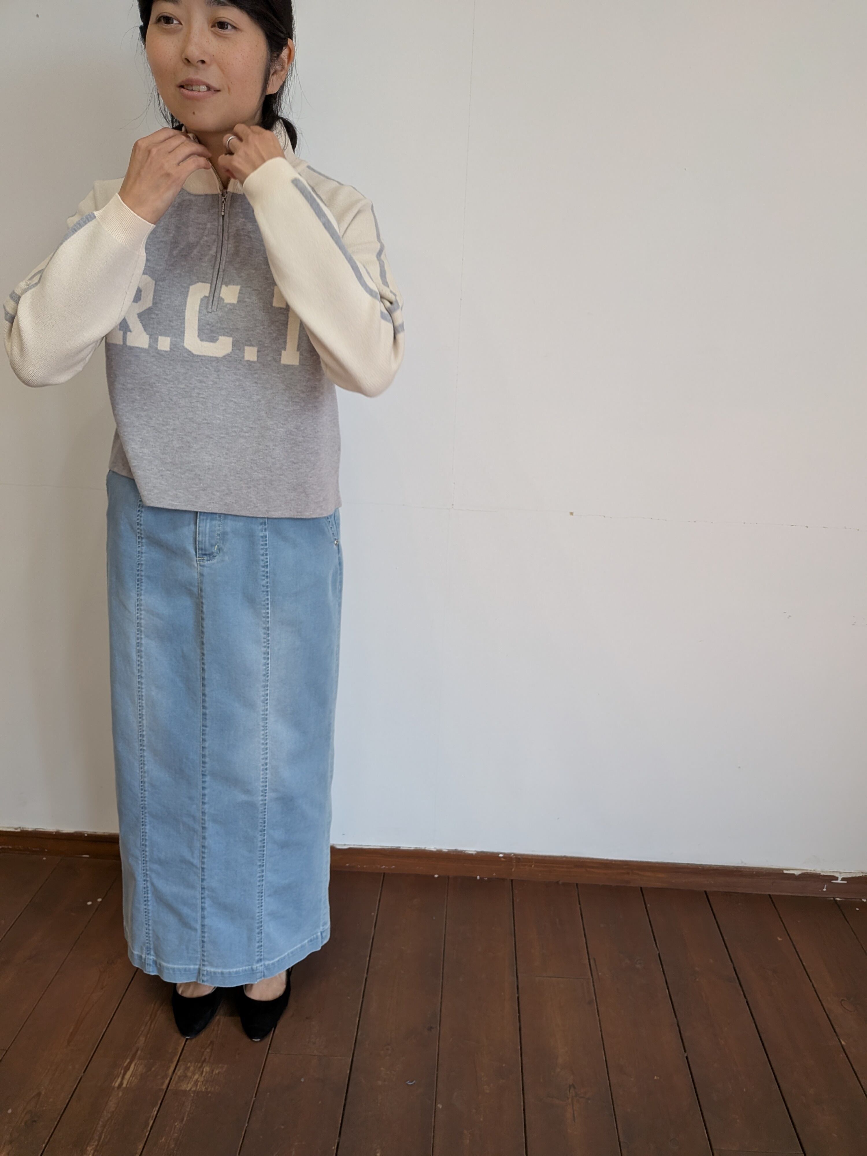 スポーティー感MAXのキャッチーなロゴニットです。肌触りもよく、モチっとした感じのする感触でジャンパースカートなどの上から重ねても可愛いですね。(限定数量)
