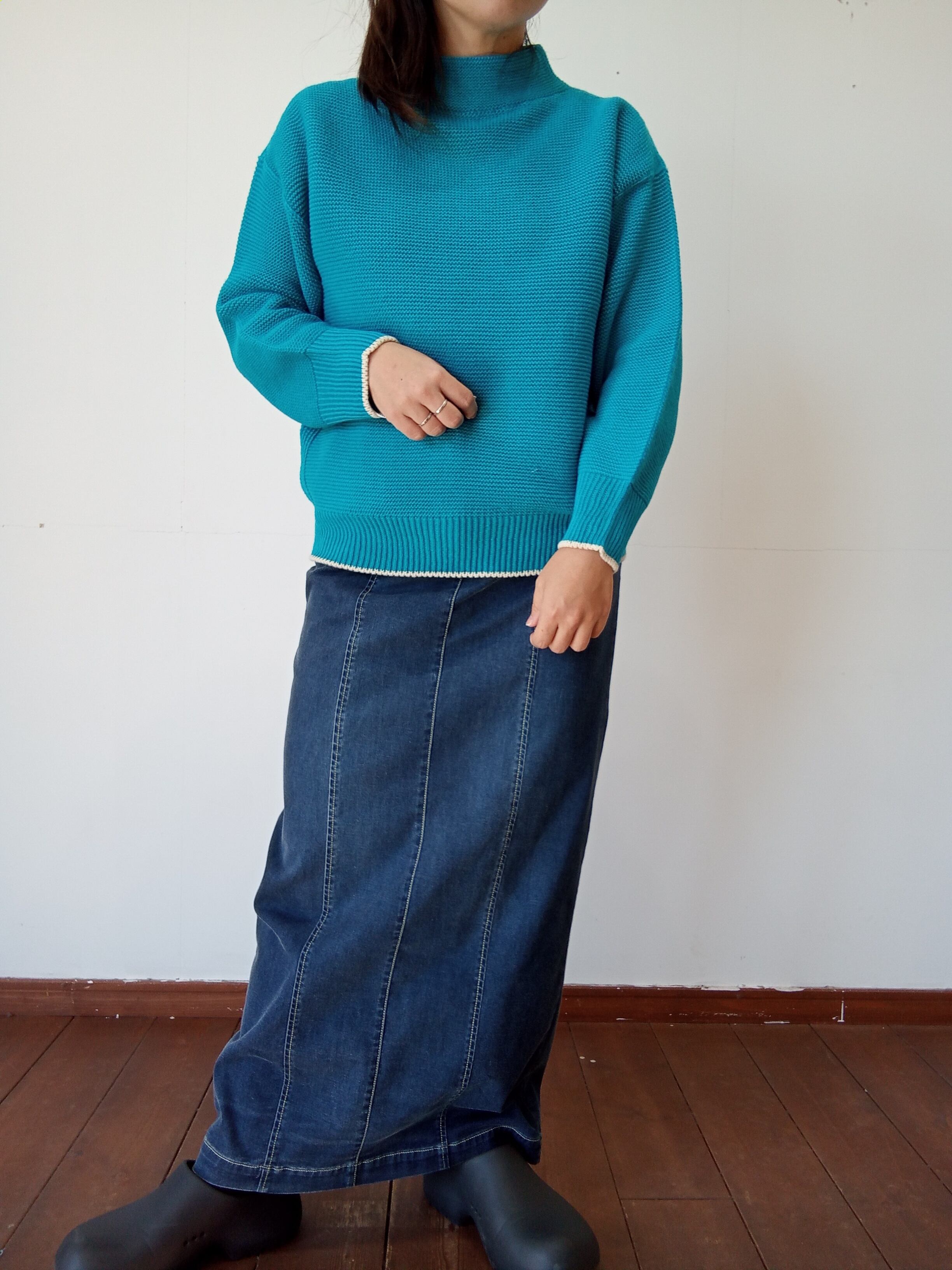 裾配色裏編みプルオーバーニット ayane