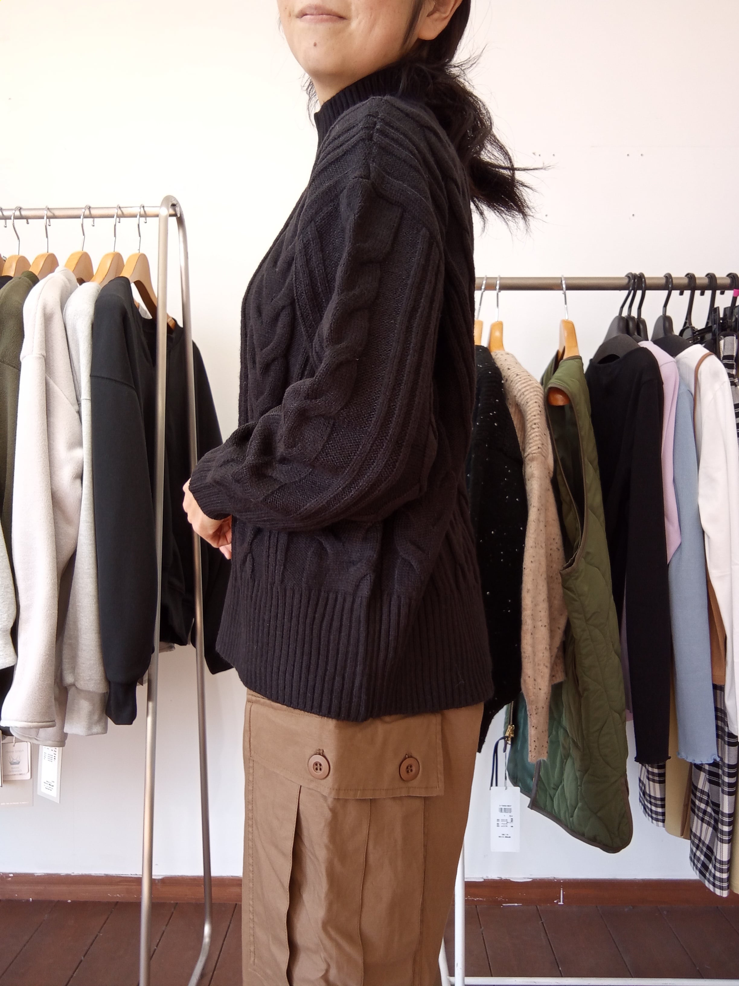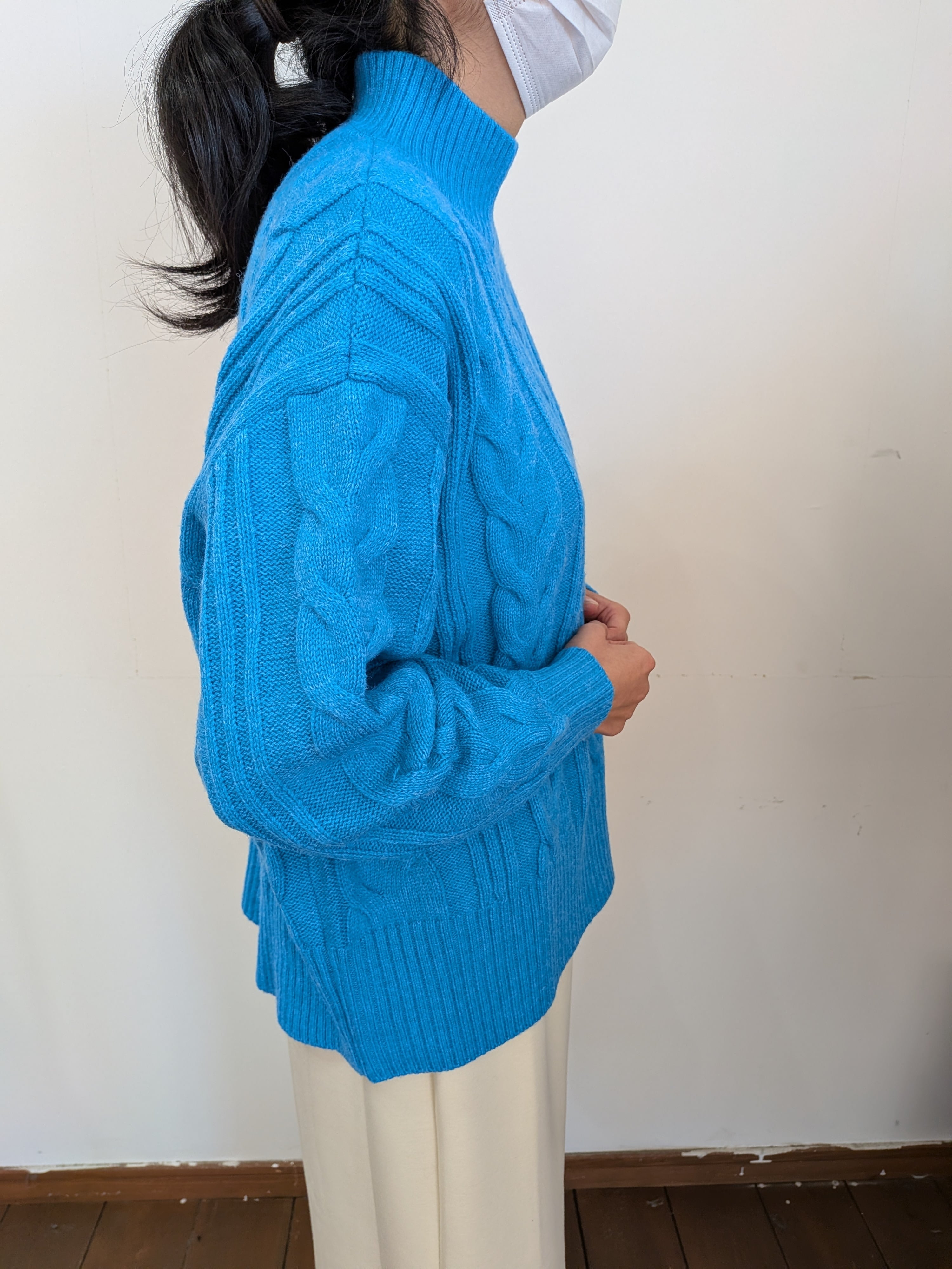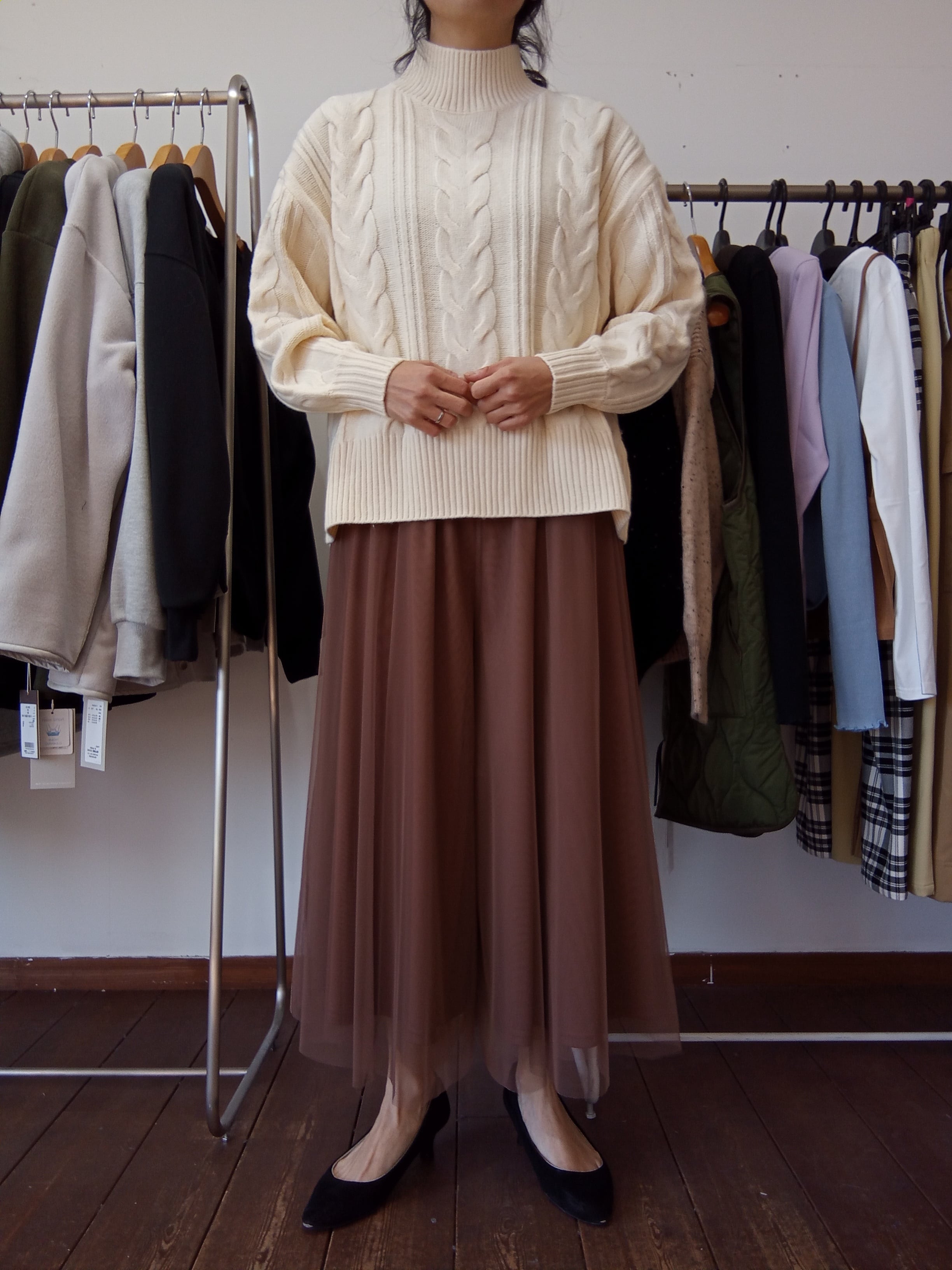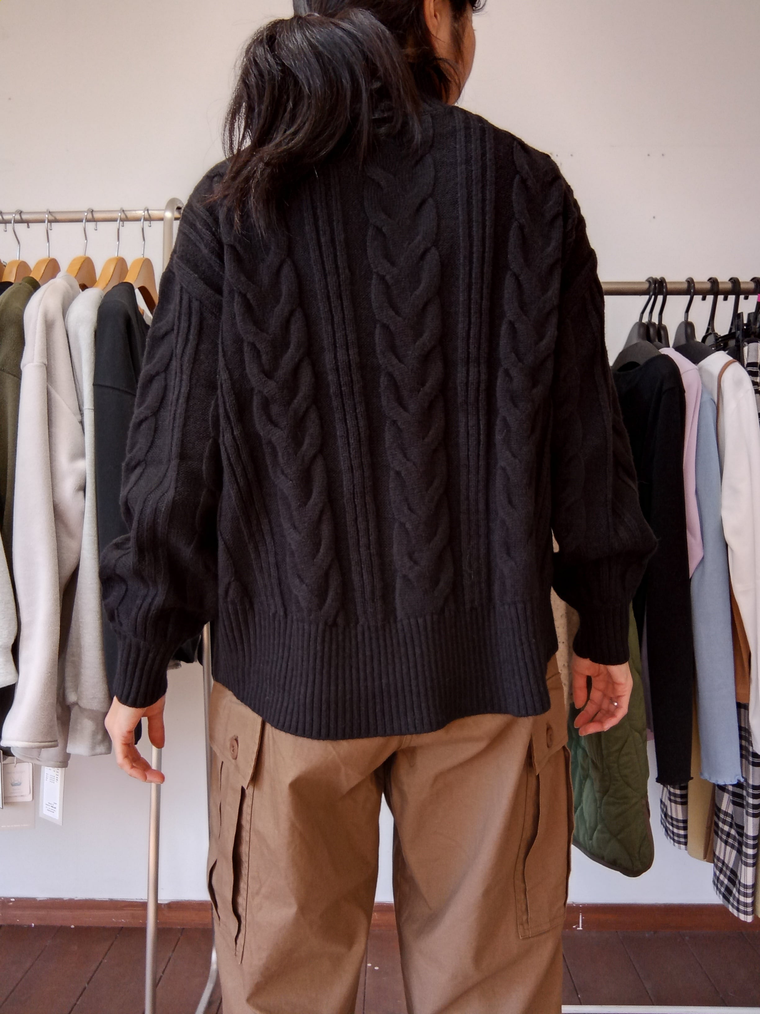 アンチピリングケーブル編みハイネックプルオーバー ドナマリー