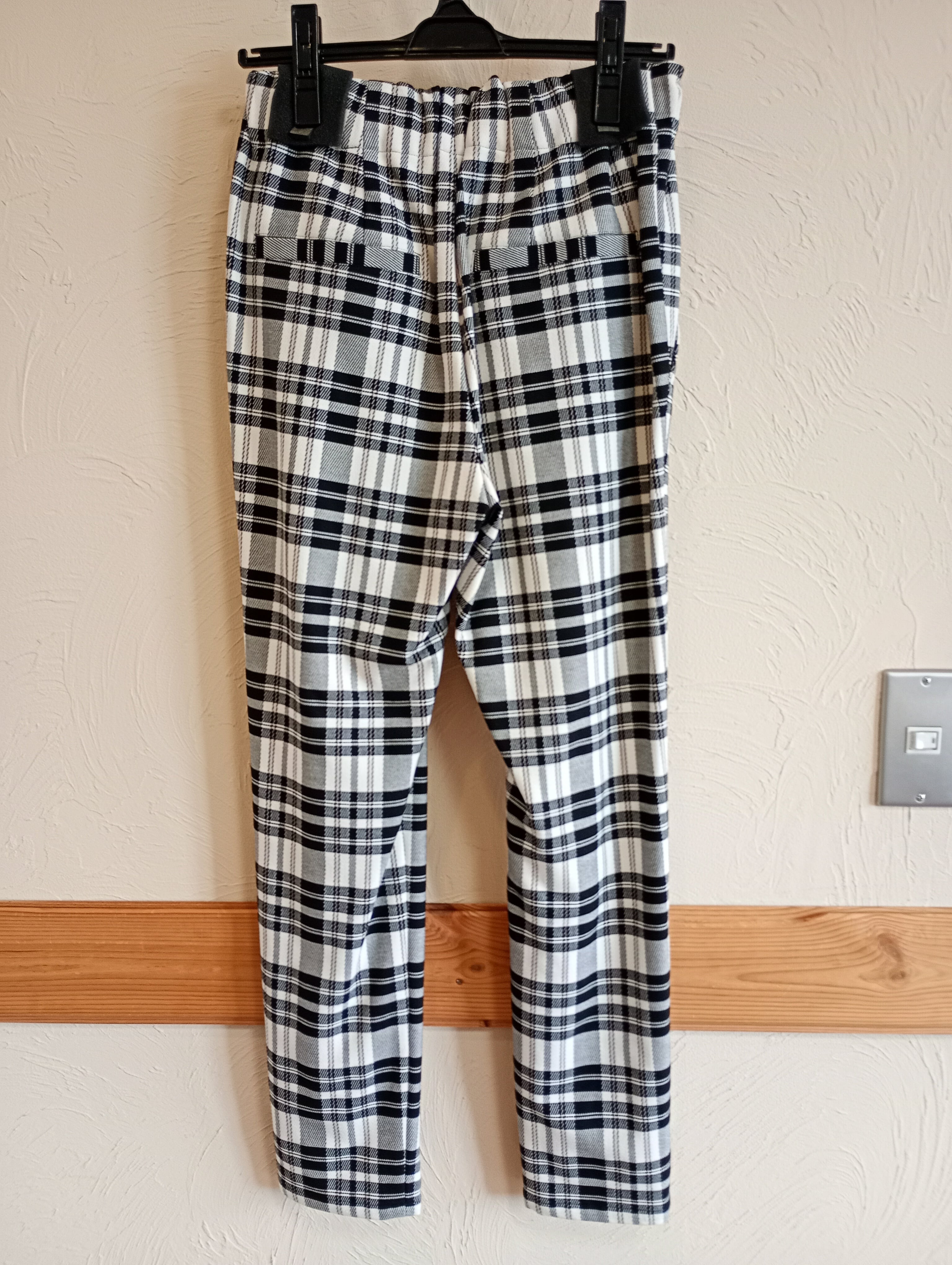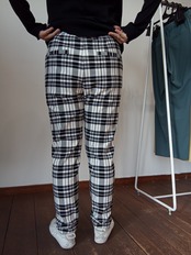 チェック&ストライプテーパードパンツ ホワイトチェック trois