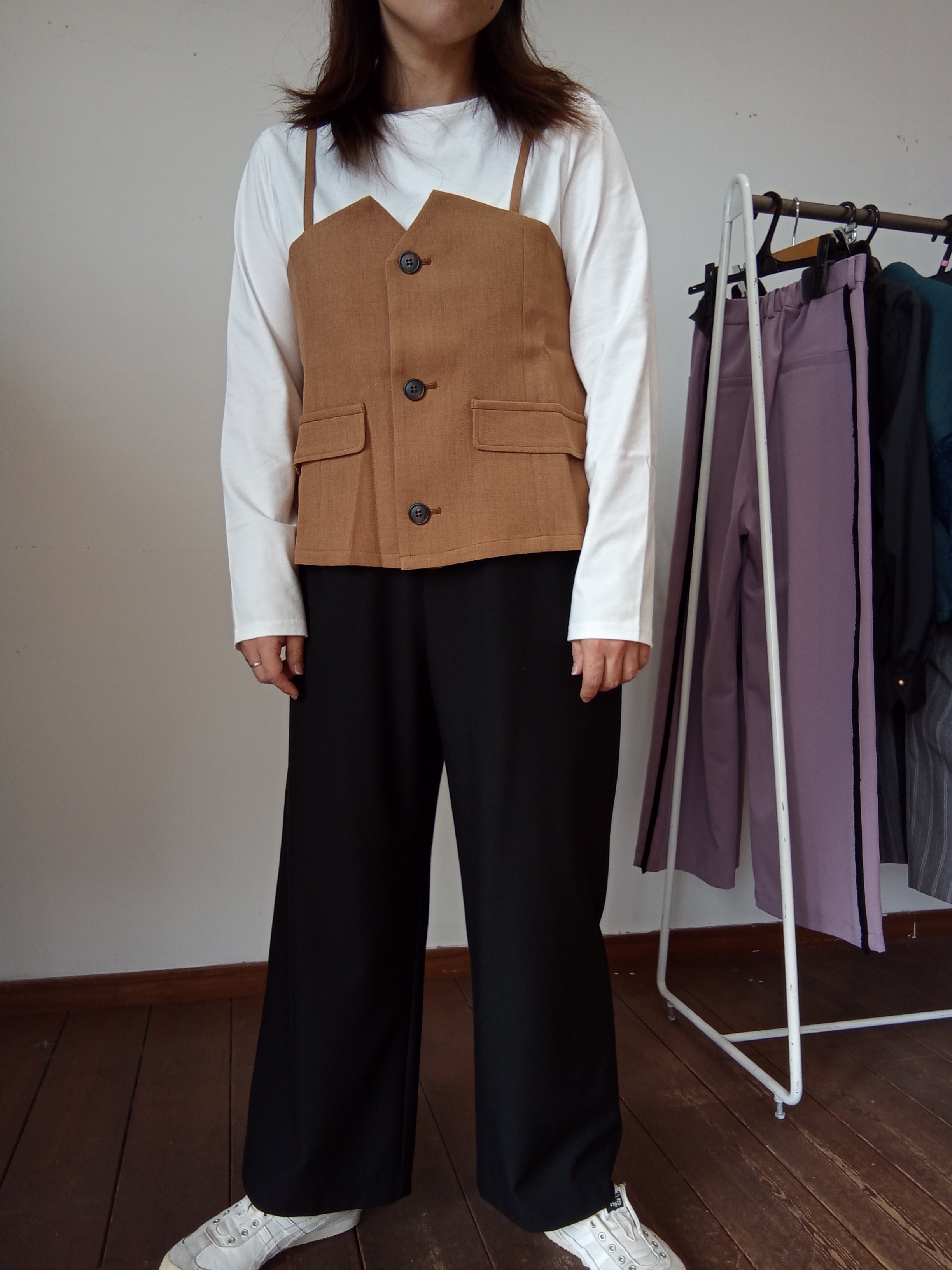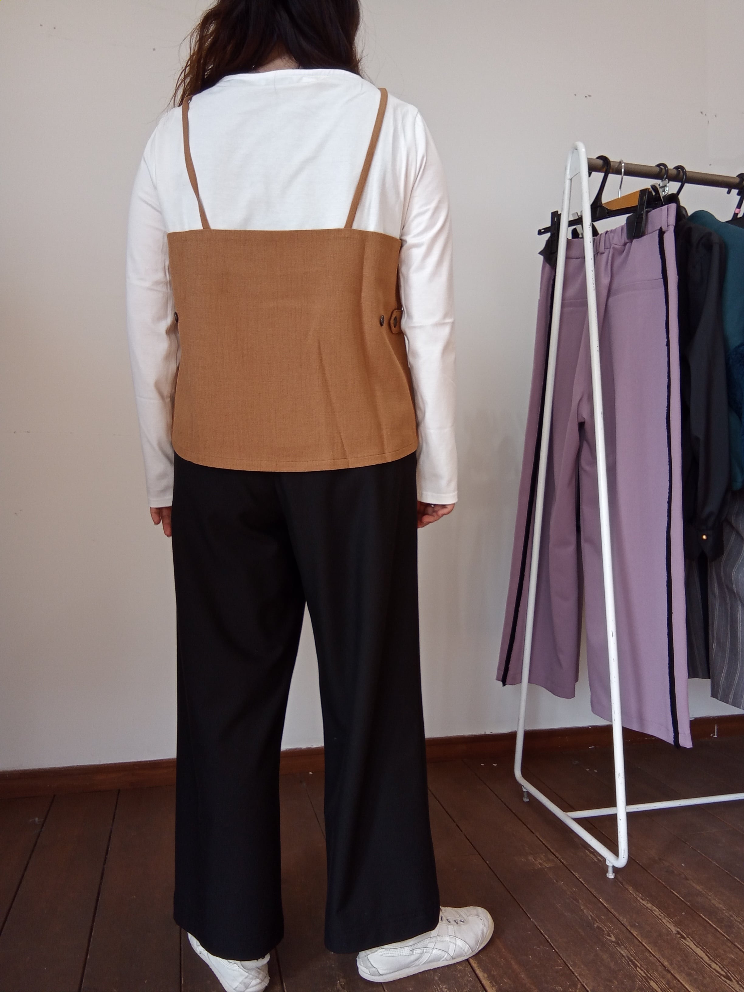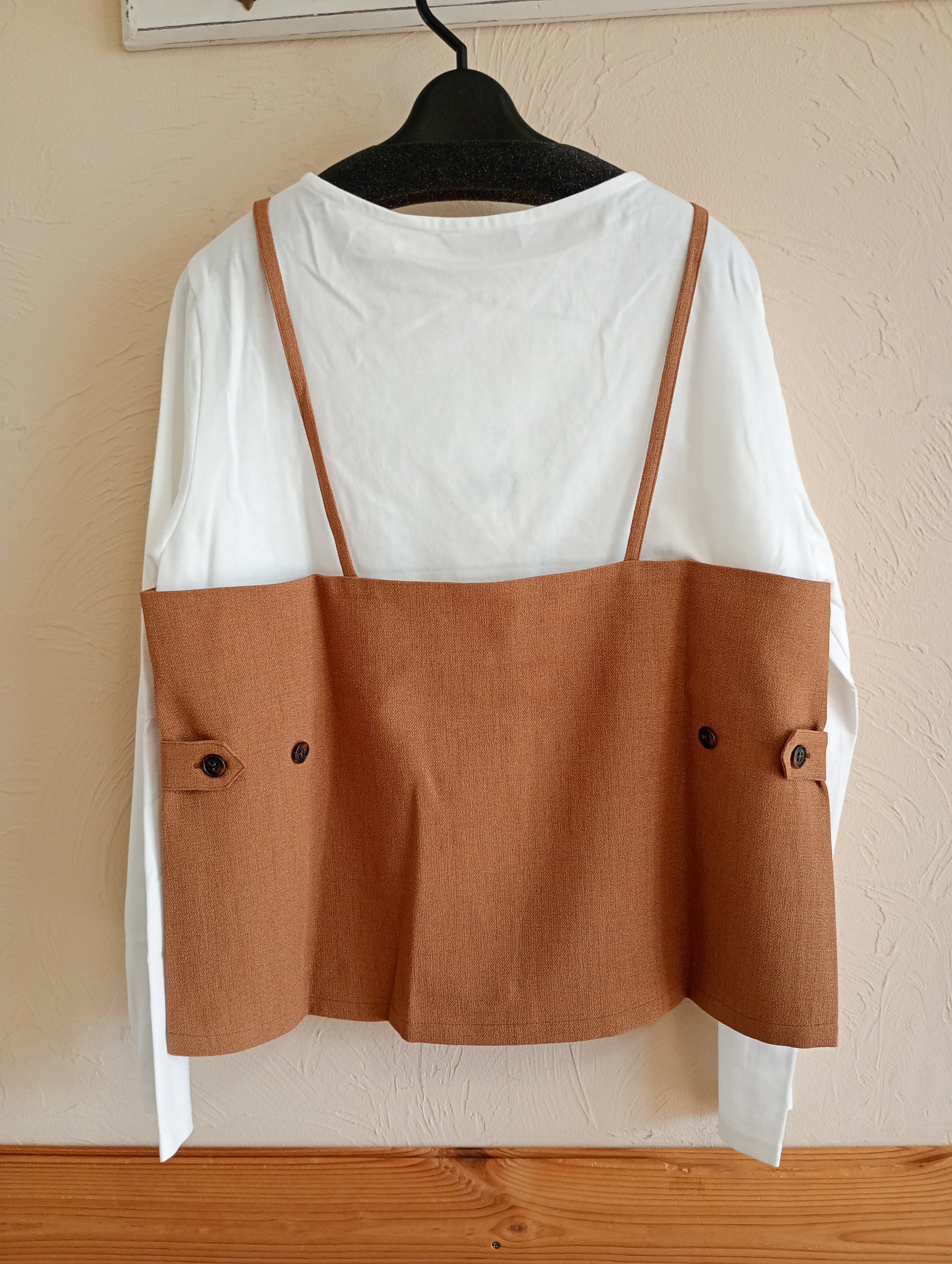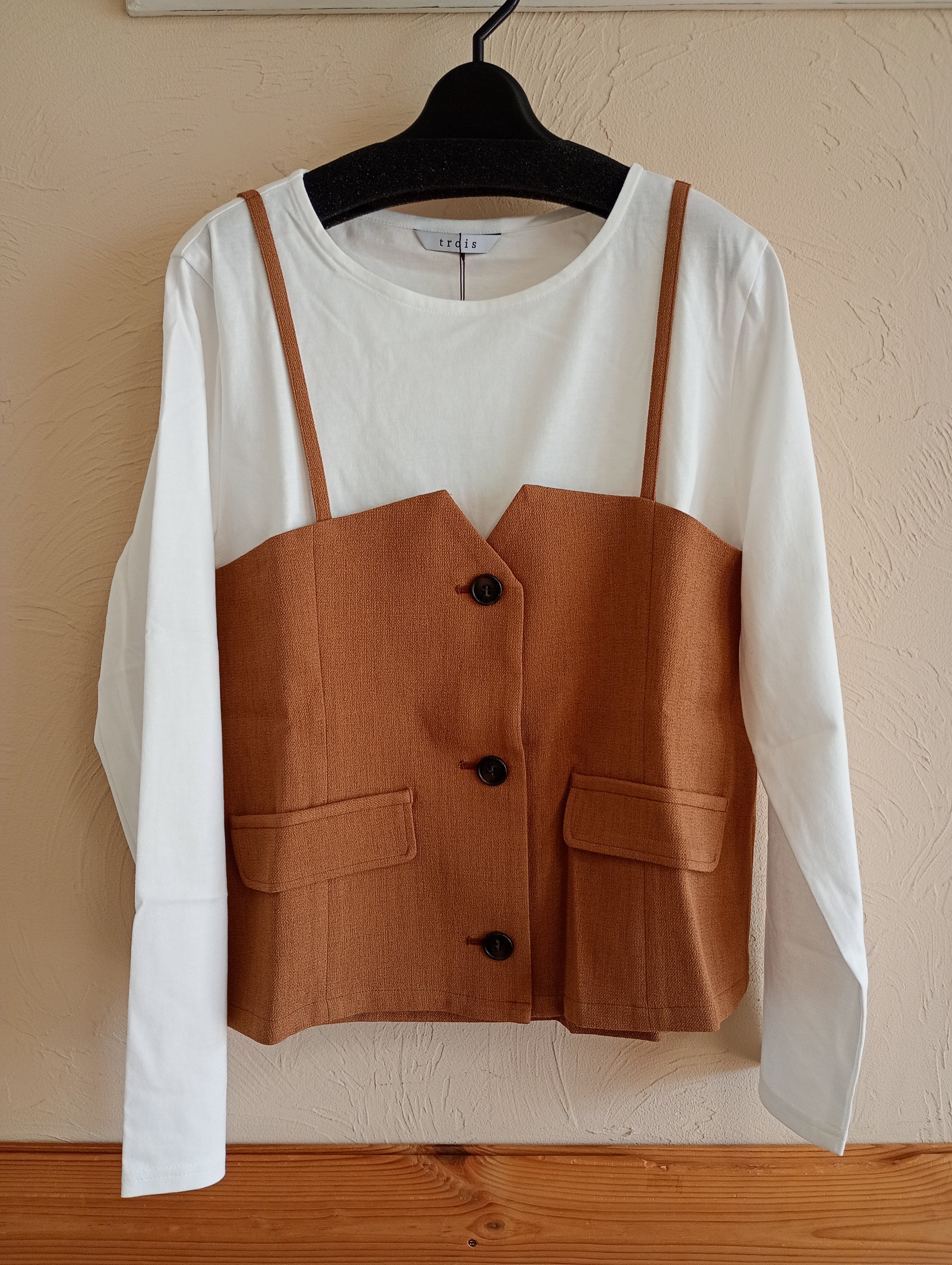 LINOTECH×シルケット天竺ビスチェレイヤードプルオーバー キャメル trois