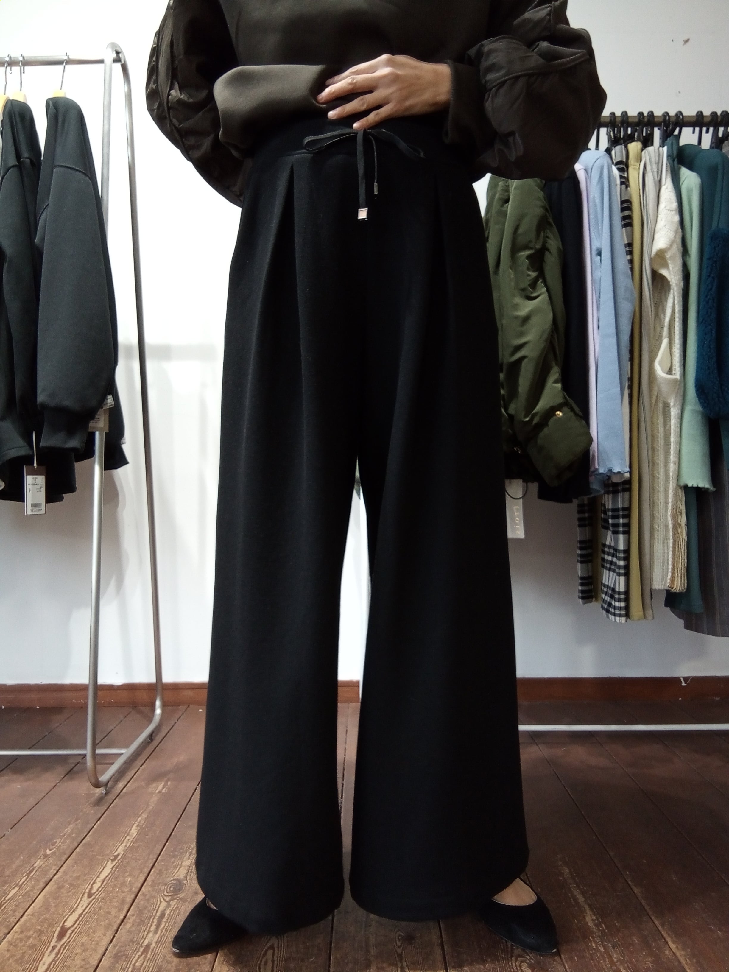 注目の新素材、ウォーム感のあるモチモチ系の素材です。ちょうどいい肉感と気持ちの良い肌触りの高級生地を使った、ゆったりしたワイドパンツです。