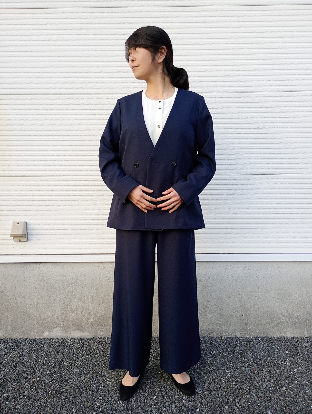 上品な表情があり、きれいめな印象を保ちながら、しなやかでやわらかな風合いのソフィーツイルストレッチ生地。