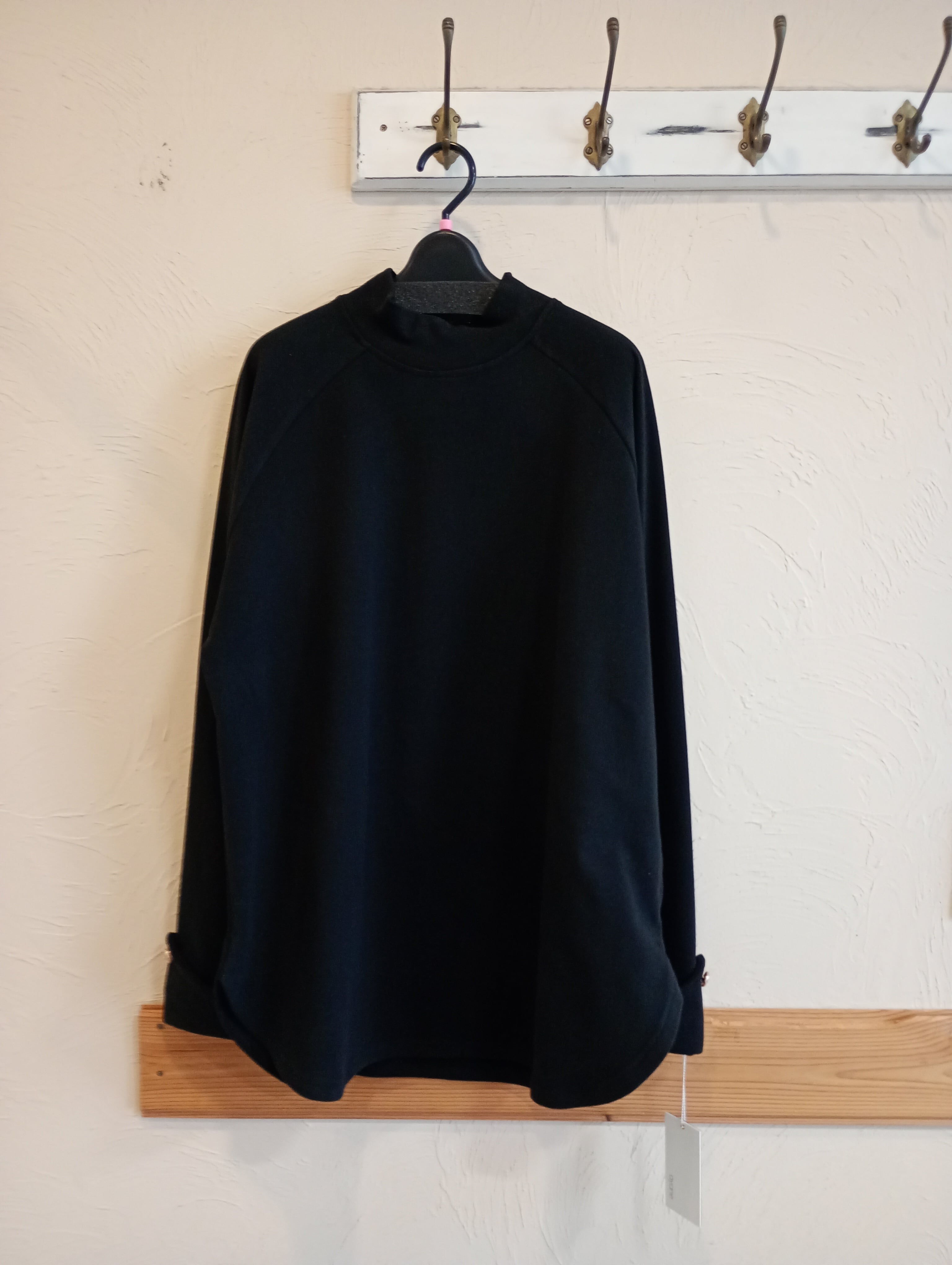 両面起毛のあったかいロンTです。お腹周りも安心なデザインなので暖かく快適なインナーとして活躍しそうです。