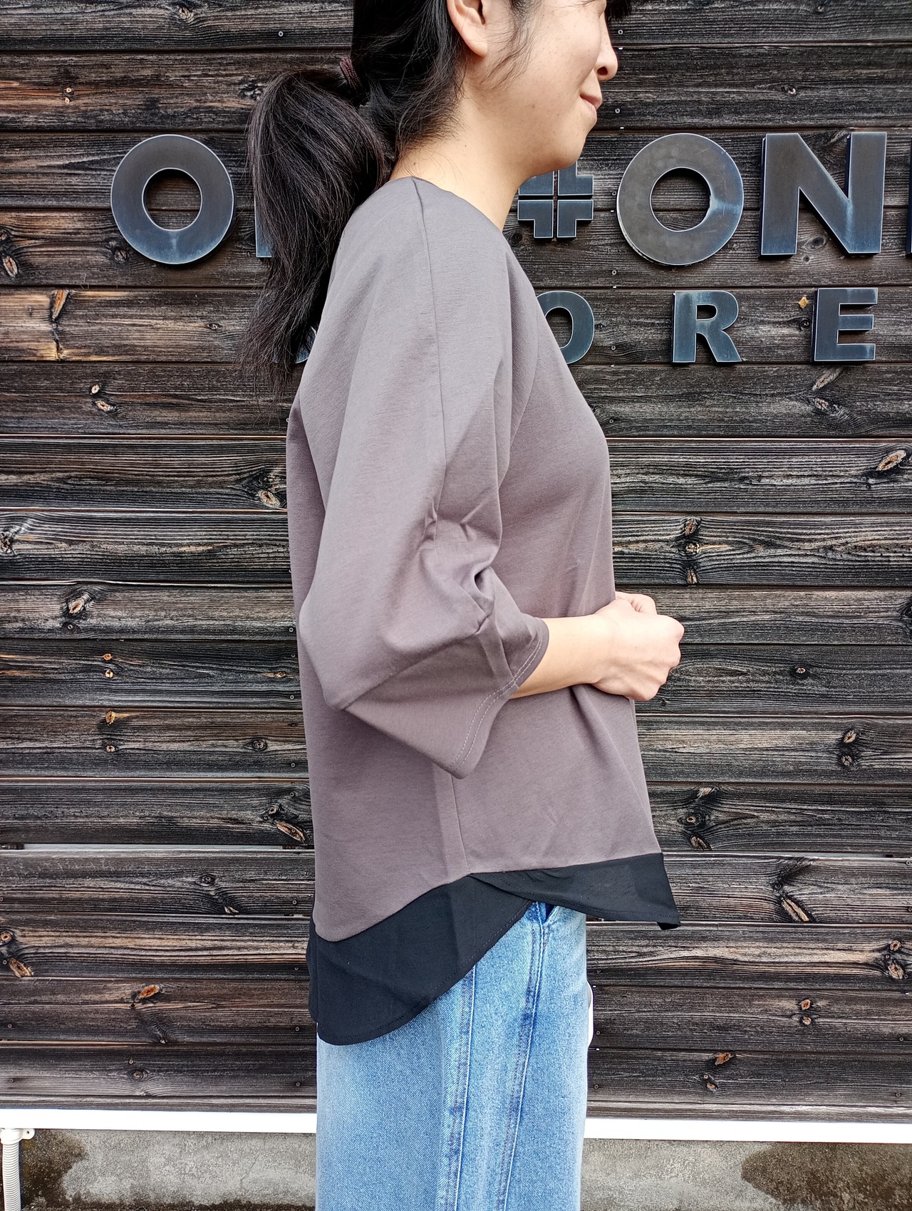 シルキーベアポンチ7分袖ワイドスリーブプルオーバー ダークグレー