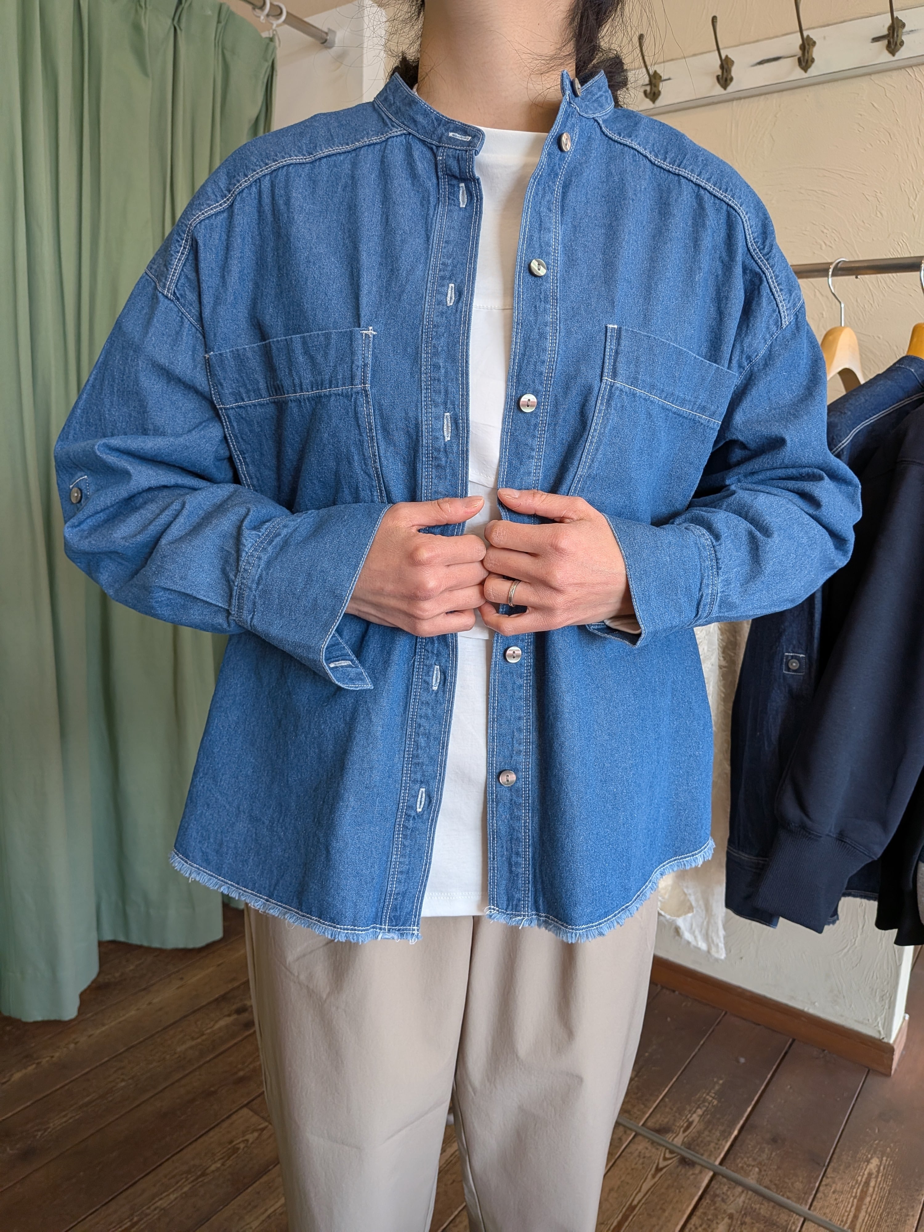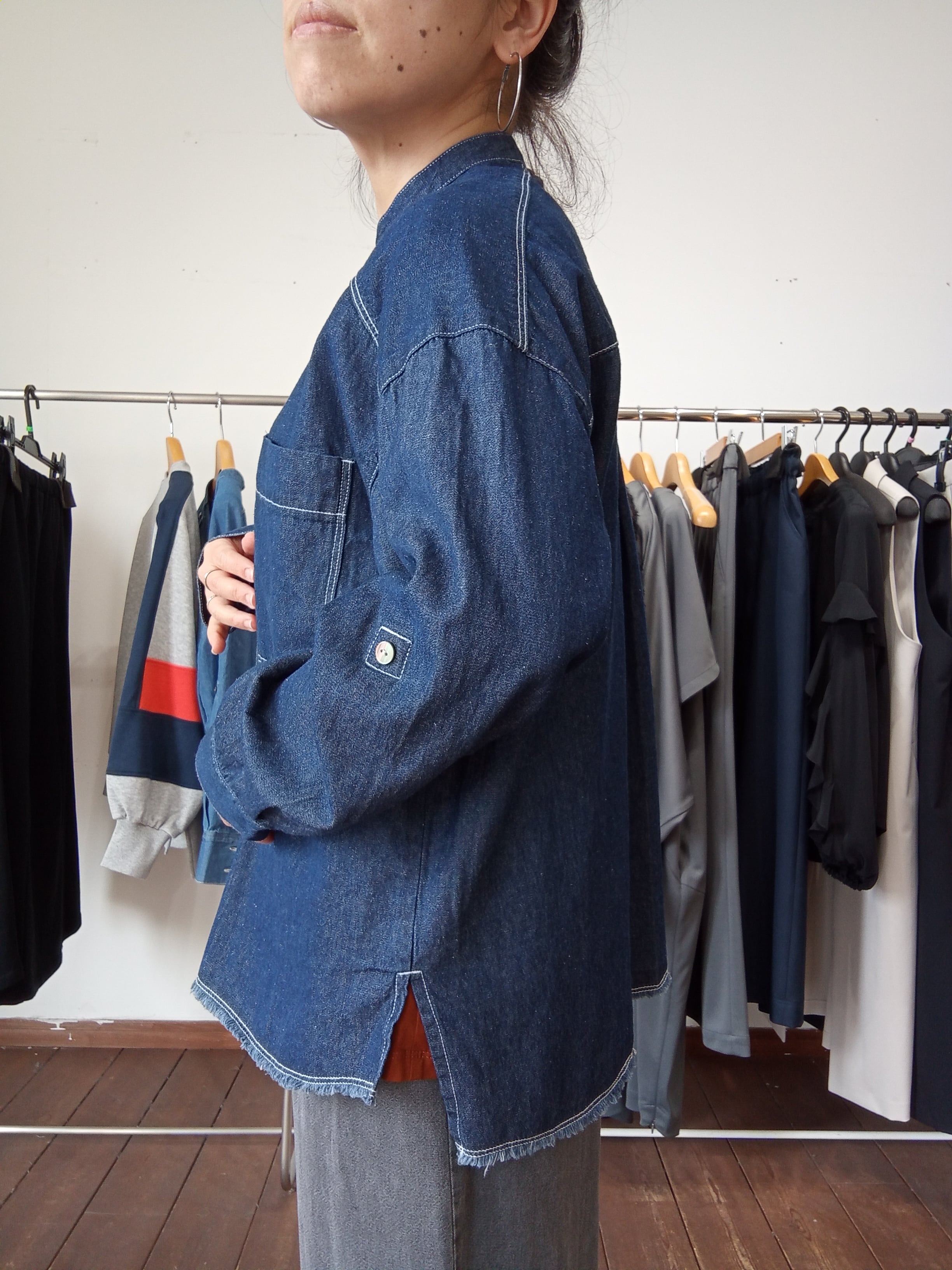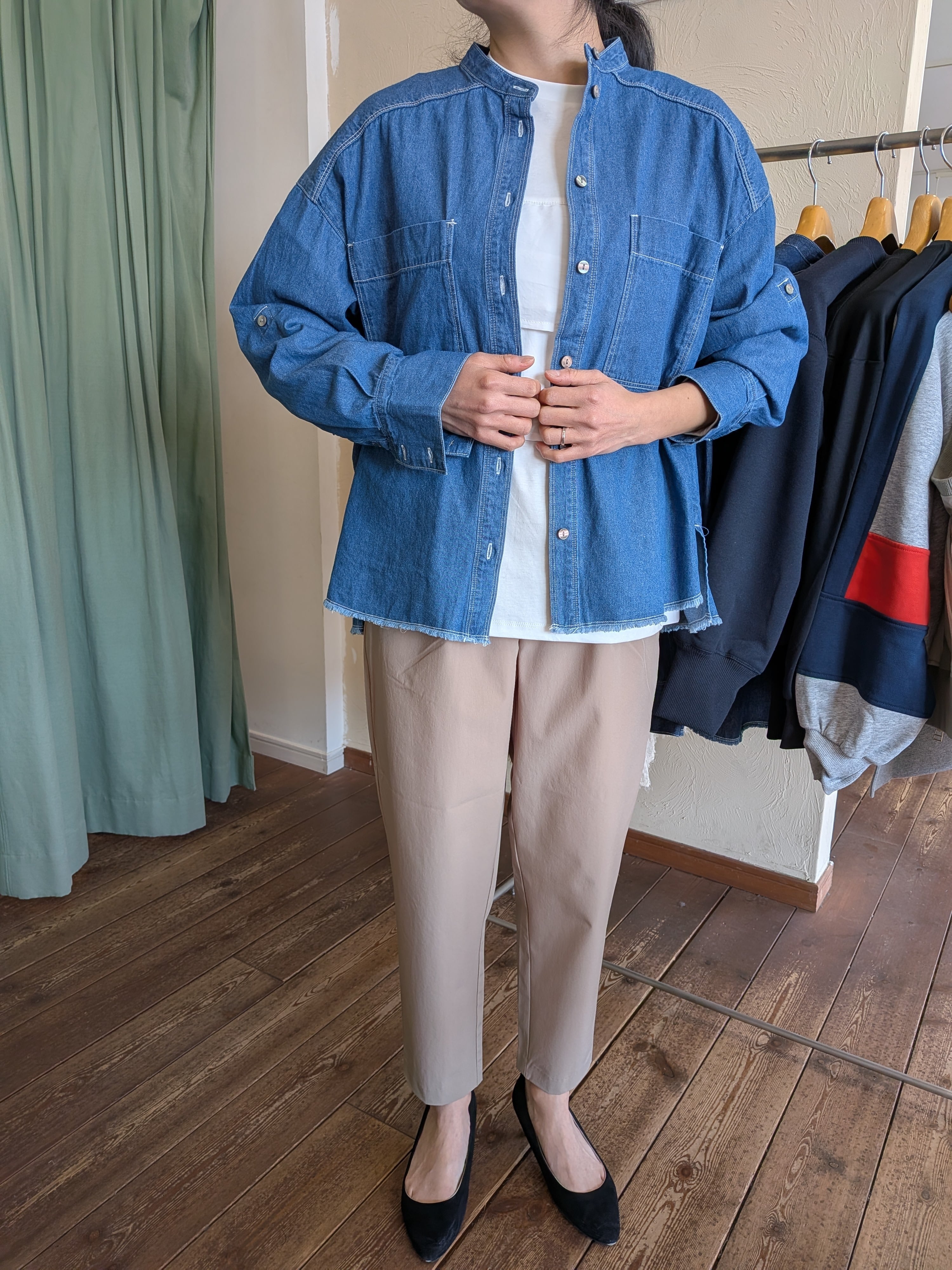 ソフトで着心地の良い風合いで、デニム特有の硬い印象はなく、柔らかい印象に仕上げています。