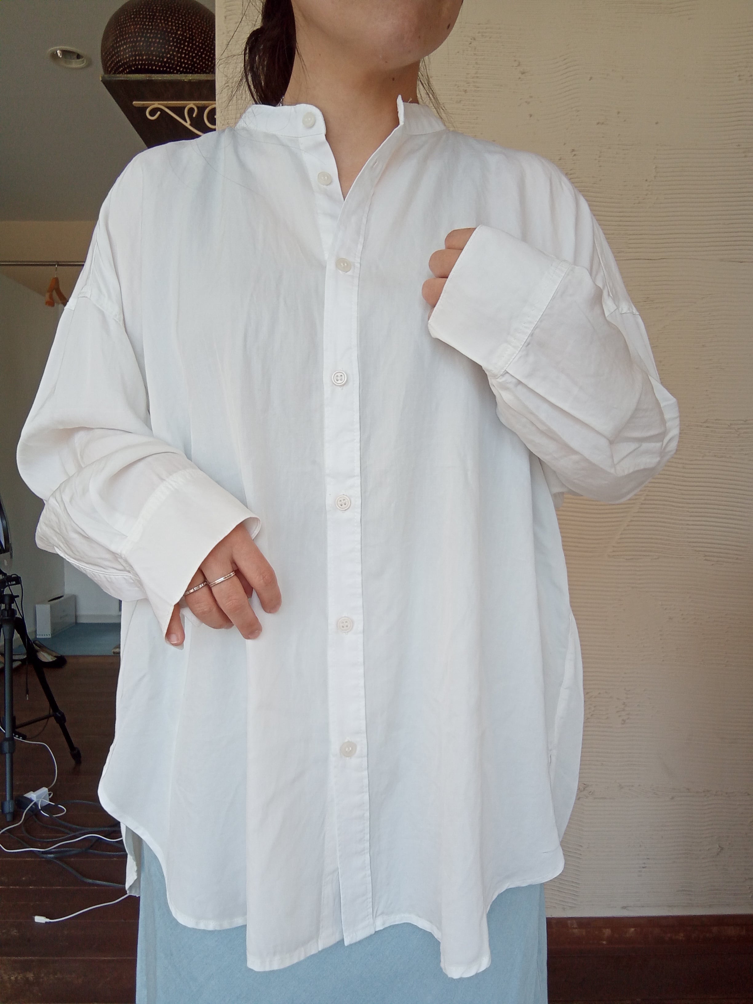 4.5ozテンセルデニムバックギャザーシャツ hunch