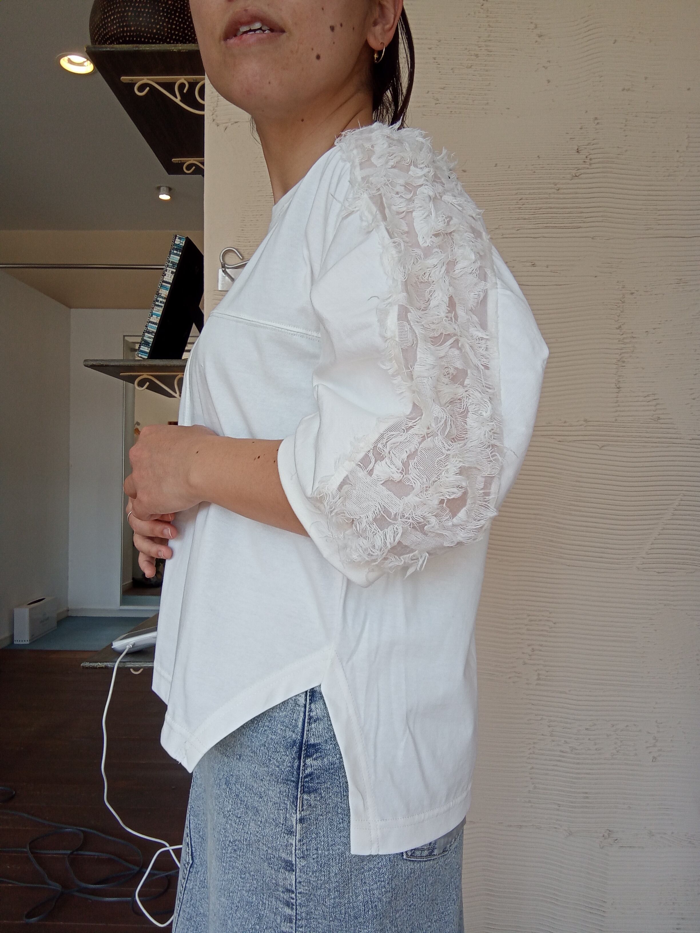 マーセライズ天竺&ジャガードデザインフリンジプルオーバー trois