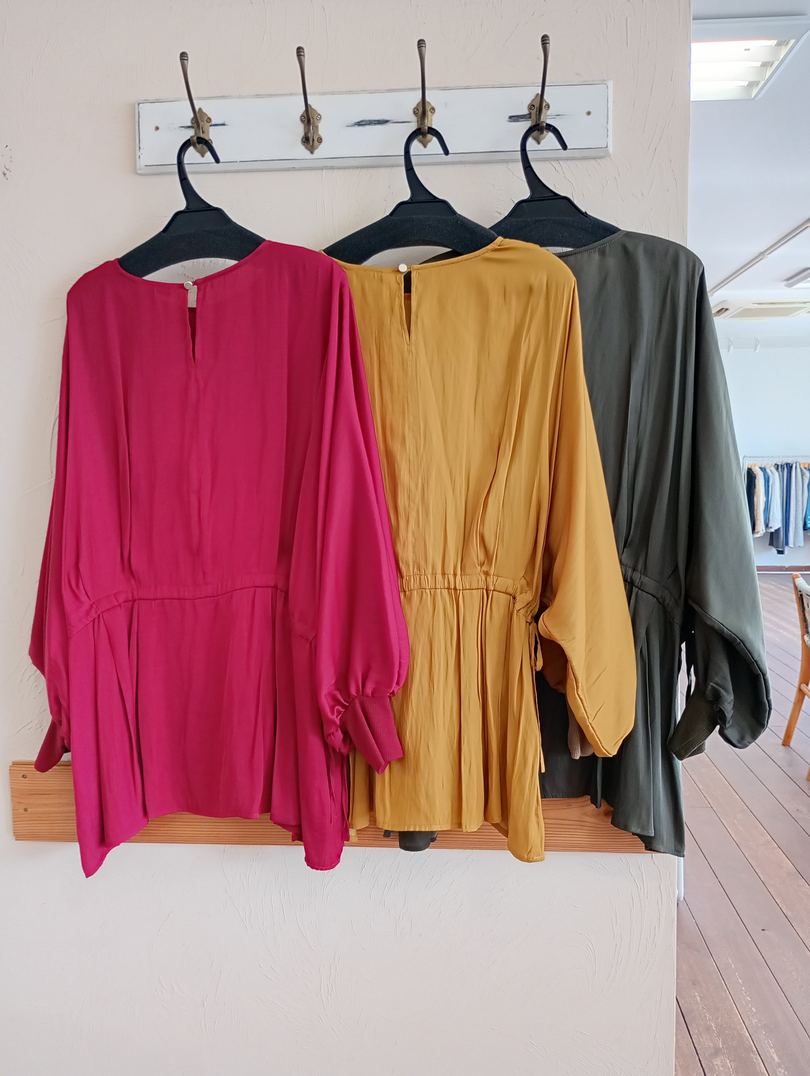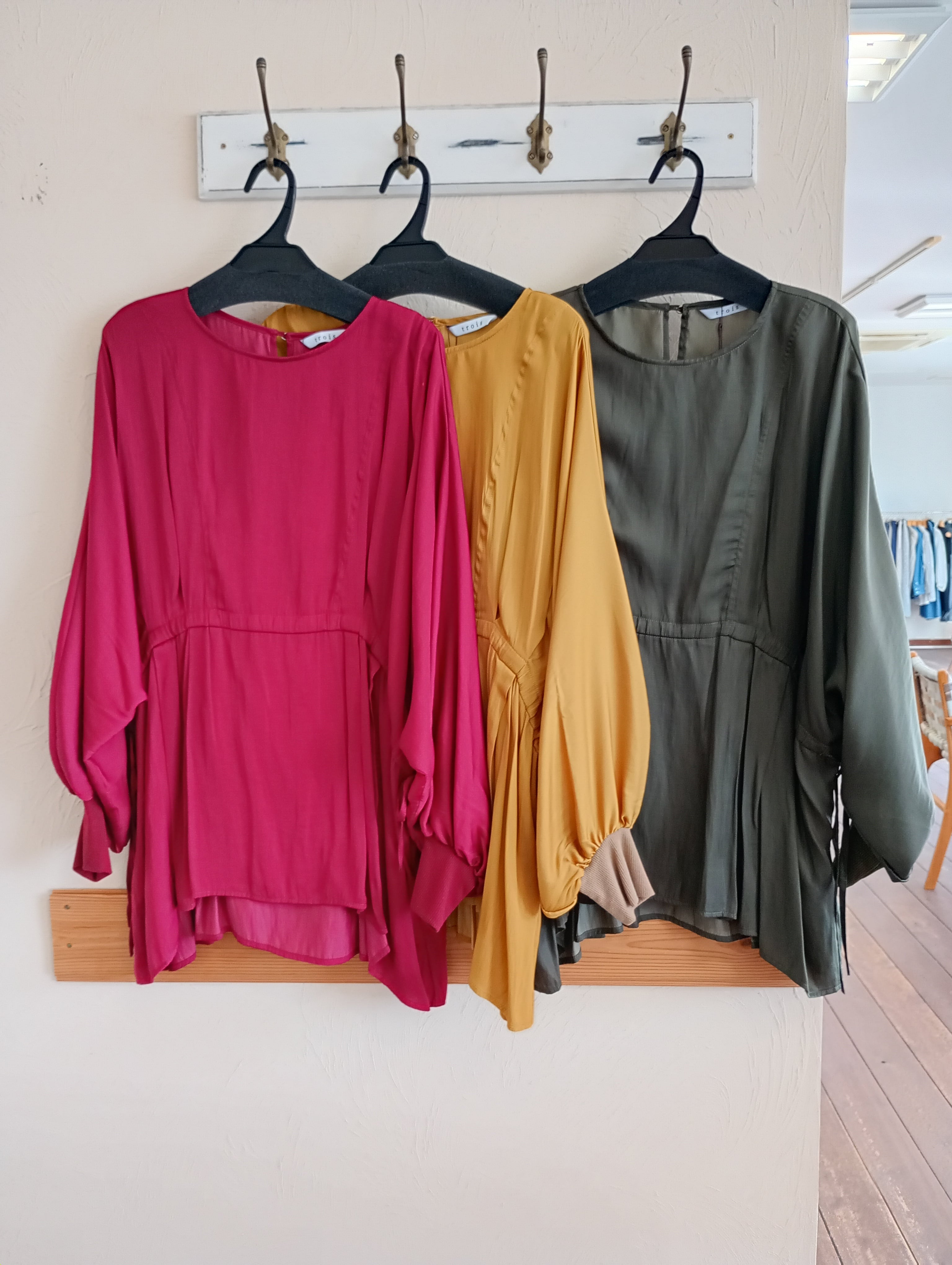 割繊デシンウエストタックギャザーブラウス trois