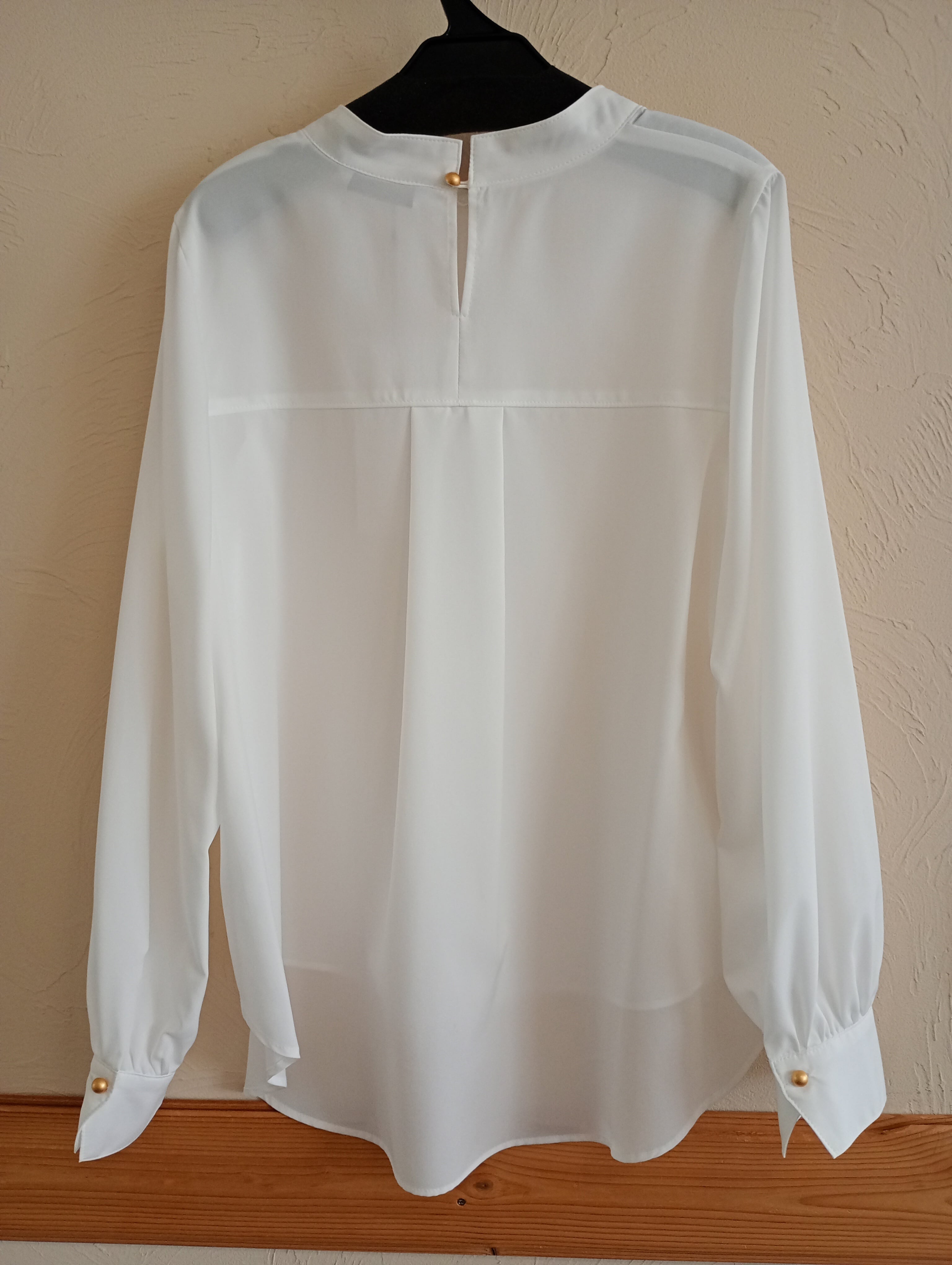エアリークロスフロントギャザーブラウス ホワイト trois