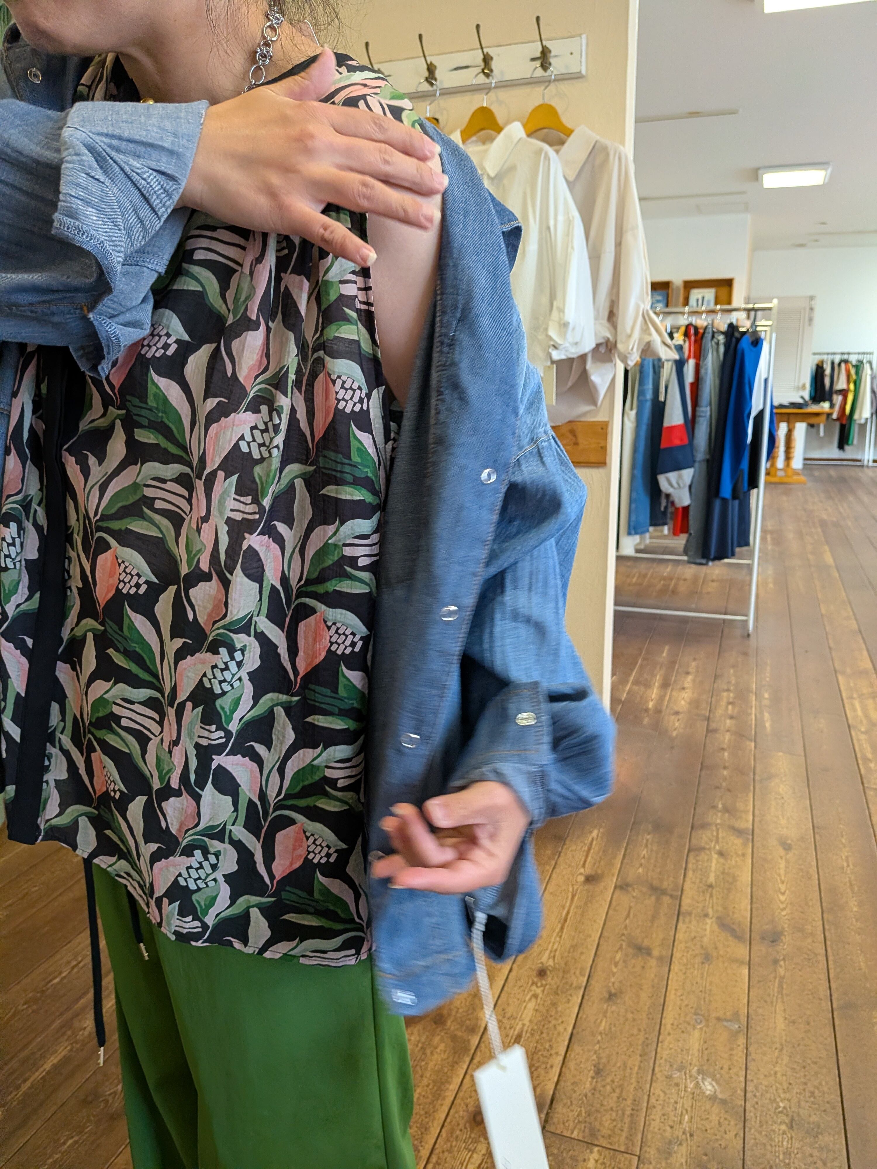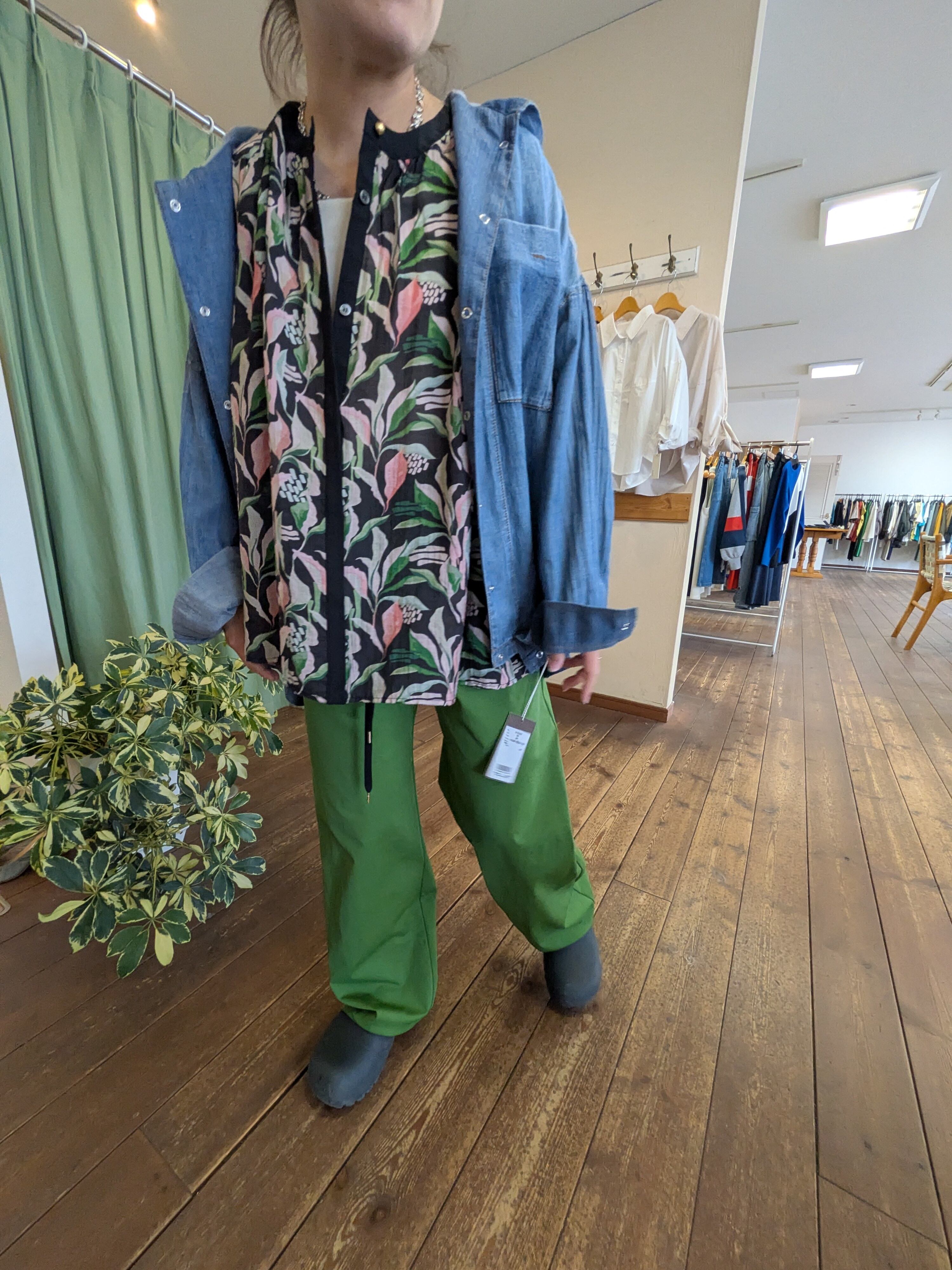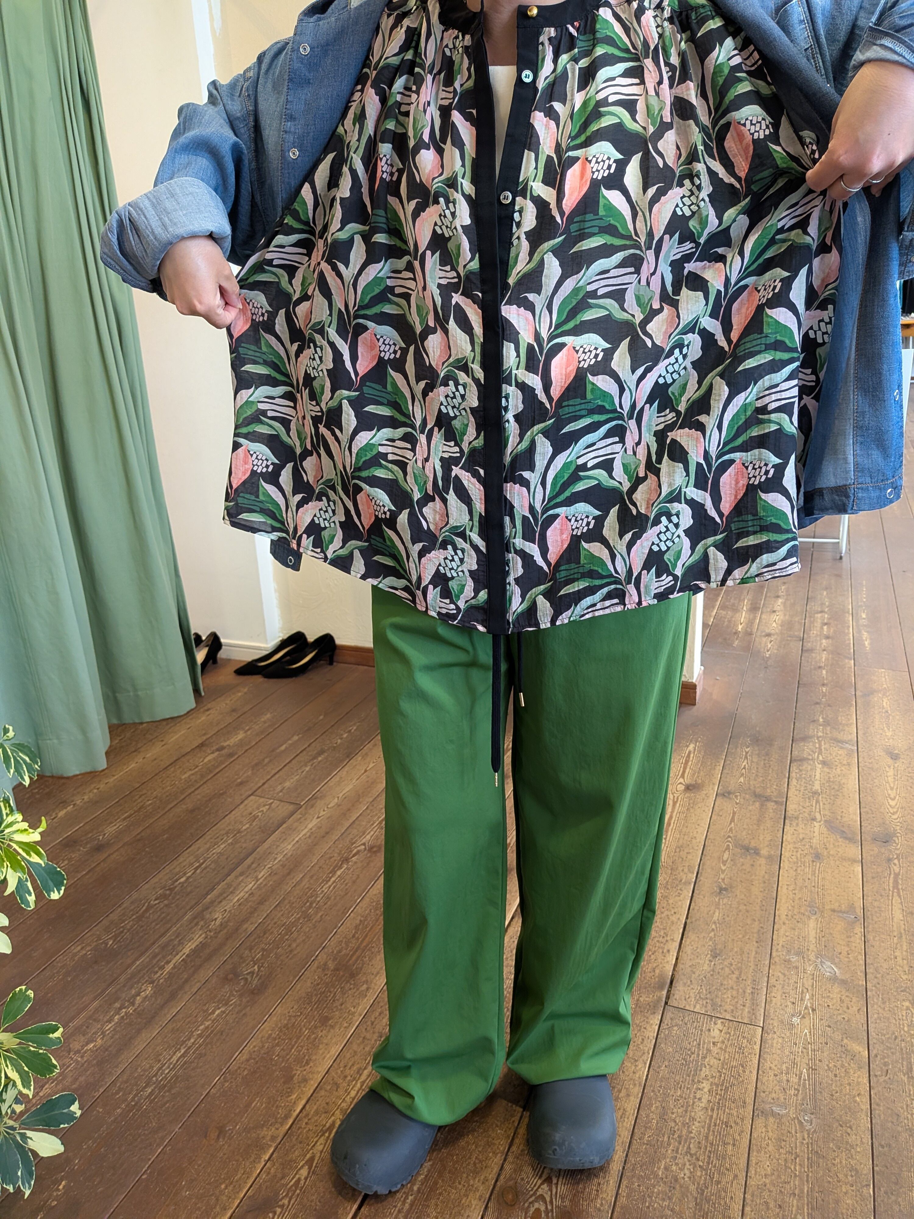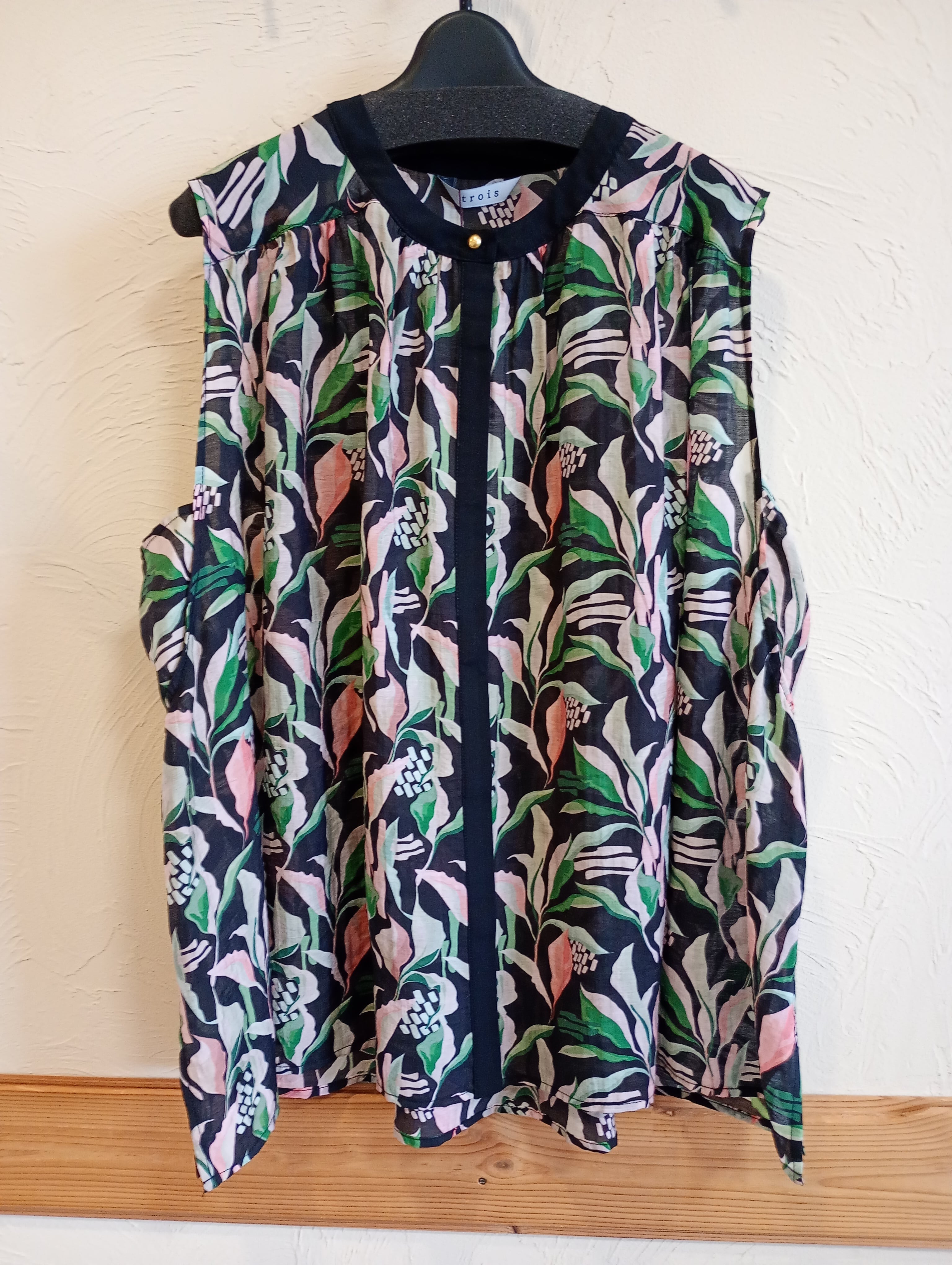 フラワープリントギャザーブラウス ブラック trois