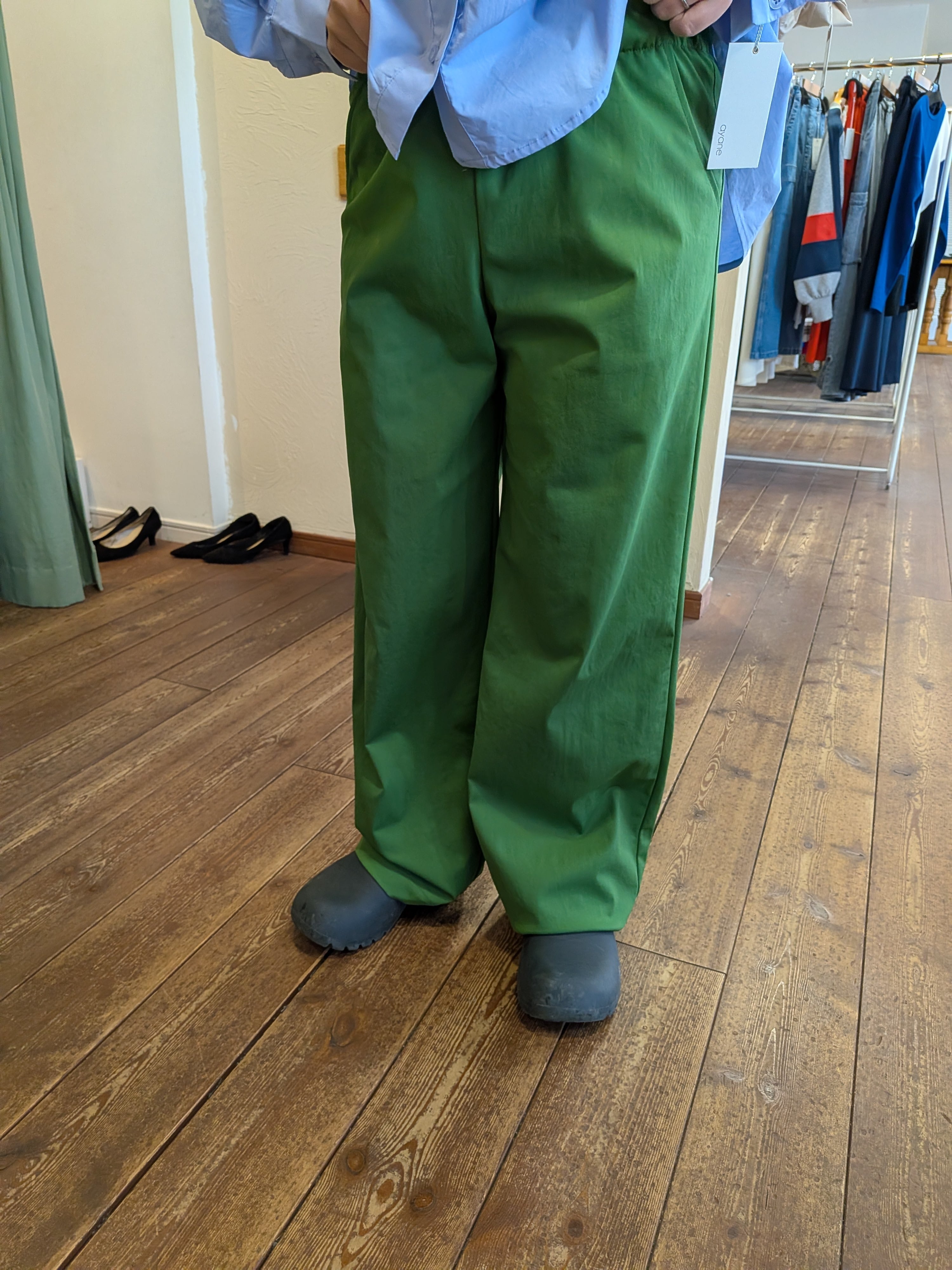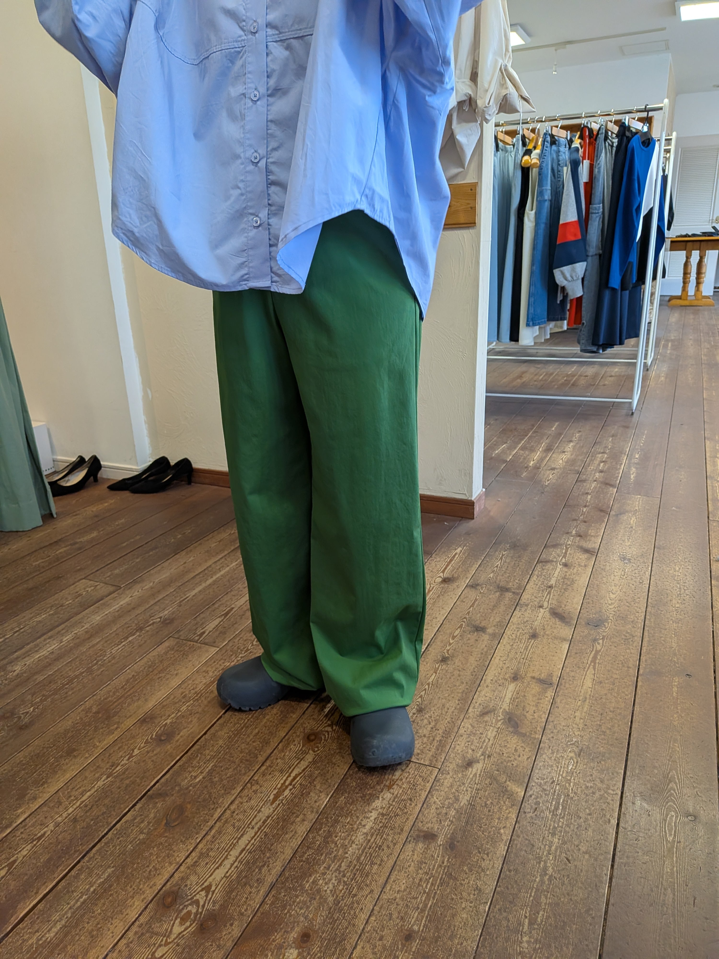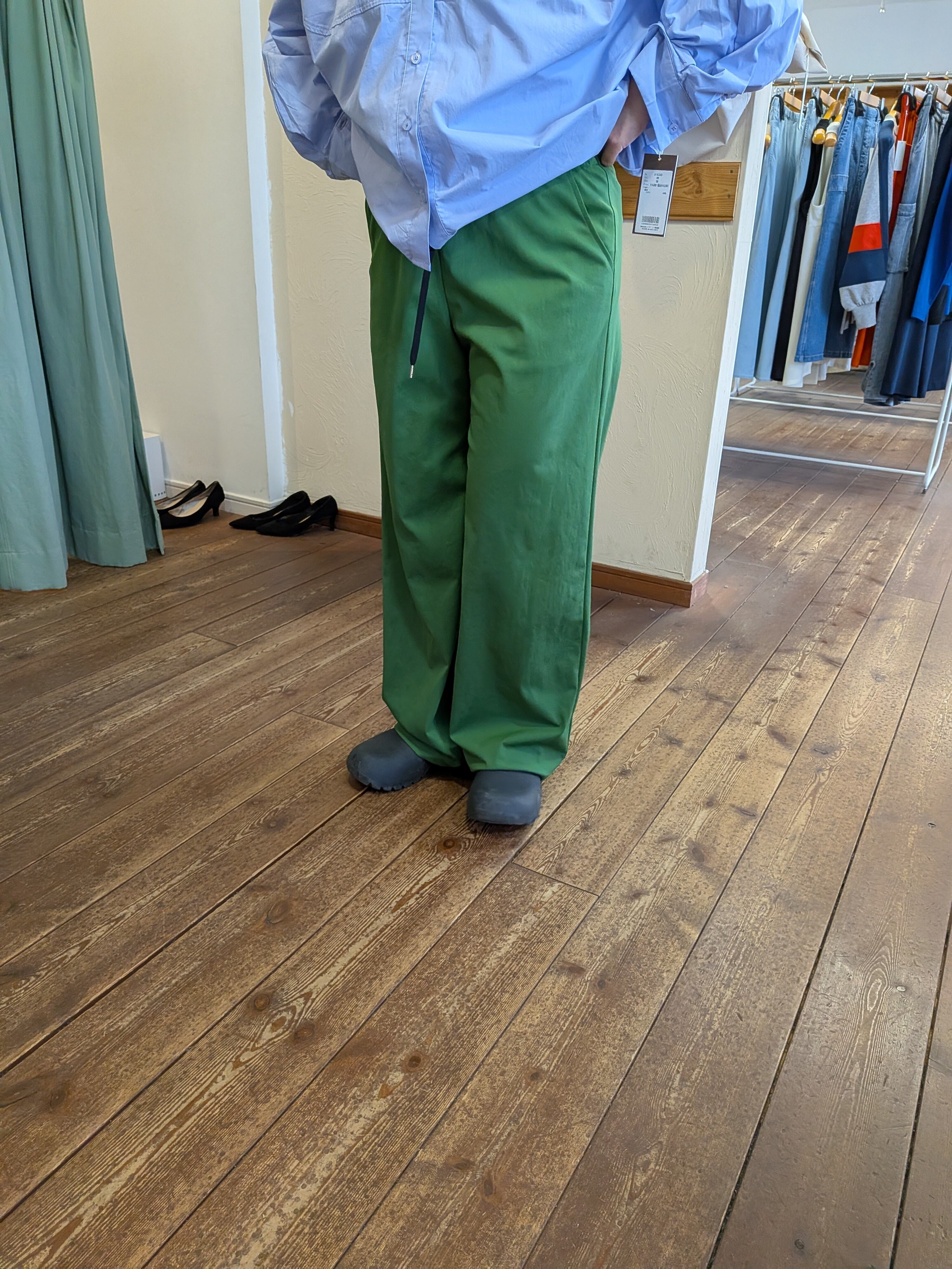 ハイテンションストレッチワイドパンツ グリーン trois