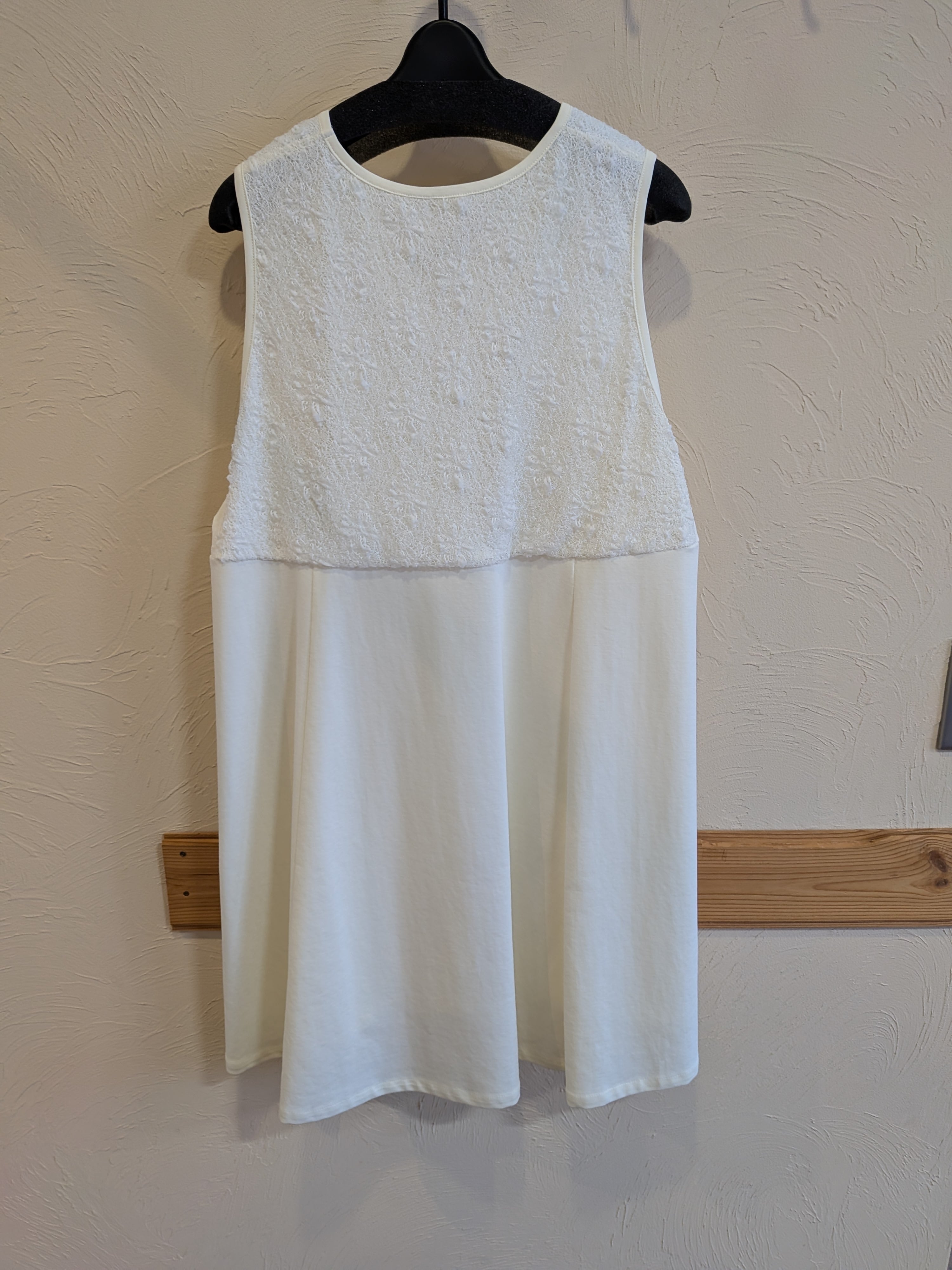 ポンチ素材チュニック丈フレアベスト オフ白 ayane
