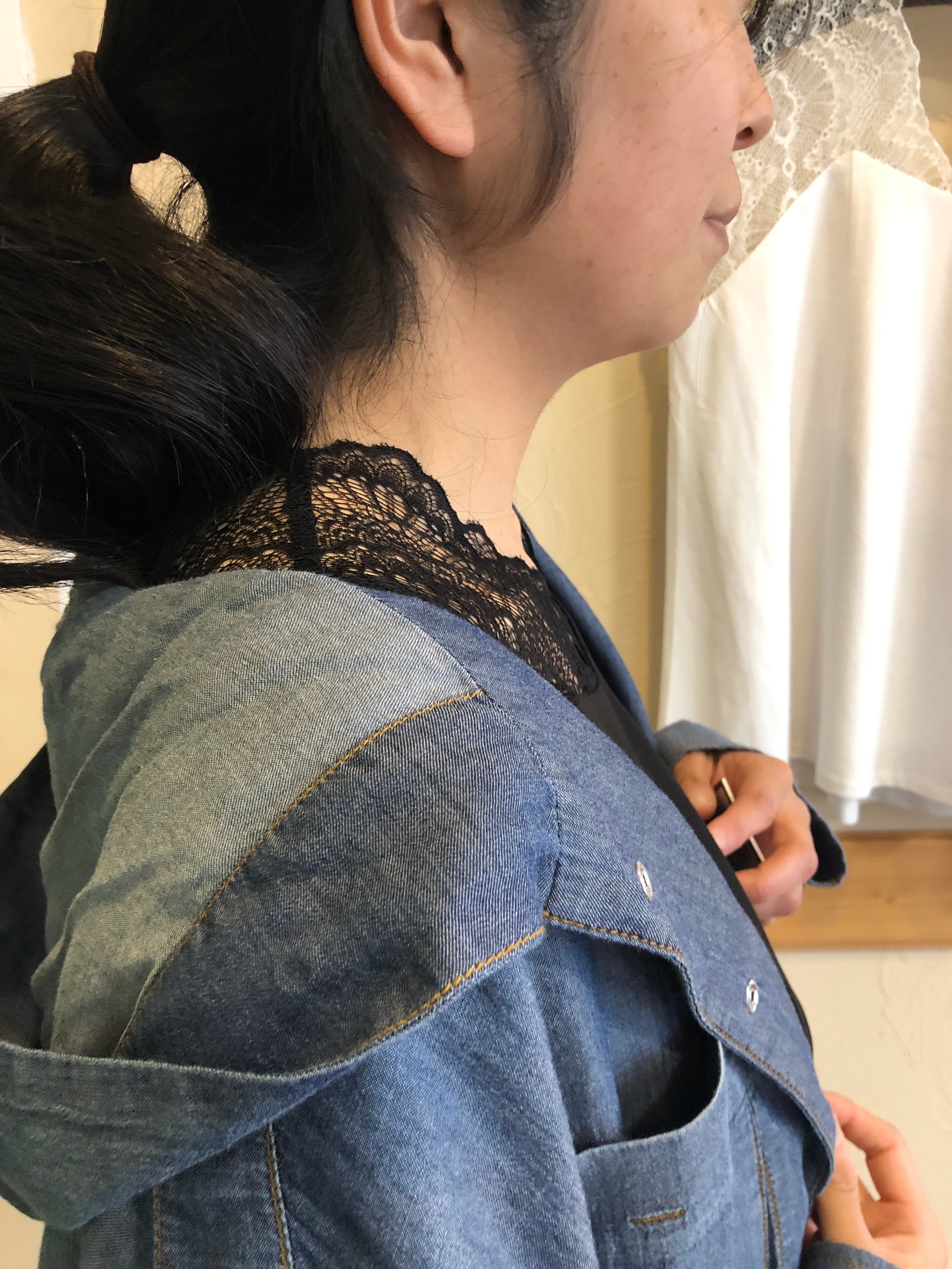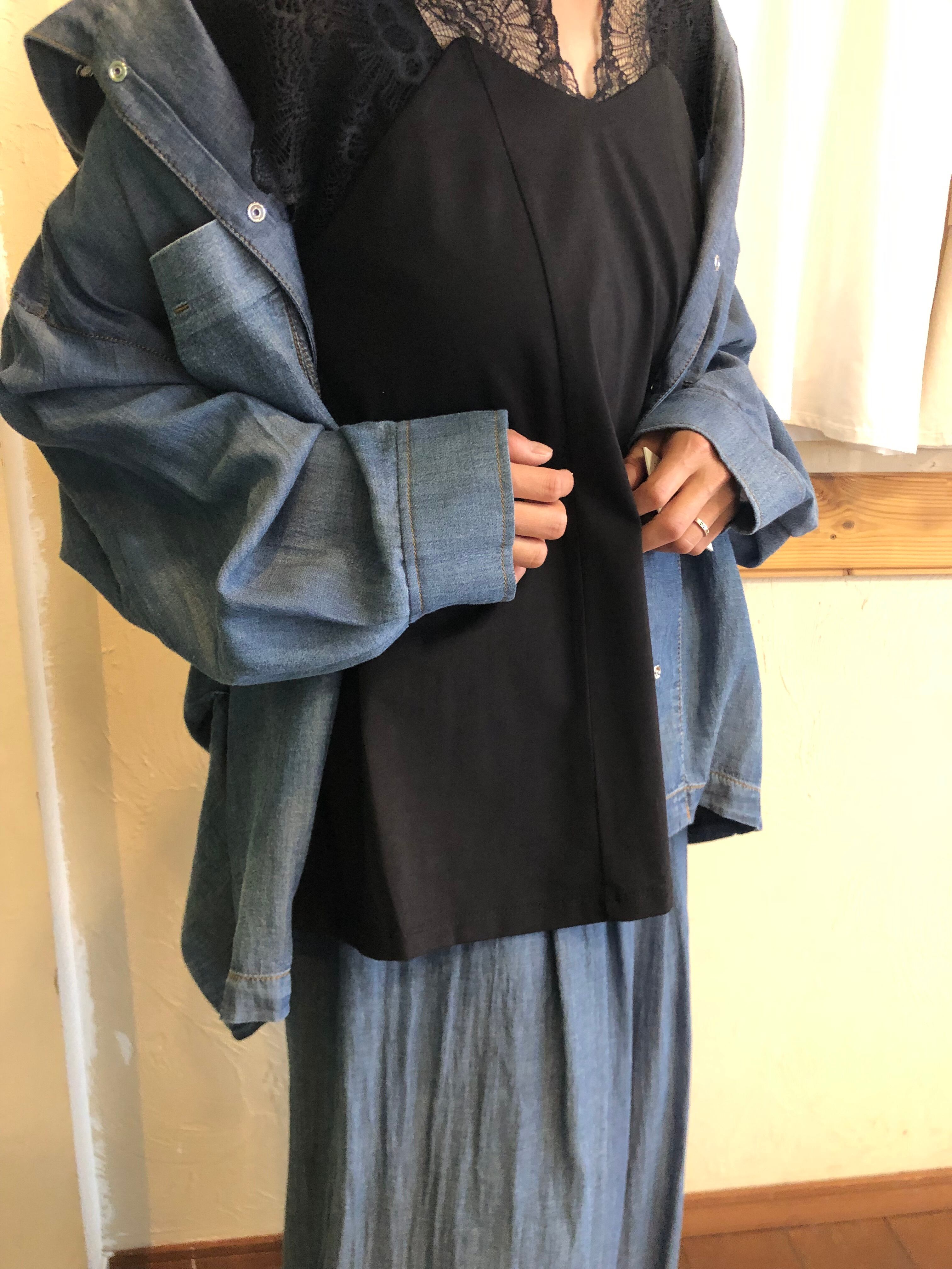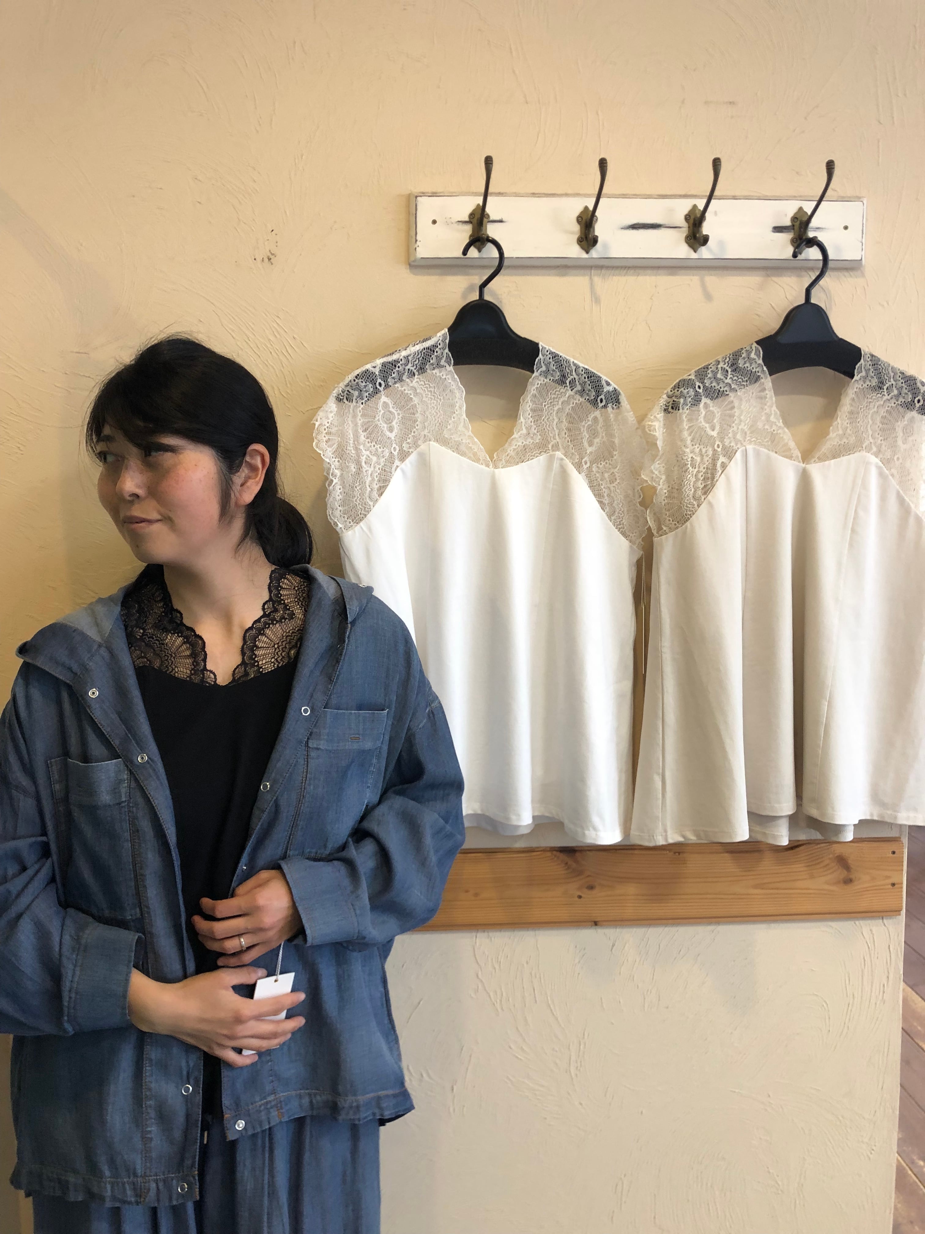 ayane定番のレースタンクのフレアバージョンです。フラシの2枚仕立て設計で内側の部分はボトムにインしていただけます。なので透け感の心配もありませんし、肌寒い日も内側をインして頂ければ暖かく過ごしていただけますね。フレアタイプなのでお腹周りも安心です。